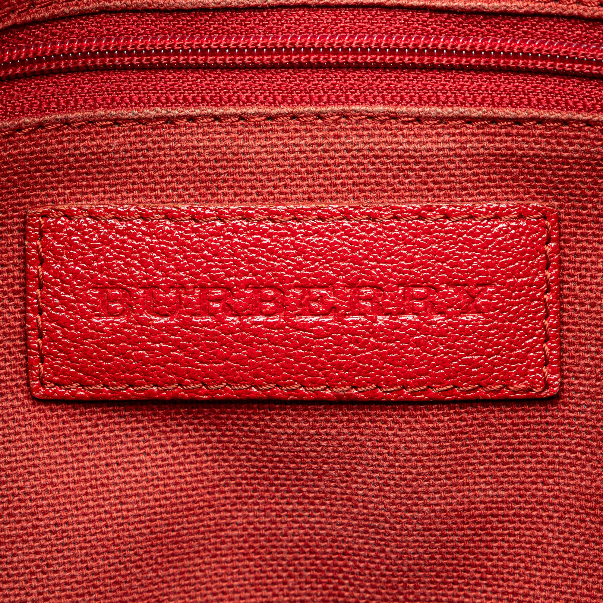 This satchel features a haymarket check coated canvas body with leather trim, rolled leather handles, a detachable flat leather strap, a top zip closure, and interior zip and slip pockets. Retail Price: 1350.00