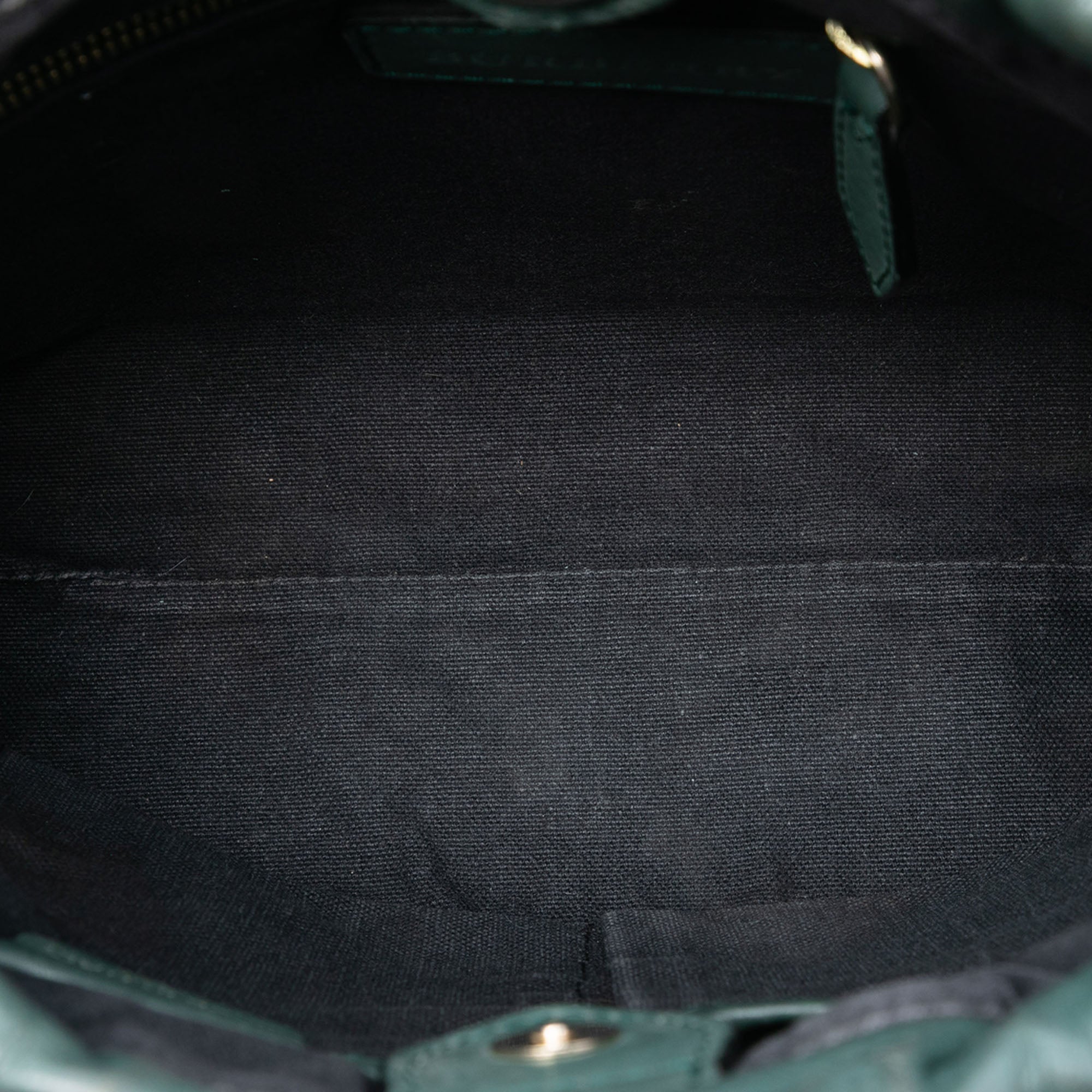 This crossbody bag features a leather and canvas body, a flat leather shoulder strap, a top drawstring and snap button closure, and interior zip and slip pockets. Retail Price: 895.00