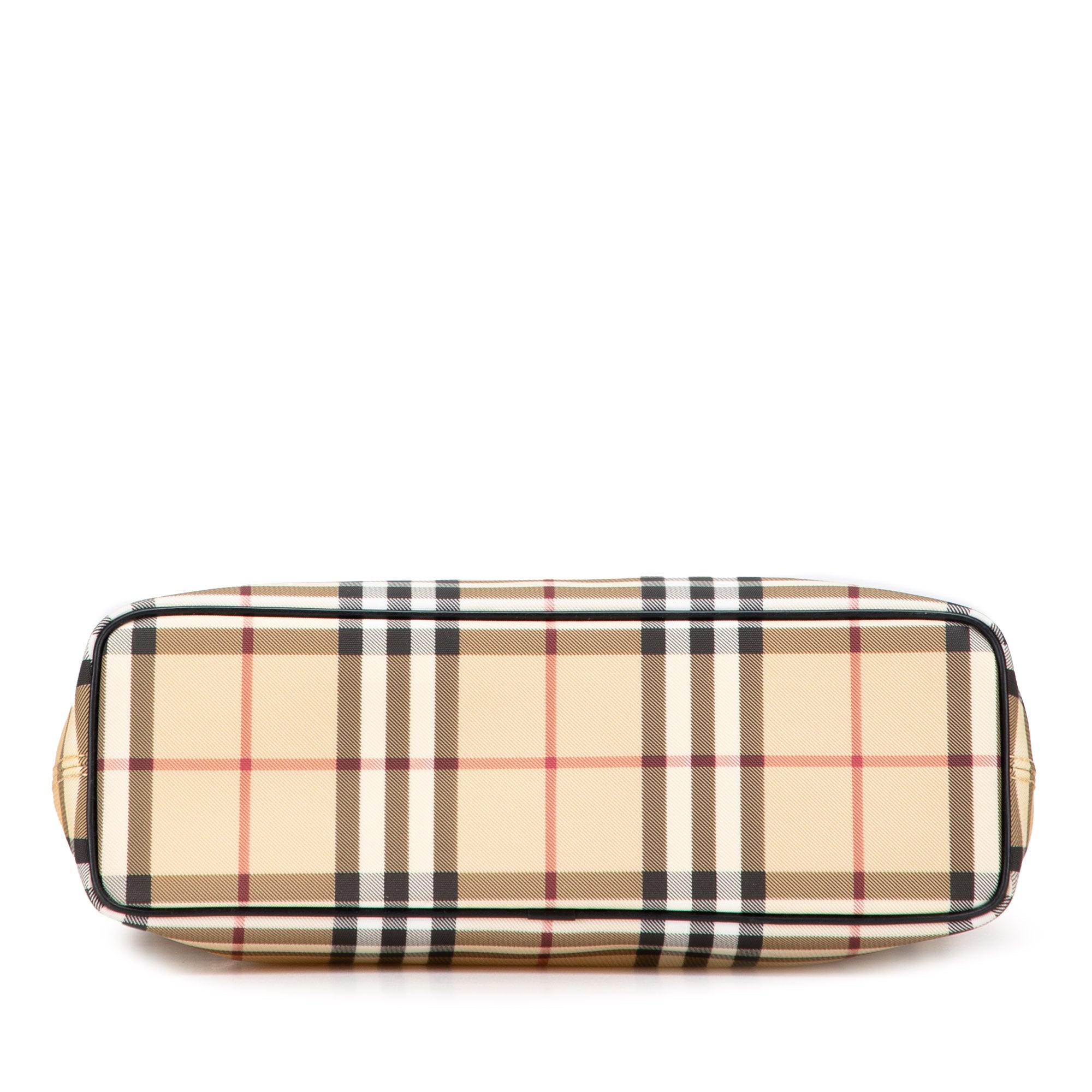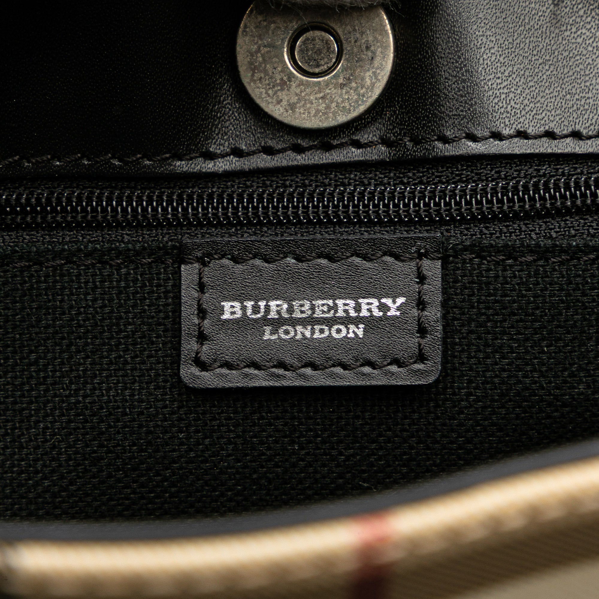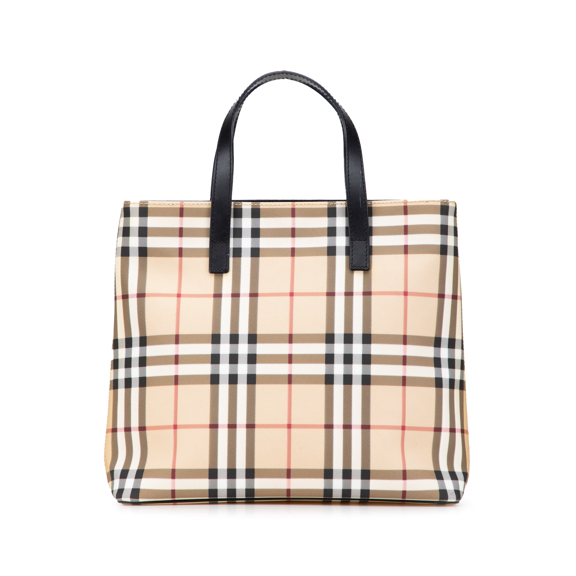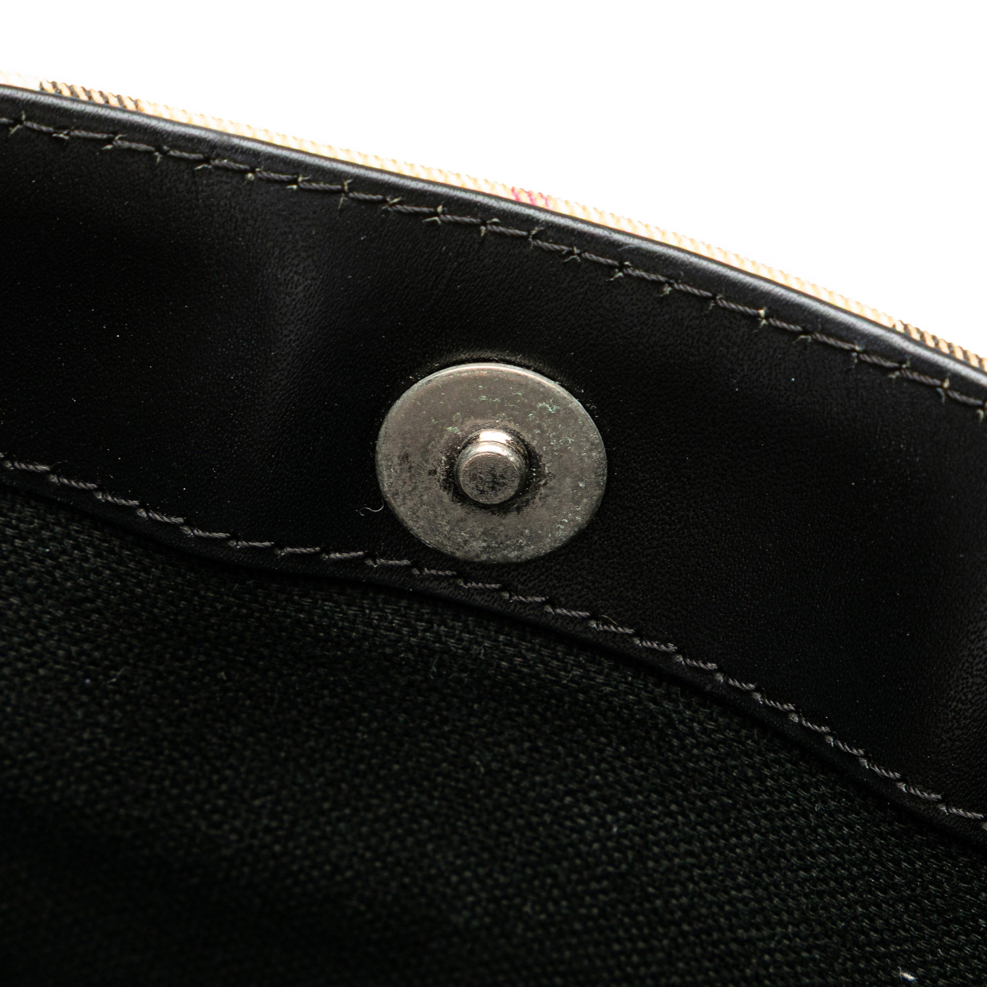 This tote bag features a canvas body, flat leather top handles, an open top with magnetic closure. and an interior zip pocket. Retail Price: 650.00