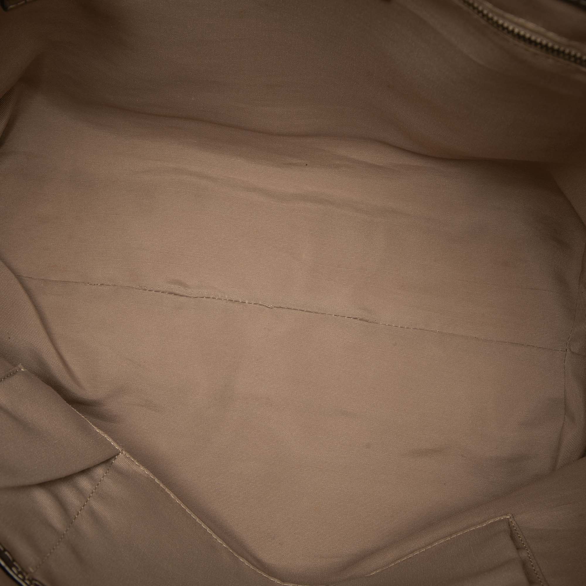 This tote features a printed supernova check coated canvas body with leather trim, rolled leather handles, an open top, and interior zip and slip pockets. Retail Price: 595.00