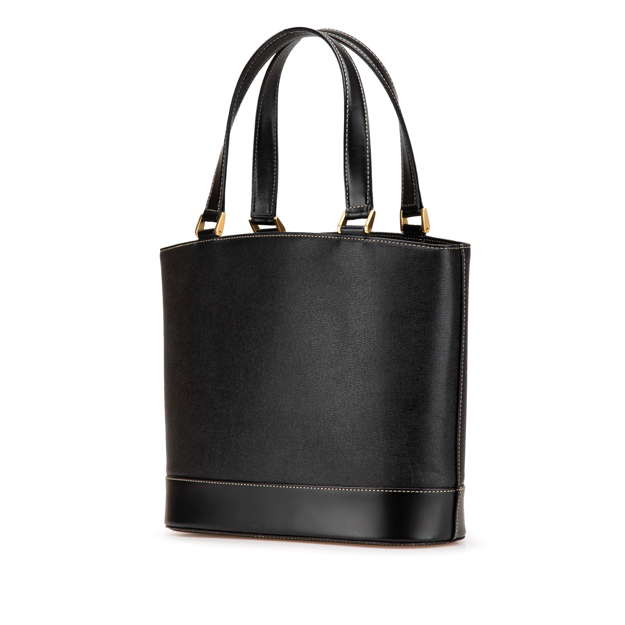 This tote bag features a leather body, flat leather handles, an open top zip, and interior zip and slip pockets. Retail Price: 700.00