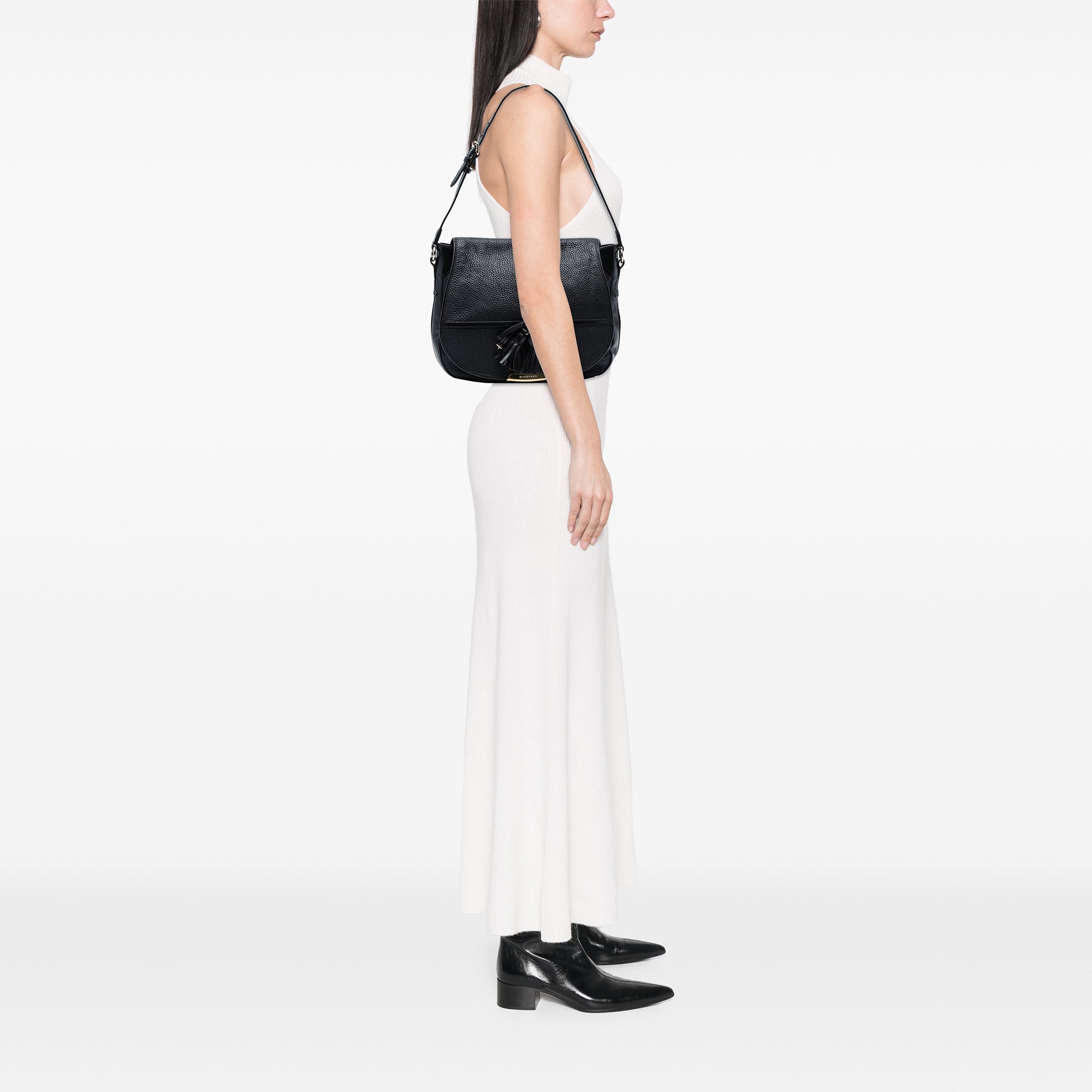The Maydown features a leather body, an adjustable flat leather strap, a front flap with magnetic snap closure, an exterior back slip pocket, and interior zip and slip pockets. Retail Price: 880.00