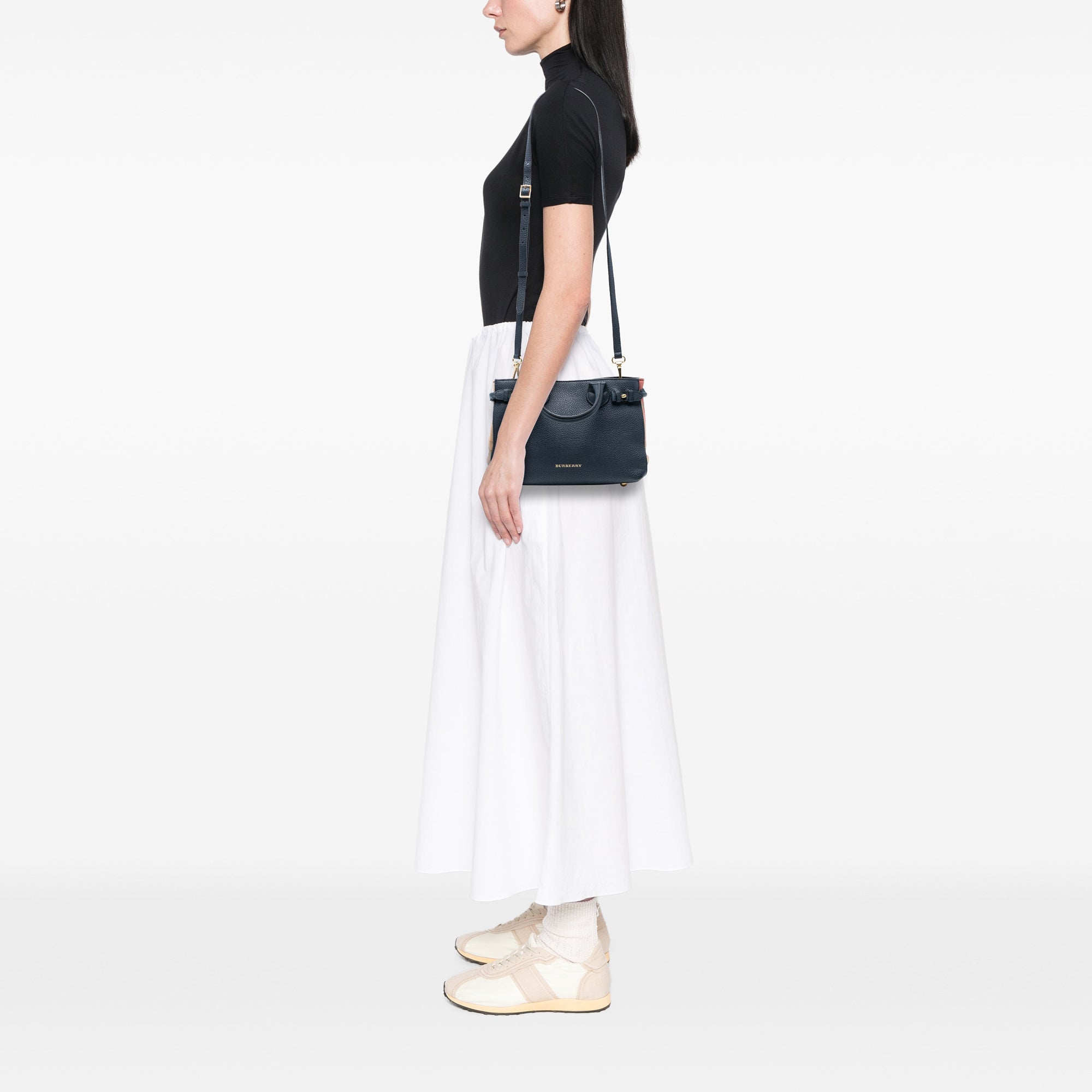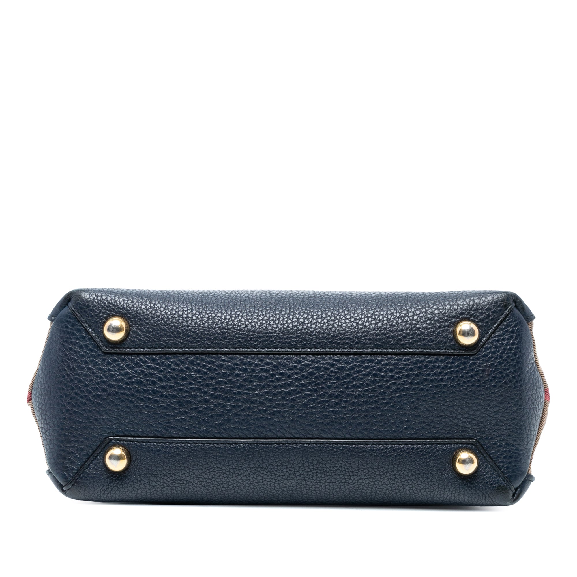 The Banner features a leather body, rolled leather top handles, a detachable flat leather shoulder strap, an open top with a magnetic snap button closure, and interior zip and slip pockets. Retail Price: 1295.00