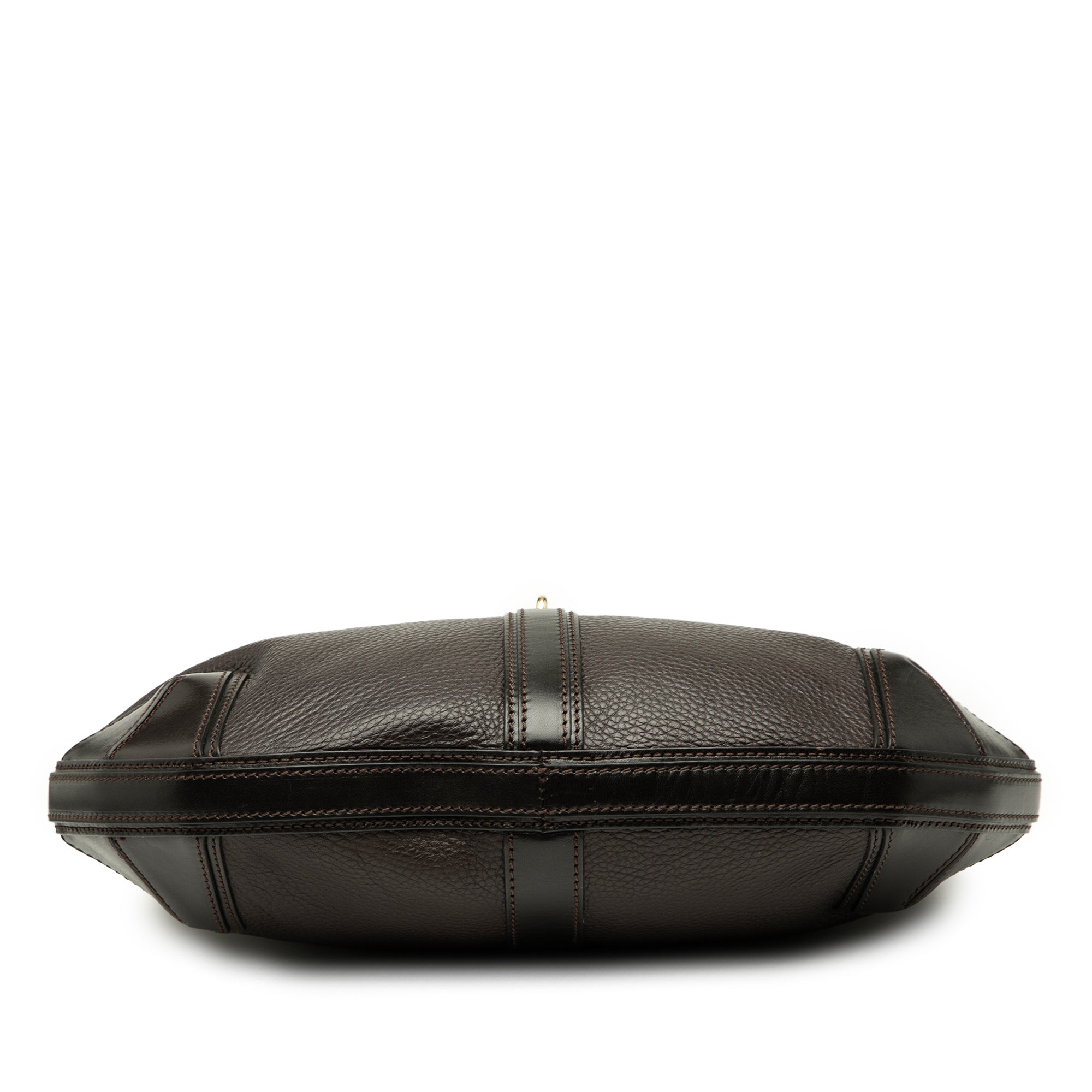 This hobo bag features a leather body, a flat leather strap, a top zip closure, and interior zip and slip pockets. Retail Price: 1195.00