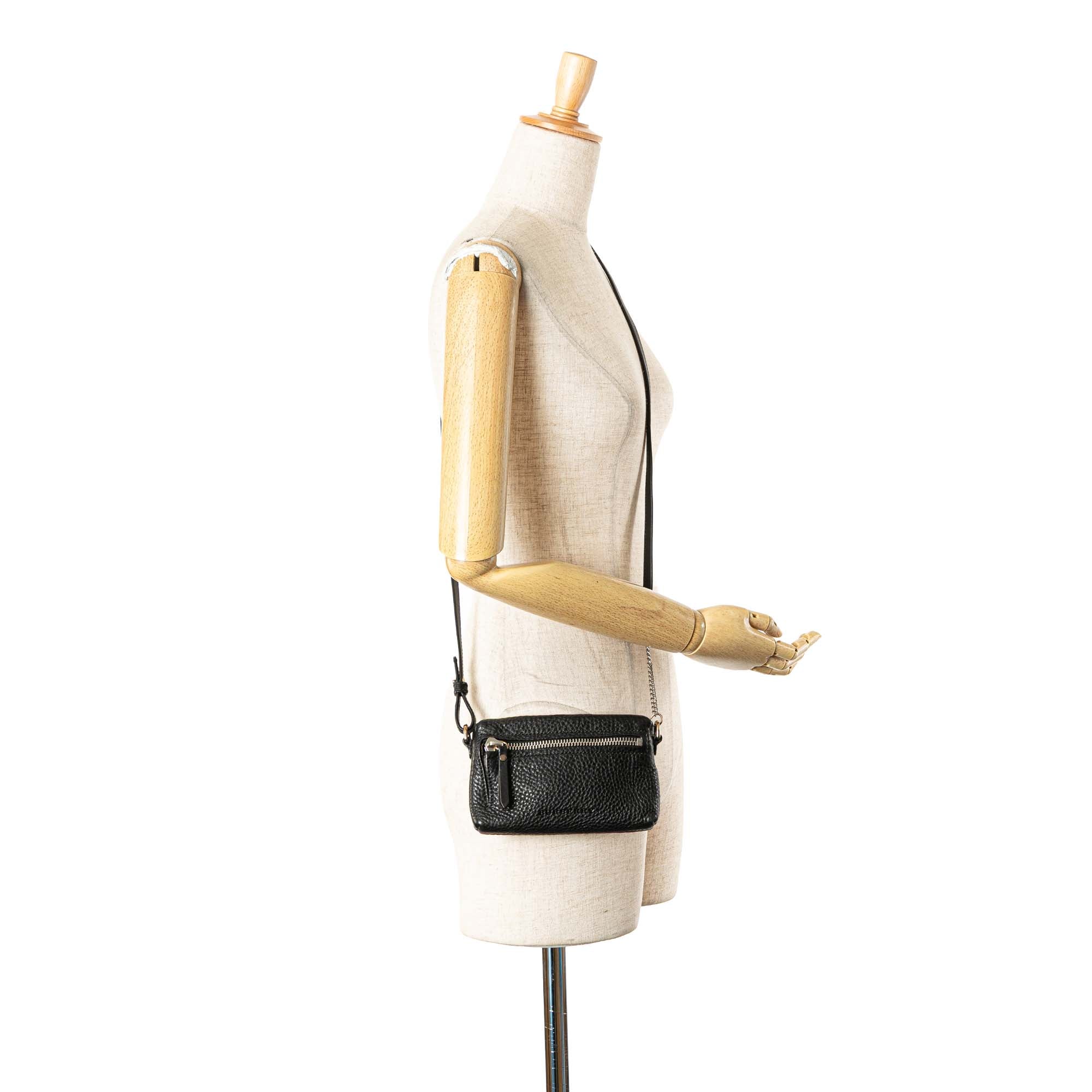 This crossbody bag features a leather body, a flat leather shoulder strap, and a top zip closure. Inclusion: Dust bag. Retail Price: 420.00