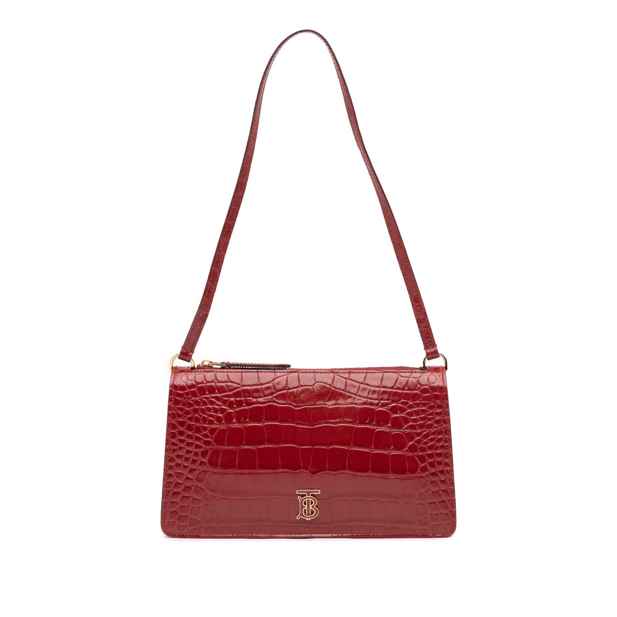 Burberry Small Crocodile Embossed Leather TB Shoulder Bag