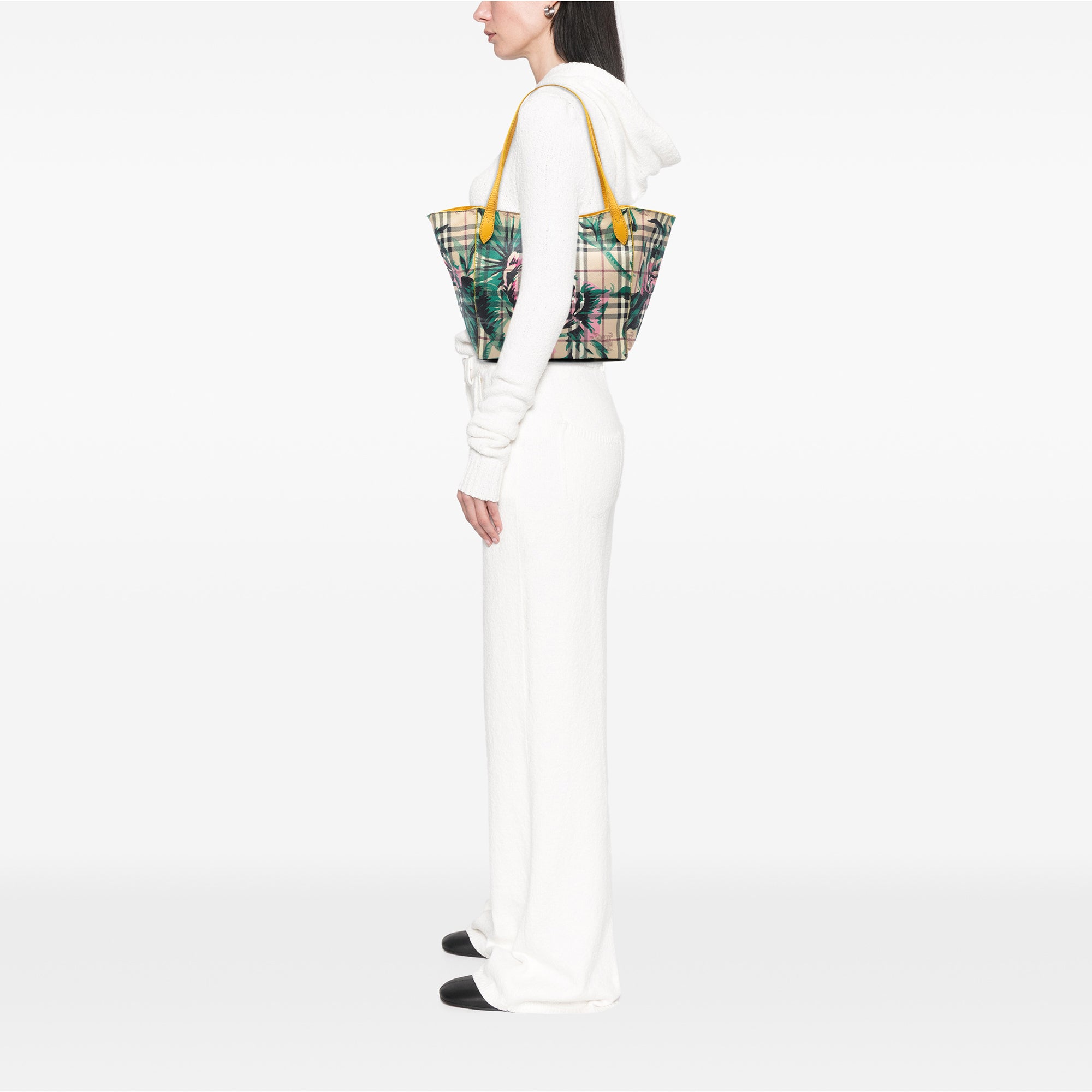 Burberry Small Haymarket Check Floral Print Coated Canvas Canterbury Tote