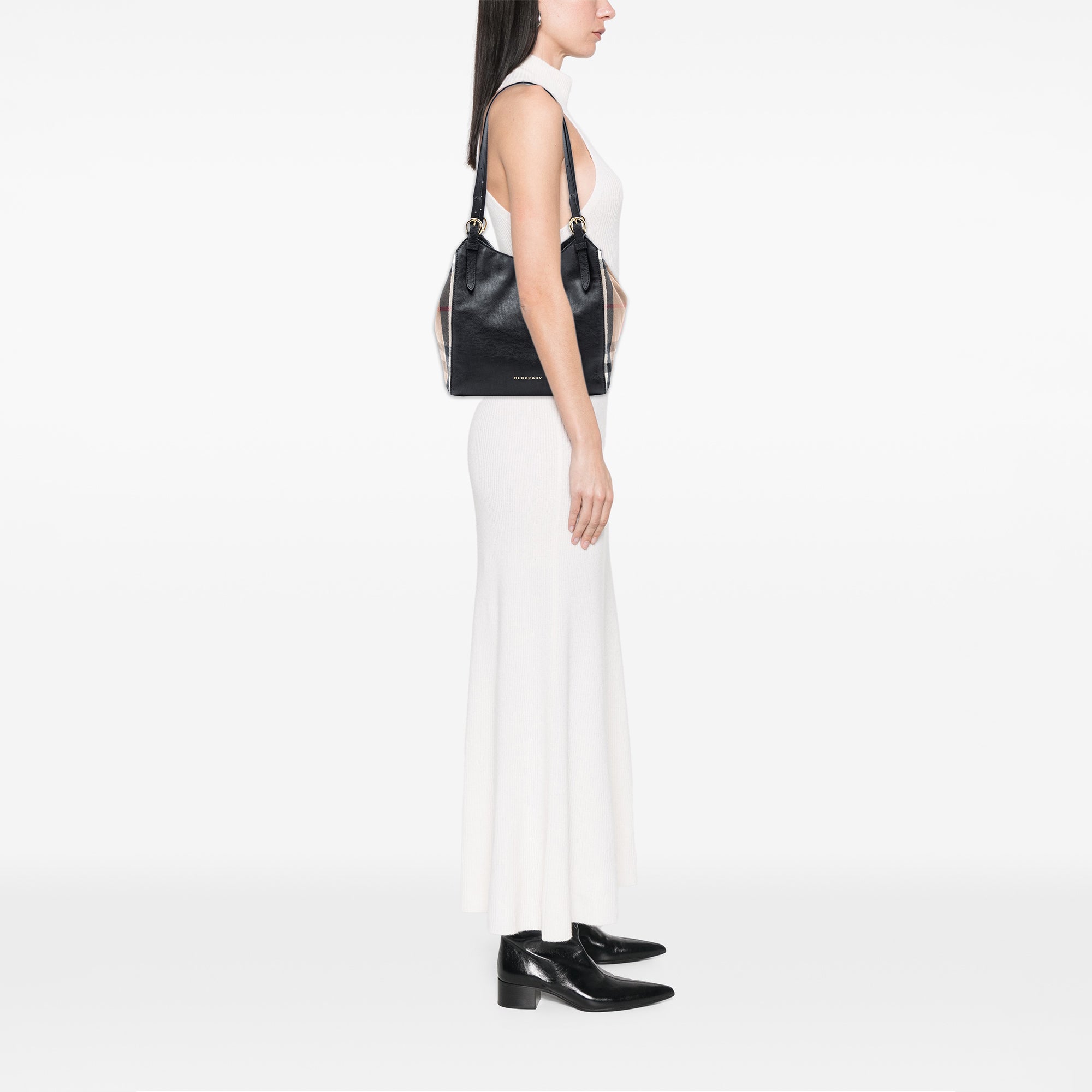 Burberry Small Leather and House Check Canvas Canterbury Tote