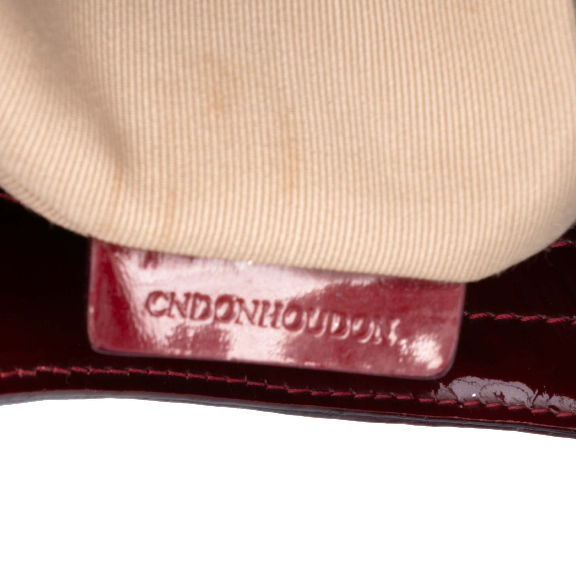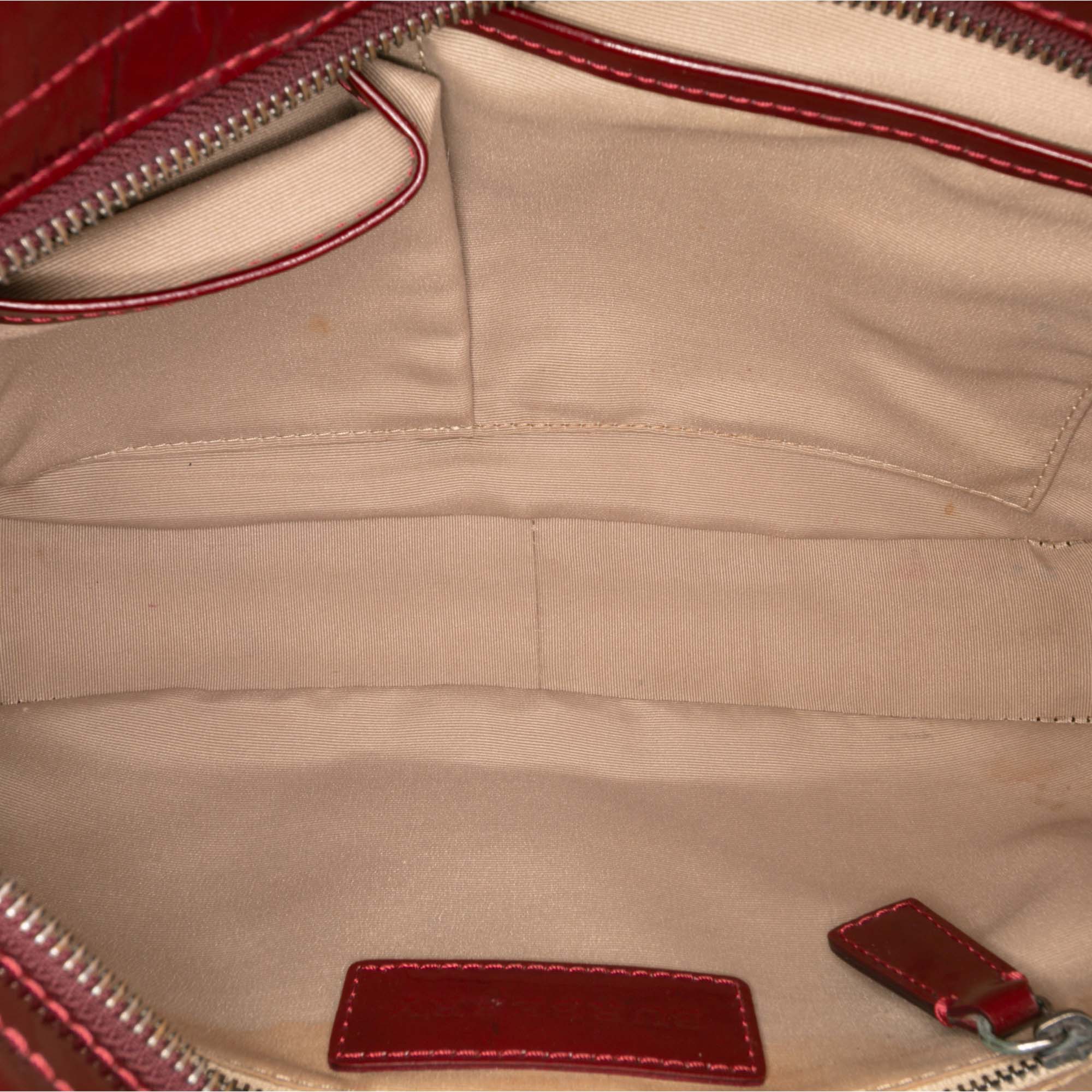 The Hernville hobo bag features a printed coated canvas body with patent leather trim, a rolled leather handle, a top zip closure, and interior zip and slip pockets. Retail Price: 695.00