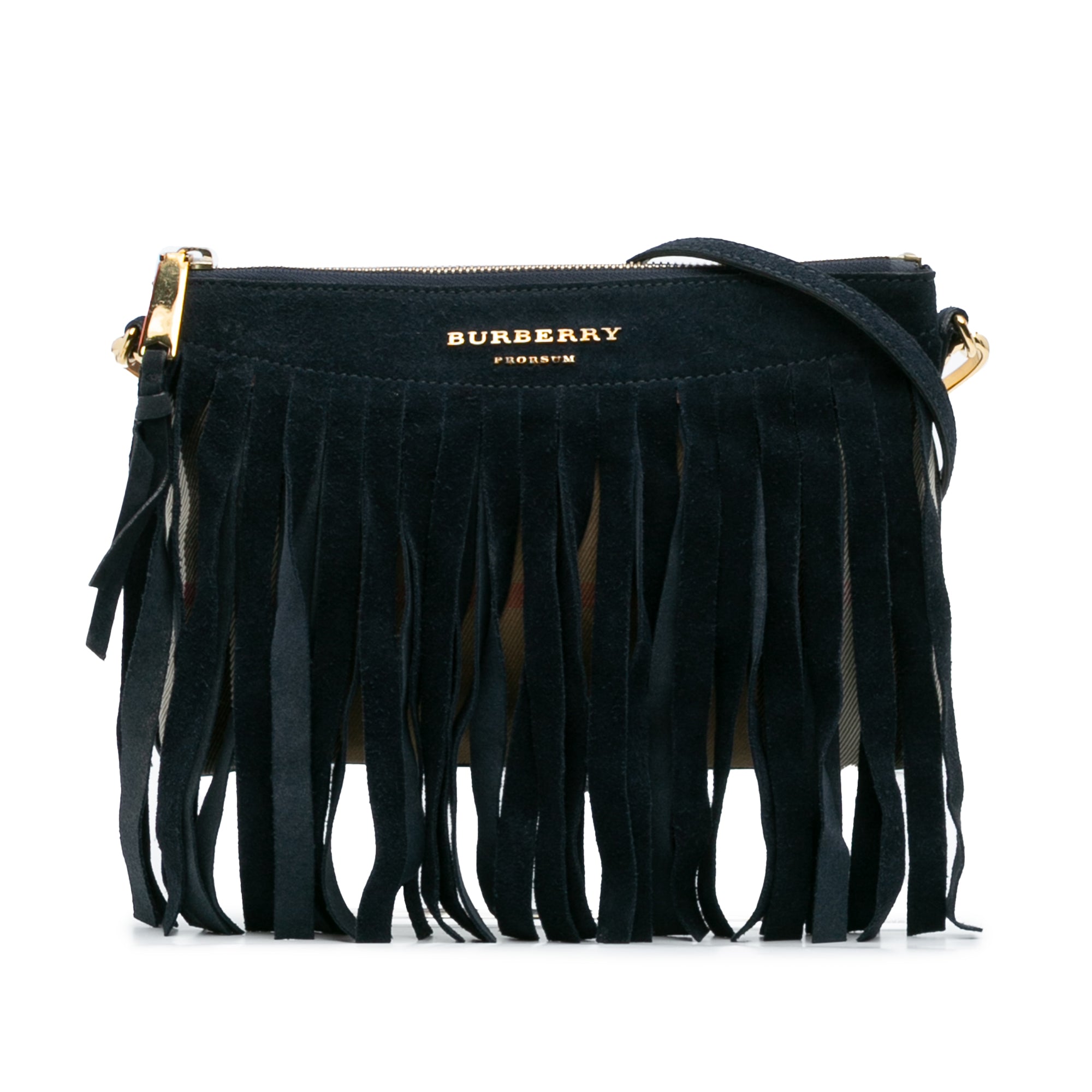 This crossbody bag features a fringed suede body, an adjustable and detachable flat shoulder strap, a top zip closure, and interior slip pockets. Retail Price: 795.00