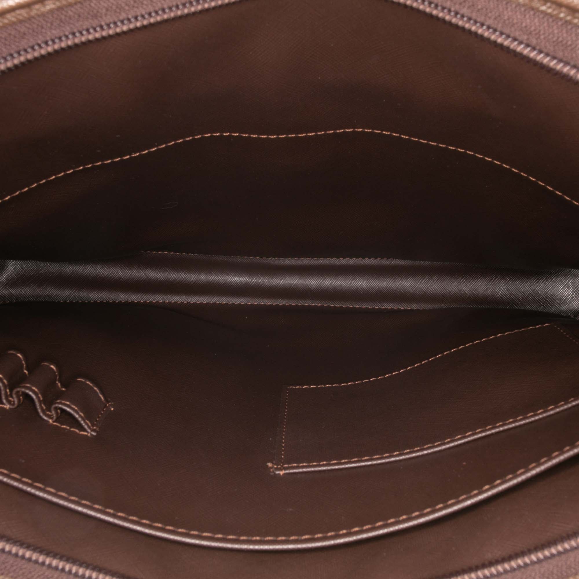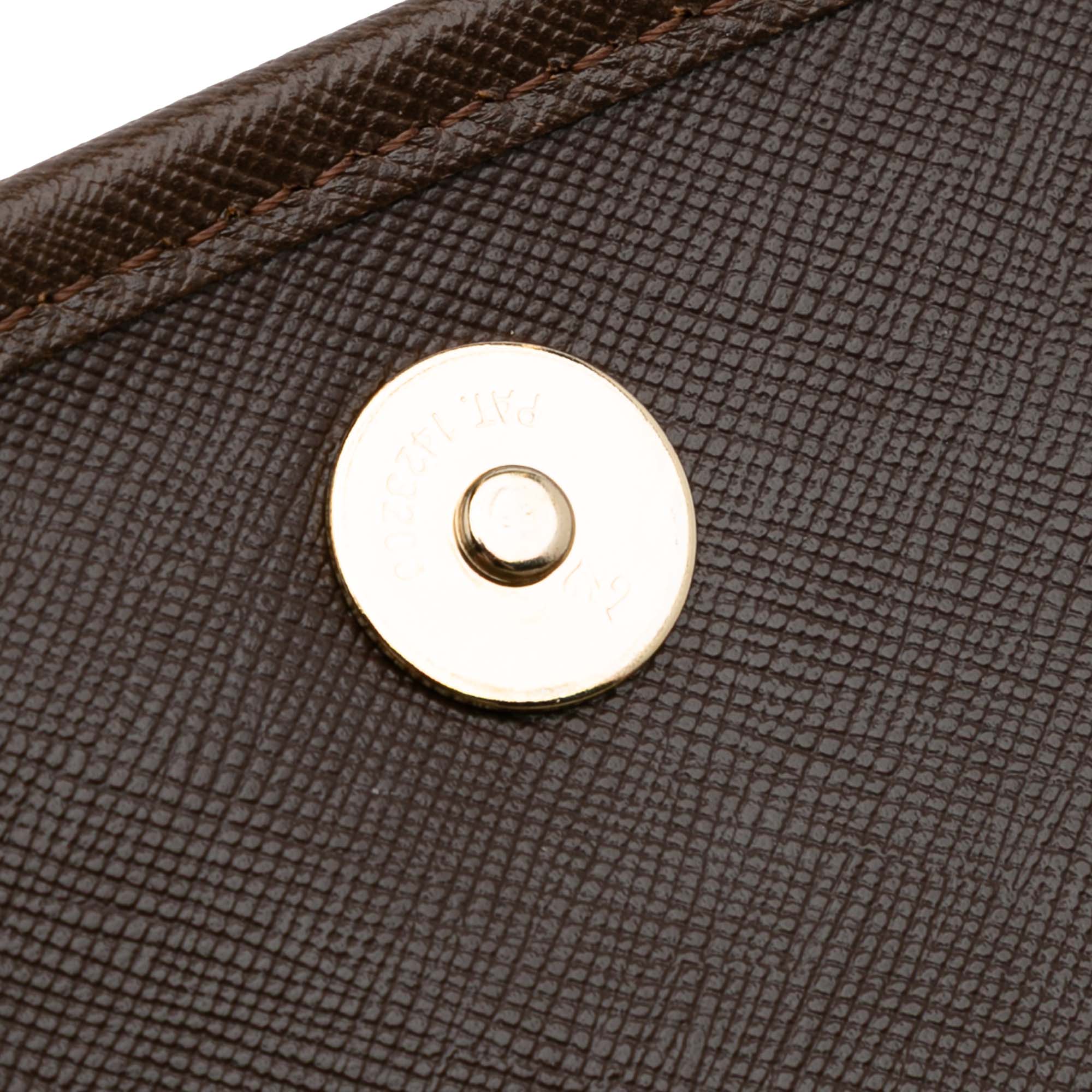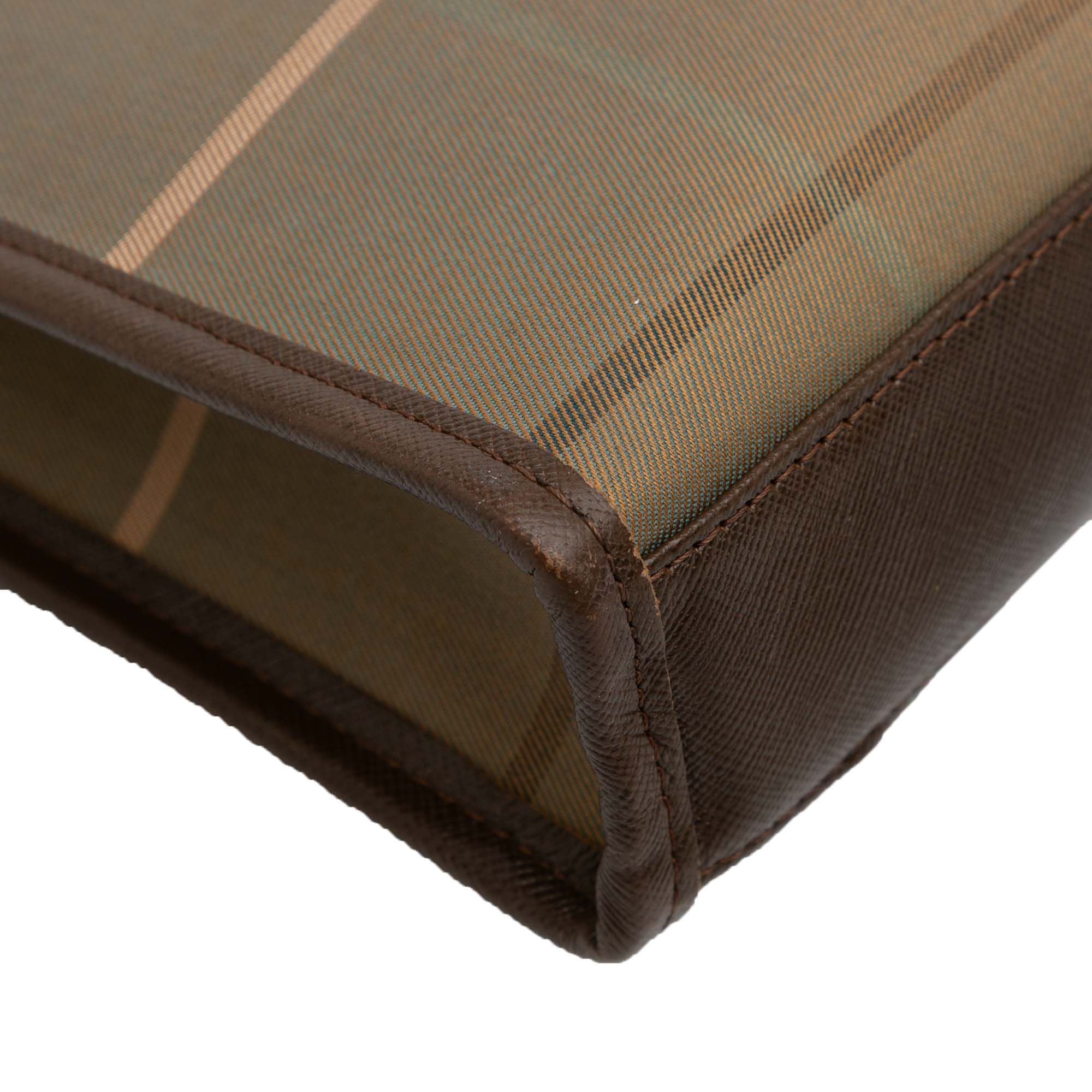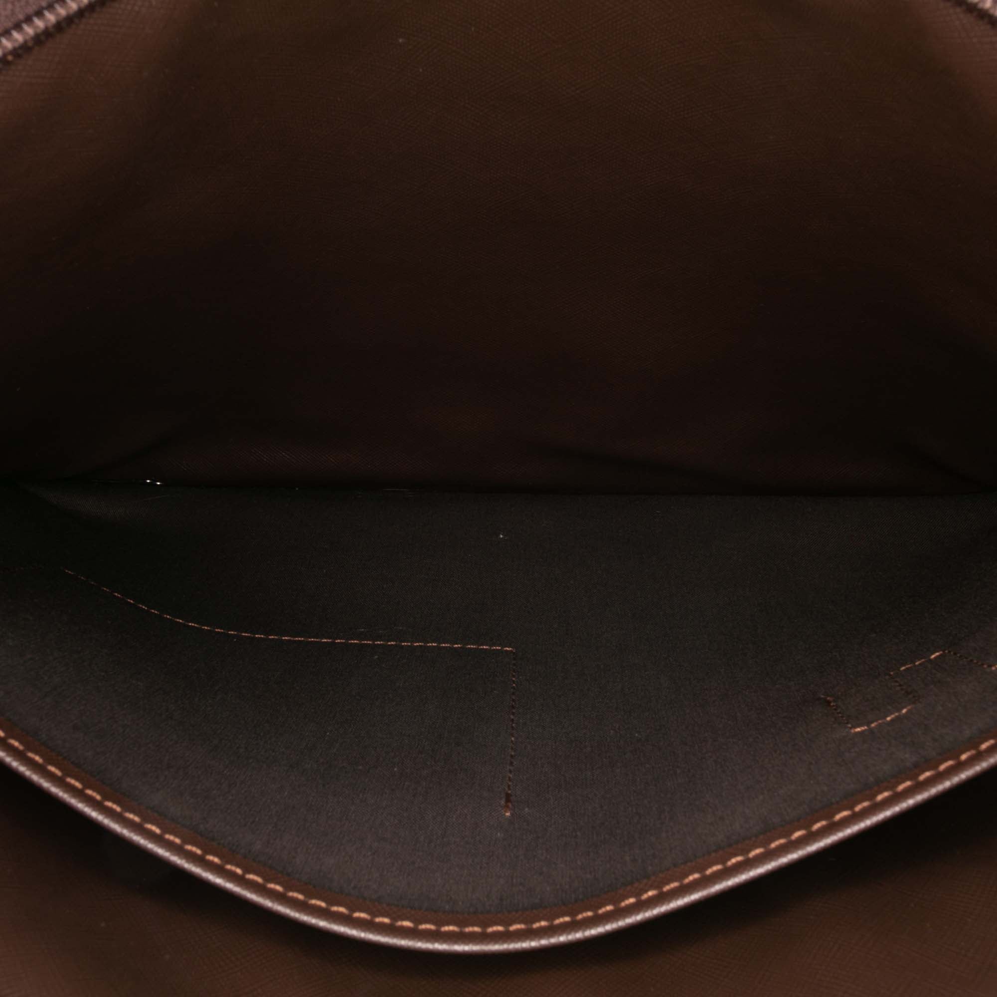 This clutch features a nylon body with leather trim, a top zip closure, an exterior flap pocket with magnetic snap button closure, and interior slip pockets. Retail Price: 500.00