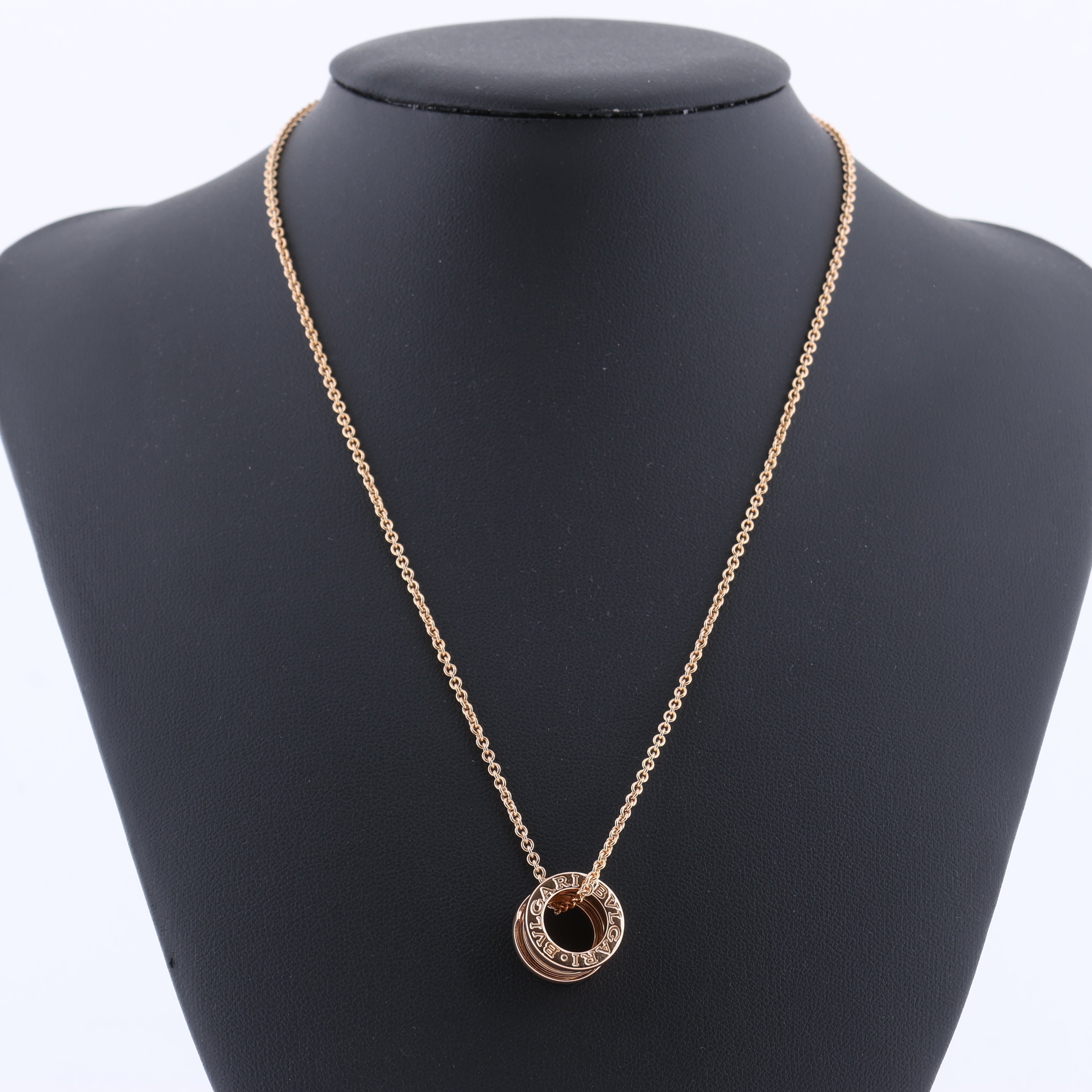 Brand: Bvlgari Model: B.Zero1Necklace length: 460 mmPendant size: 14.8 mmWeight: 13.9 gGold Type: Pink gold Condition: ExcellentCondition Details: Pre-Owned Jewelry has light usage scratches, but just been serviced and cleaned at jewelers. Before purchasing, please refer to the images for the exact condition of the item.Comes With: Box, certificate