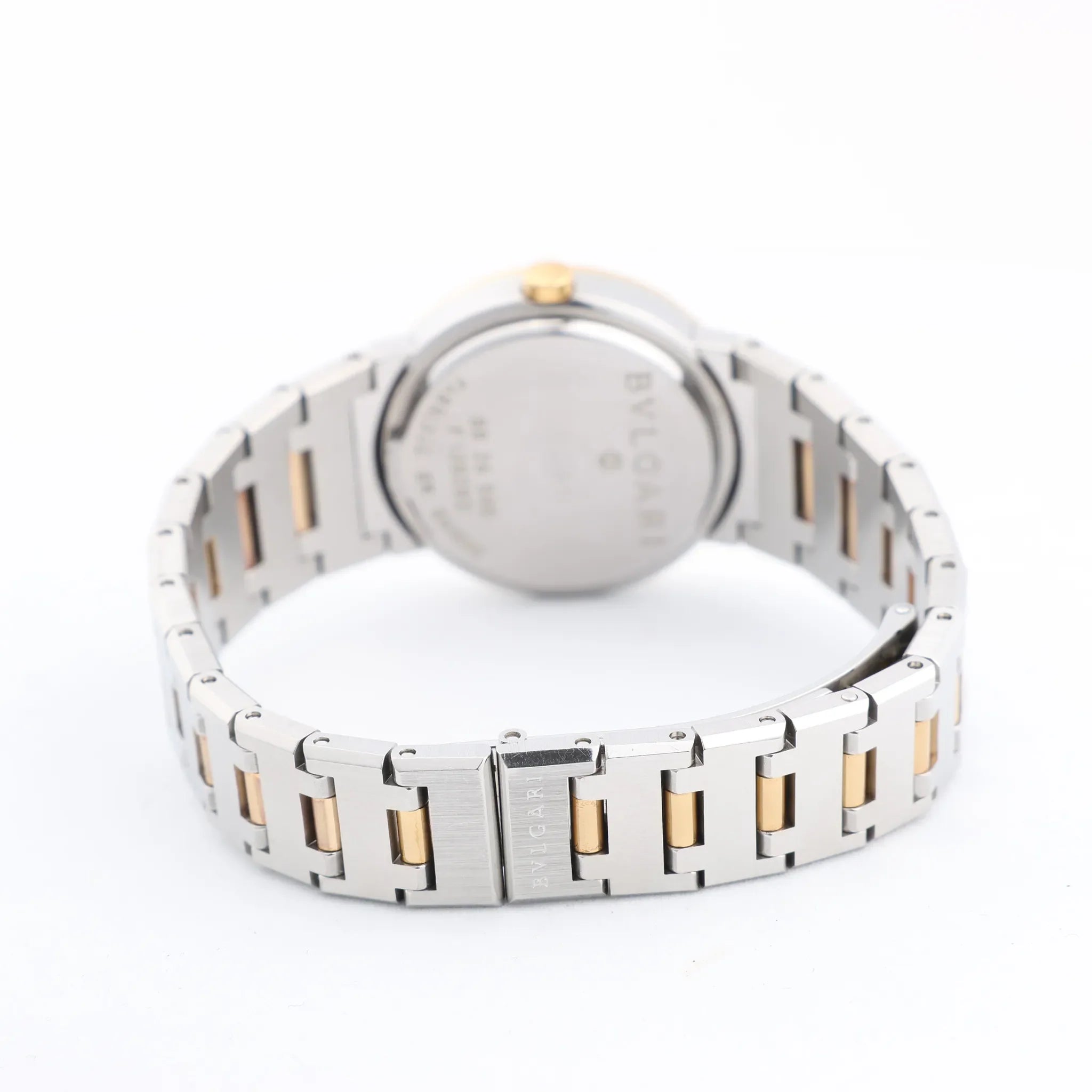 Brand: BvlgariModel: BulgariReference: BB26SGDCondition: Very goodCondition Details: Some signs of use, such as surface marks and light abrasions. Overall in good condition - see photos for exact appearance.Dial Colour: BlackDial Material: Stainless steel Starp Colour: SilverStrap material: Stainless steel, Yellow GoldMovement: QuartzFace Diameter: 26 mm Approx. circumference: 18 cm + extra linksComes With: Box, Papers, Extra links, Service Card