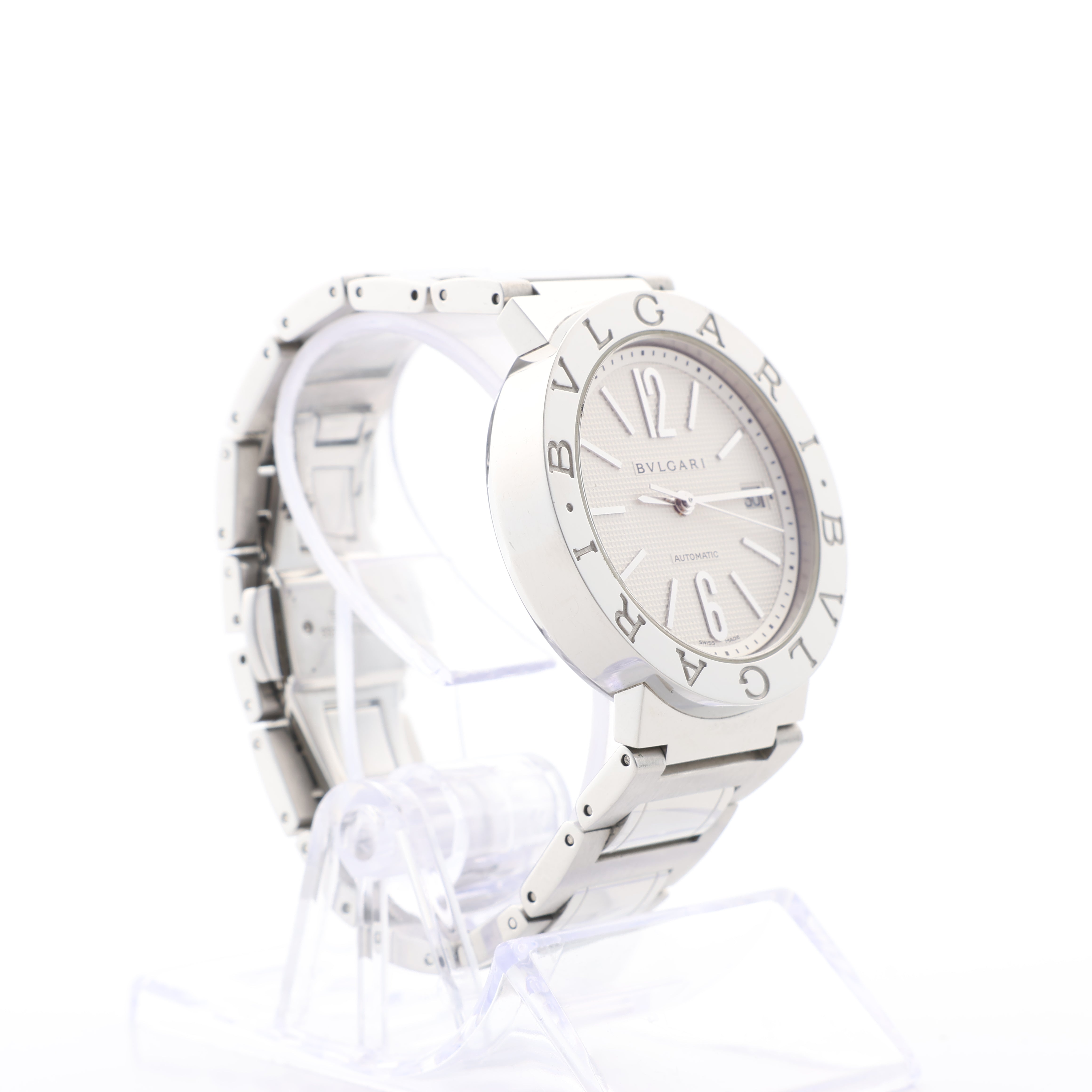 Brand: BvlgariModel: BulgariReference: BB38WSSDCondition: ExcellentCondition Details: In great condition with minor signs of wear as surface scratches on the watch strap and case, see photos for reference. Has just been checked and serviced. Outer pillow included; watch pillow is damaged.Dial Colour: SilverDial Material: Stainless steel Starp Colour: SilverStrap material: Stainless steelMovement: AutomaticClosure: ClaspFace Diameter: 38 mm Approx. circumference: 16 cm + 2 extra linksComes With: Box, Papers, Extra links