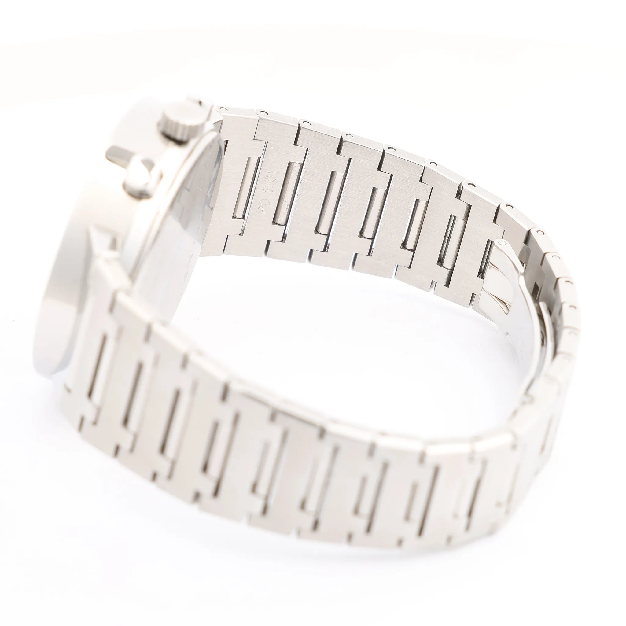 Brand: BvlgariModel: Bvlgari Bvlgari ChronographReference: BB38SSCHSeial No.: L1599Condition: ExcellentCondition Details: Excellent overall condition with almost no visible signs of use. Barely noticeable hairline marks may be present, but they are not visible to the naked eye. Please see photos for details. Dial Colour: BlackDial Material: Stainless steel Starp Colour: SilverStrap material: Stainless steelMovement: AutomaticFace Diameter: 38 mm Approx. circumference: 18 cmComes With: Box (damaged), papers, certificate, extra link, service card