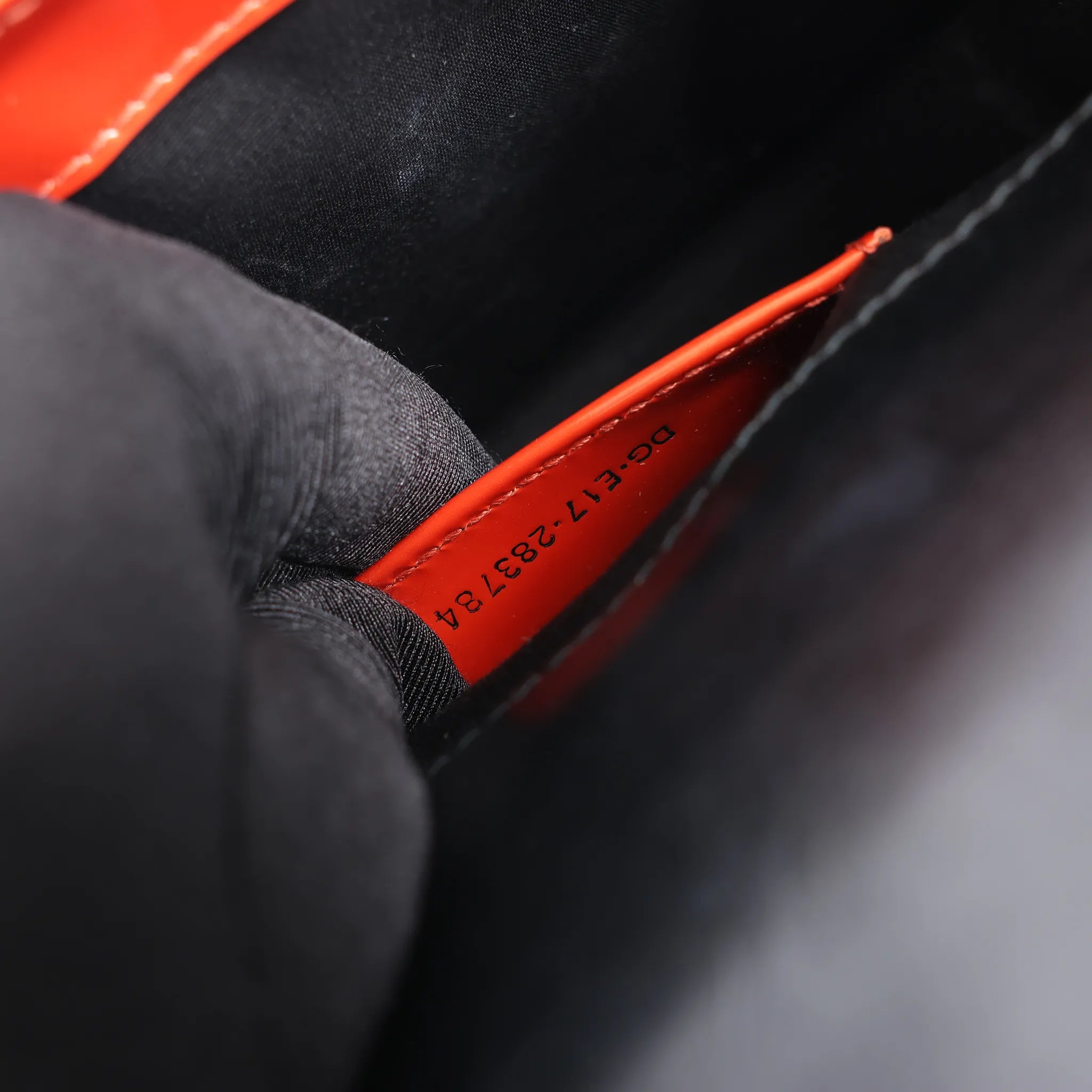 Make a bold statement with the BVLGARI Serpenti Forever Chain Shoulder Bag in vibrant orange patent leather. Featuring the iconic enamel snakehead closure and luxe gold-tone chain, this piece fuses Italian glamour with modern sophistication.