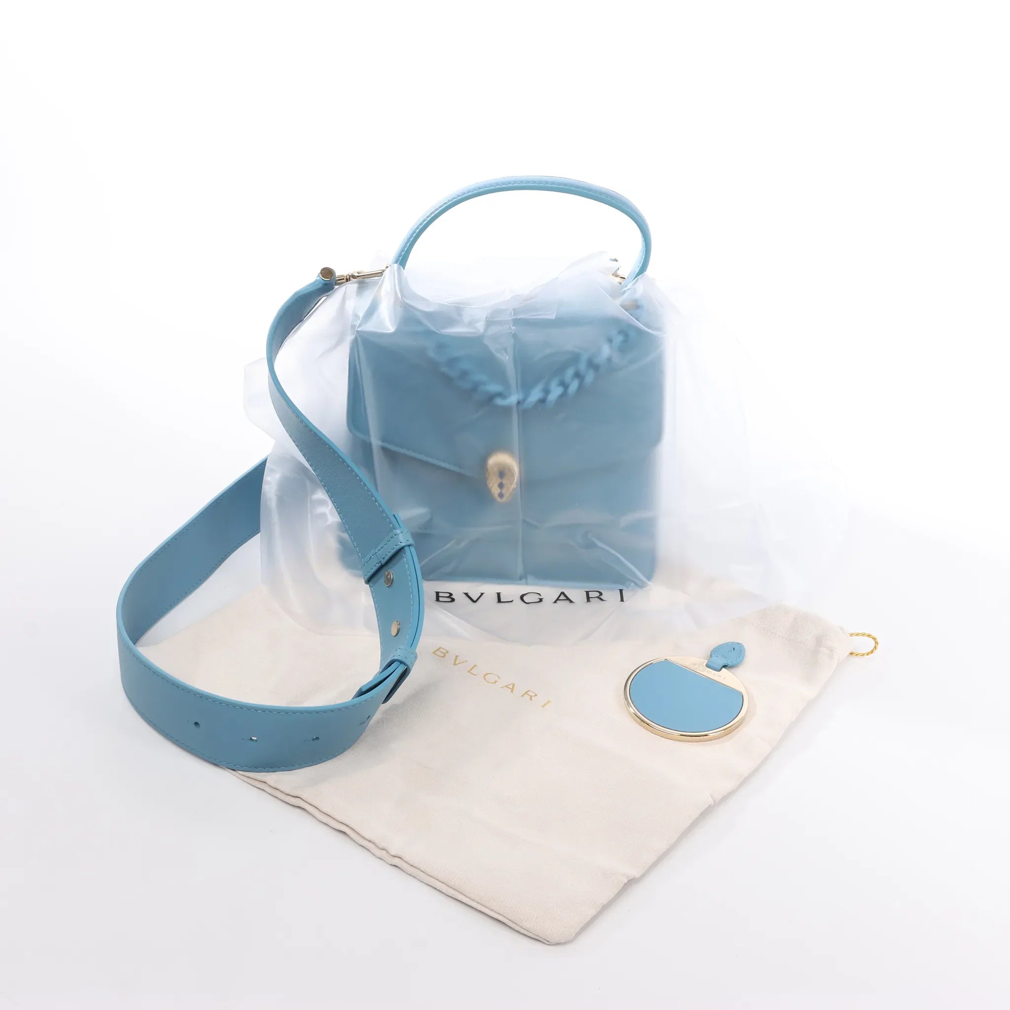 Brand: BvlgariModel: Serpenti ForeverSize: MiniWidth: 15 cm Height: 15 cm Exterior Condition: Never wornInterior Condition: Never wornCondition Details: -Colour: BlueInterior Colour: BrownHardware Colour: SilverMaterial: LeatherComes With: Strap, handle, dustbag, rain protection, mirror
