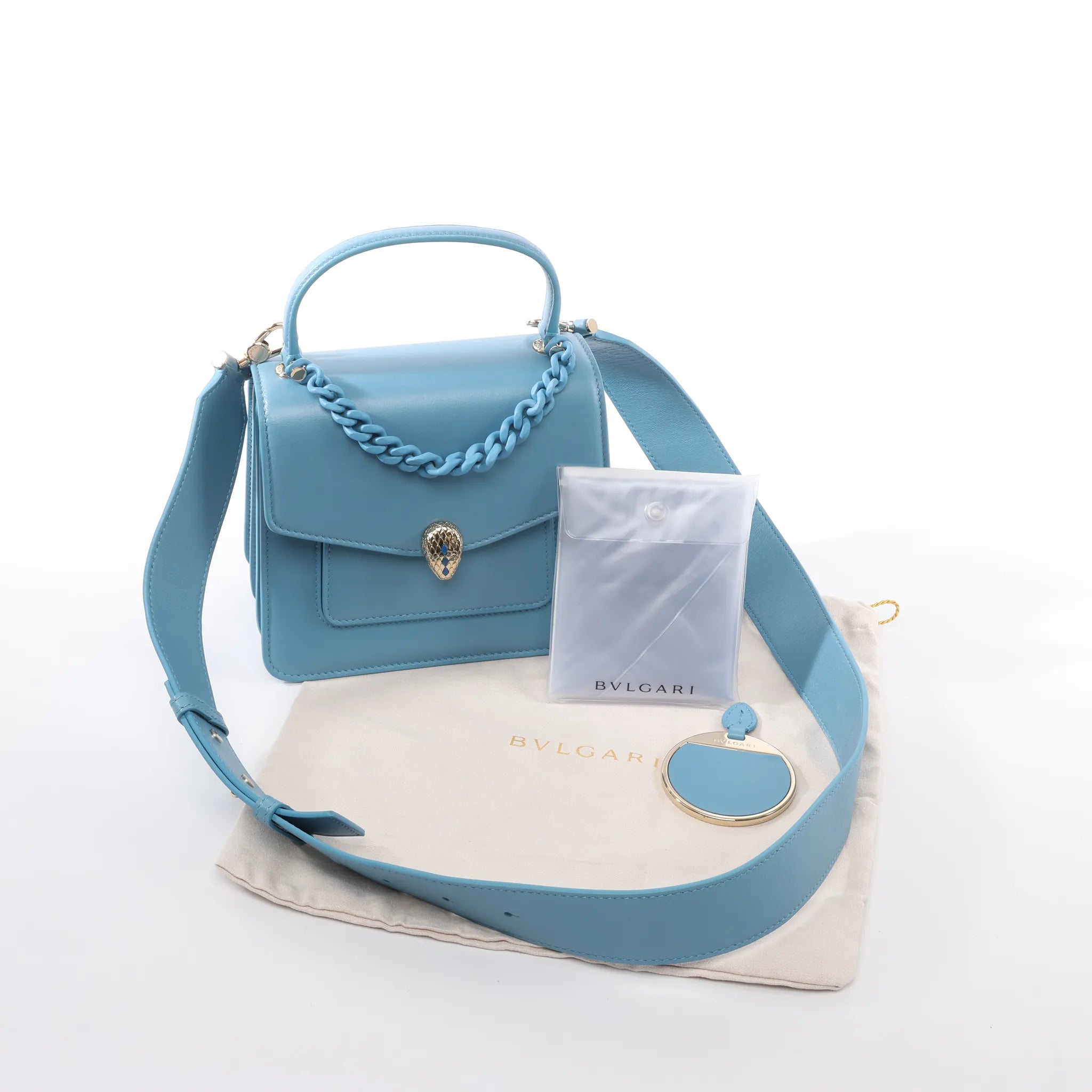 BVLGARI Serpenti Forever Leather Chain 2Way Handbag in Blue