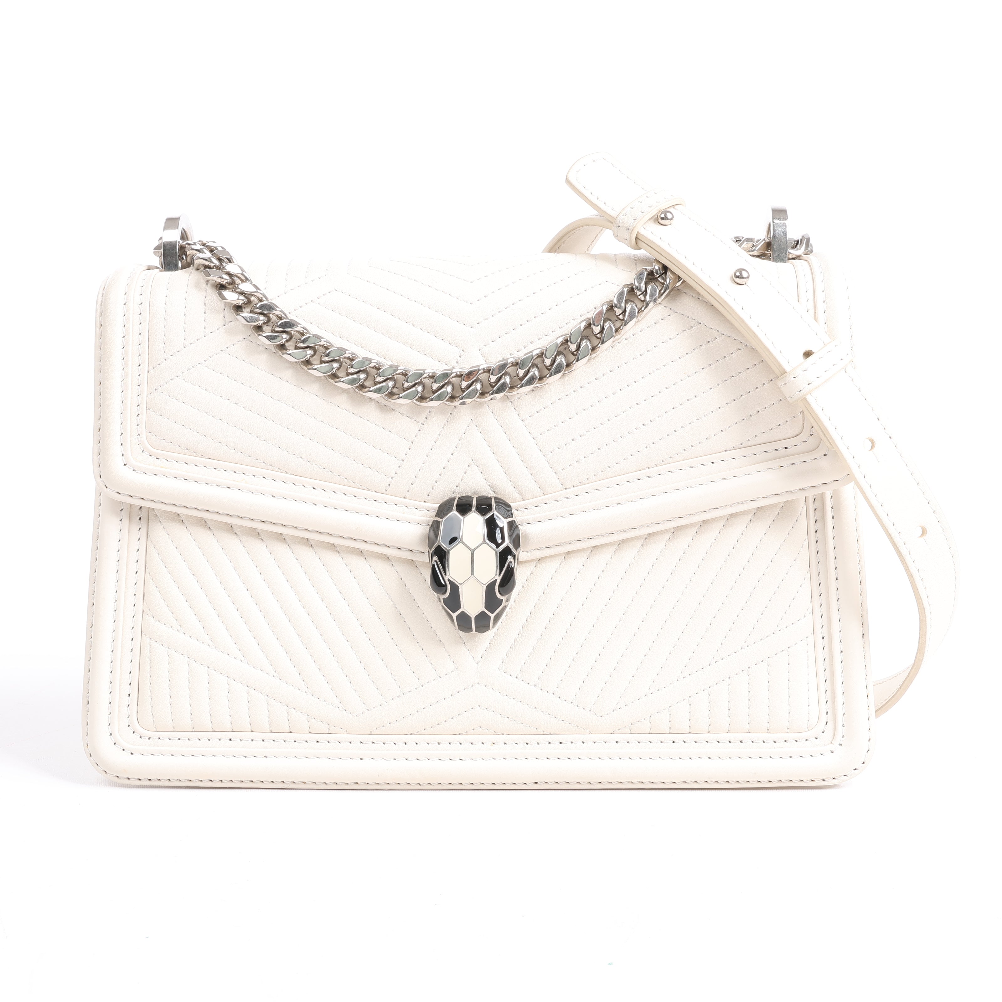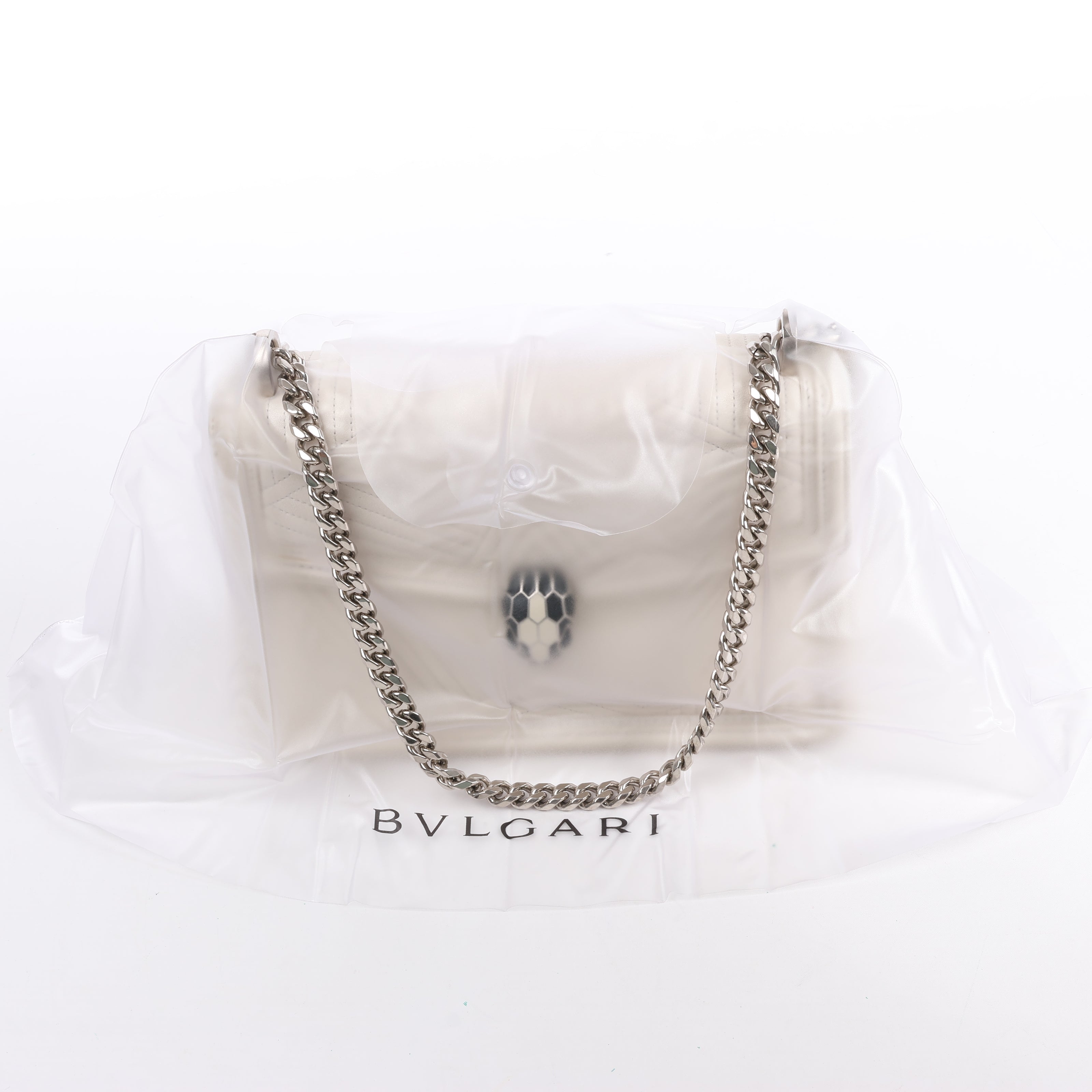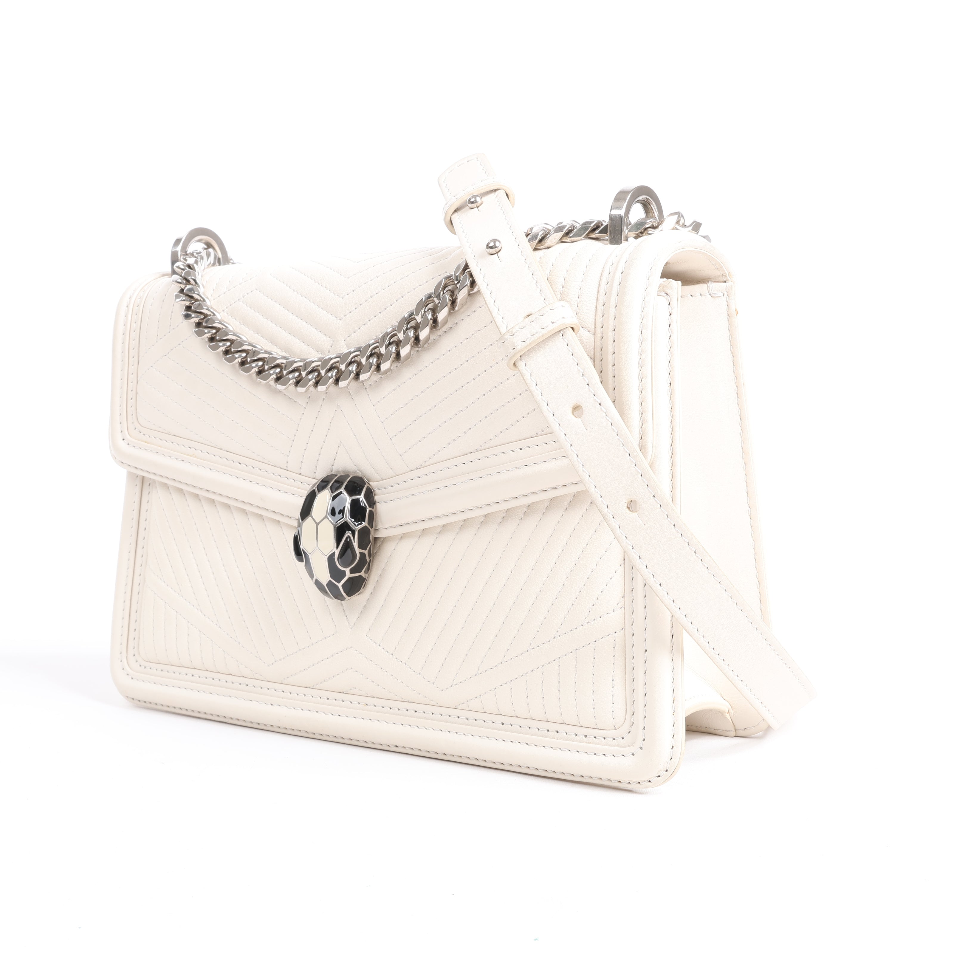 BVLGARI Serpenti Leather Chain Shoulder Bag in White