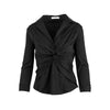 Prada black cotton shirt from 2000s, features fitted silhouette, long sleeves, collar and timeless crossed fastening at the front, giving it an elevated touch.