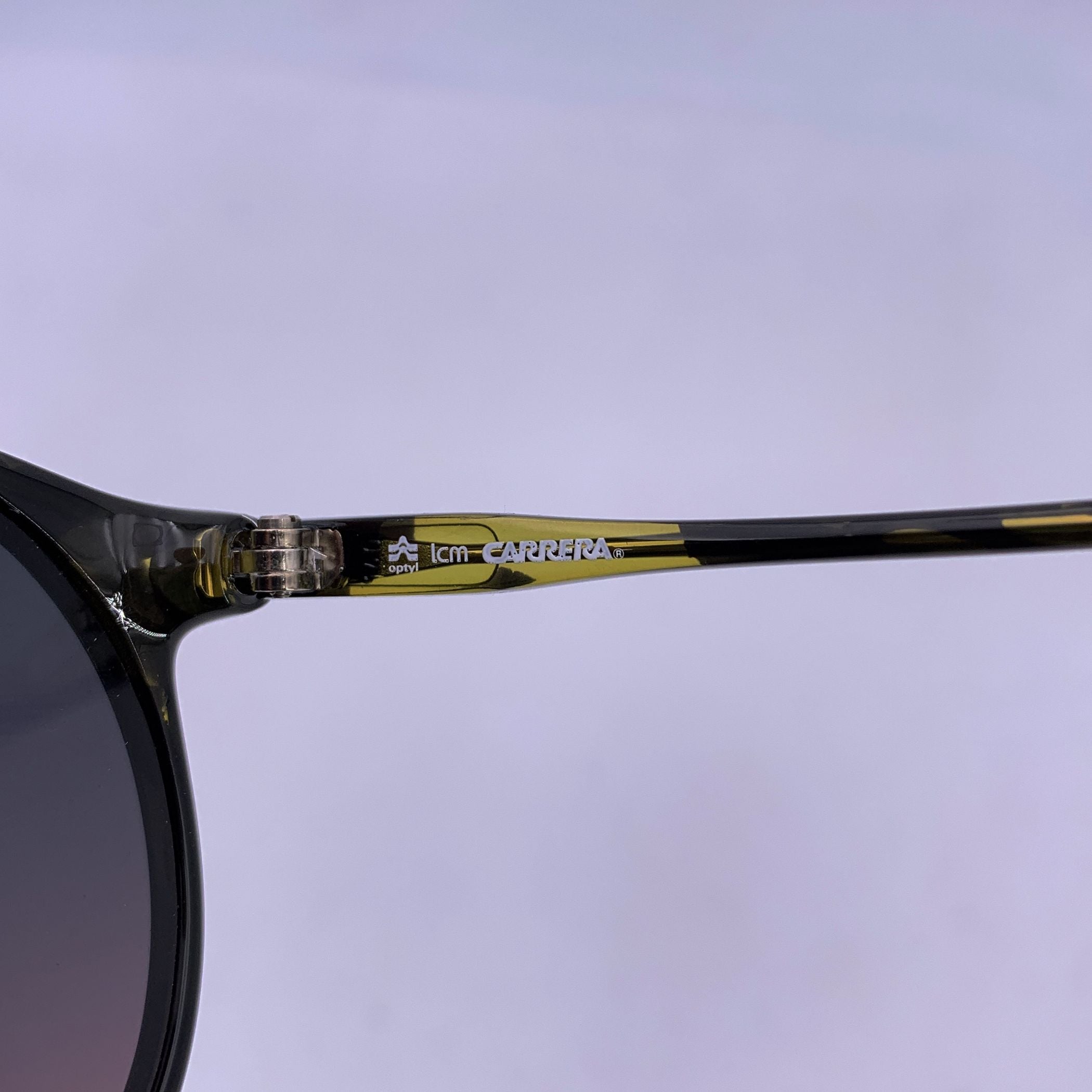 Rounded Sunglasses By Carrera, a Statement Piece That Perfectly Captures The Brand's Signature Blend Of Sporty Energy And Vintage-inspired Sophistication. The Frame Is Crafted From Optyl, a Lightweight, Durable, And Hypoallergenic Material, Designed For Superior Comfort And a Glossy, Lasting Finish. The Color Combination Of Black And Transparent Yellow Adds a Modern And Eye-catching Contrast, Giving These Sunglasses a Distinctive And Contemporary Appeal. The Model Features Rounded Lenses With a Gradient Blue And Purple Tint, Offering 100% Uv Protection For Everyday Wear While Maintaining a Fashionable, Easy-to-style Look. Carrera's Attention To Detail Is Evident In The Precise Construction And Subtle Logo Accents, a Nod To The Brand's Rich Heritage In High-performance Eyewear. Model Reference: 5354 - 61 - 58/16 Frame Made In Austria.