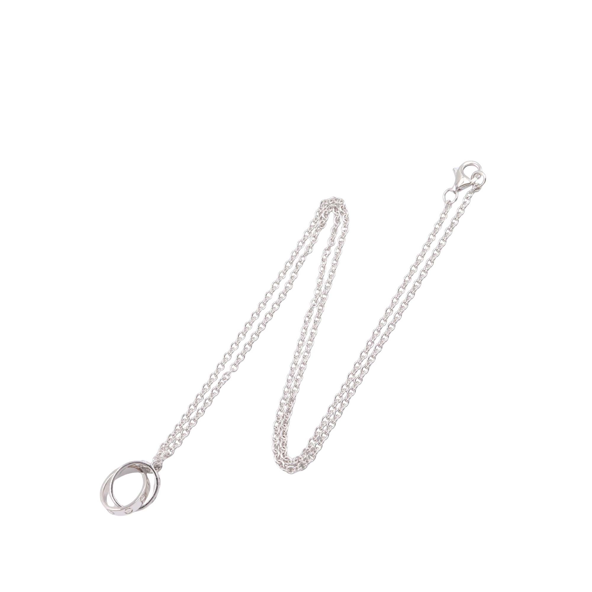 This necklace features an 18K white gold body, 18K white gold Love ring charms, and a lobster clasp closure. Motif Measurements: W20mm X H10mm. Retail Price: 2580.00