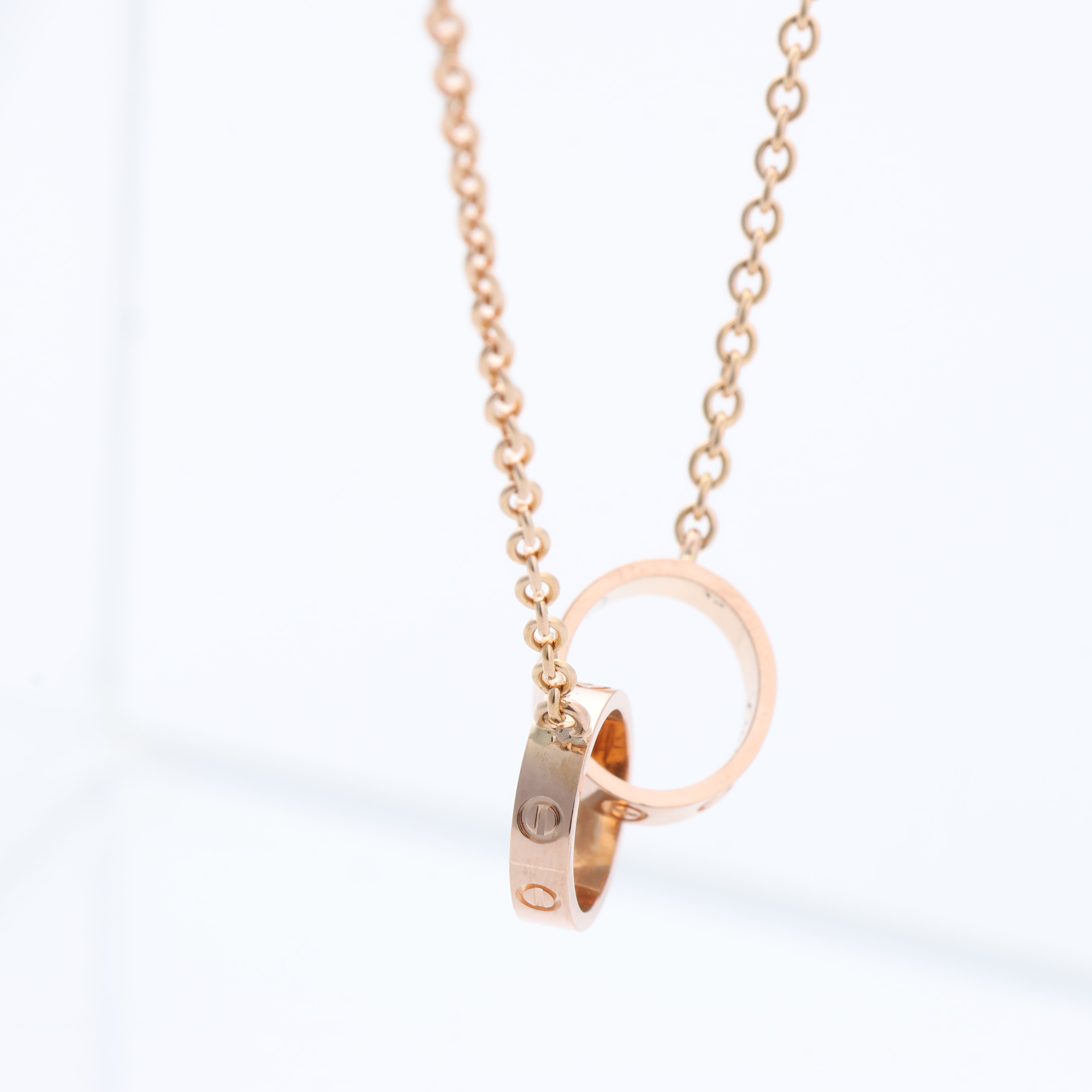 The Cartier Baby Love Necklace (750 PG, 6.7g) is a delicate and elegant accessory. Crafted from 18k pink gold, it features a small ring pendant with the iconic screw motif design, symbolizing everlasting love. This necklace blends timeless sophistication with modern charm.