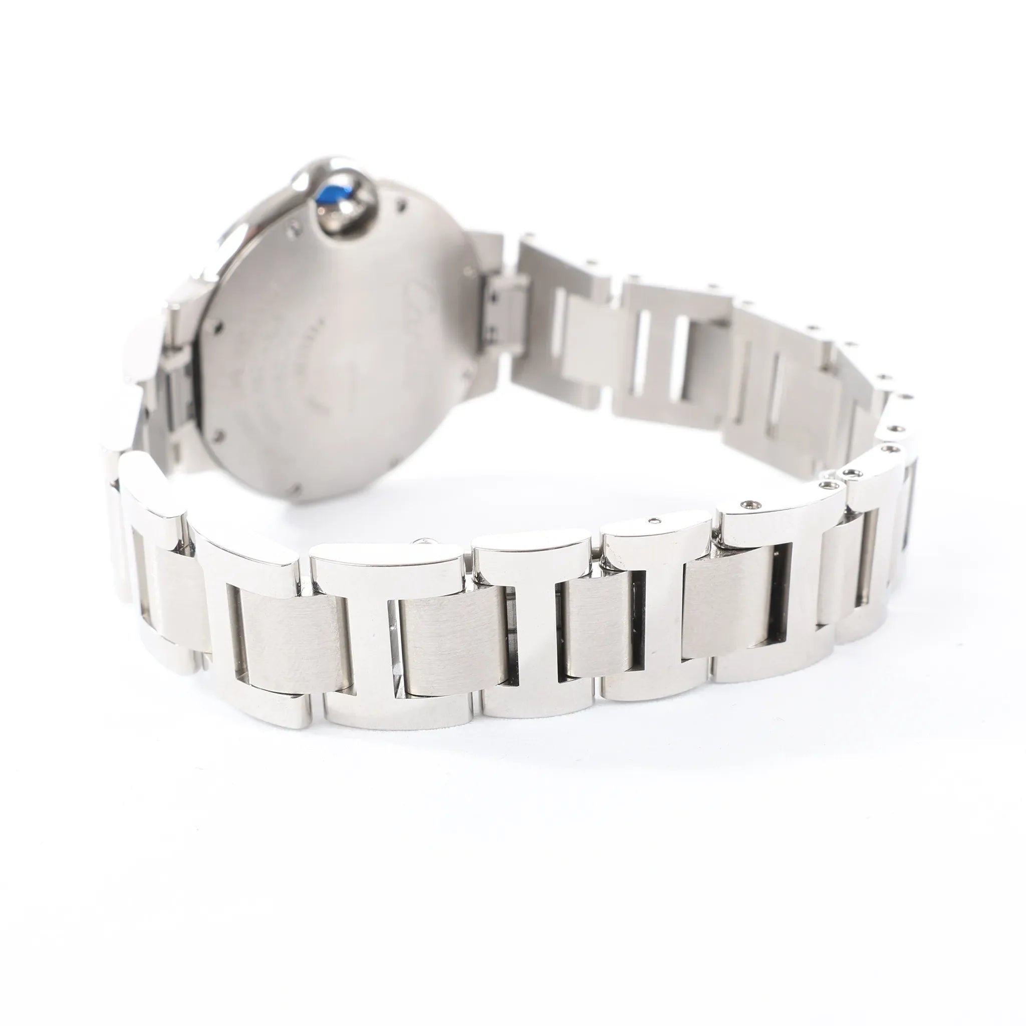 Brand: CartierModel: Ballon BleuReference: W4BB0028Serial No.: 3489426002BXCondition: ExcellentCondition Details: Excellent overall condition with almost no visible signs of use. Barely noticeable hairline marks may be present, but they are not visible to the naked eye. Please see photos for details. Dial Colour: BlueCase Material: Stainless steel Starp Colour: SilverStrap material: Stainless steelMovement: AutomaticClosure: Fold claspDial Diameter: 33 mm Approx. max circumference: 19 cmComes With: Box, certificate