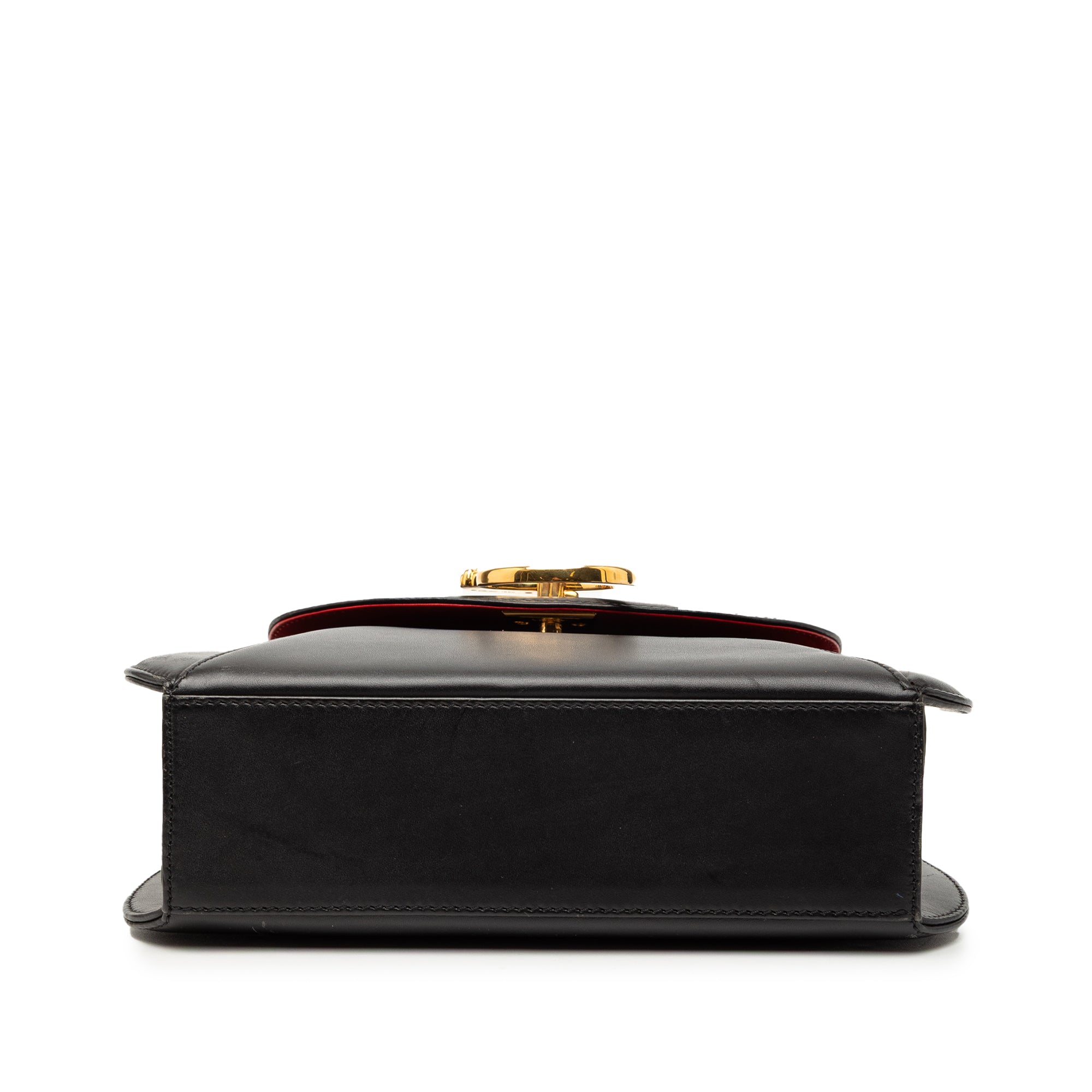 This handbag features a leather body, a rolled leather top handle, a front flap with magnetic snap closure, and an interior zip pocket. Retail Price: 1500.00