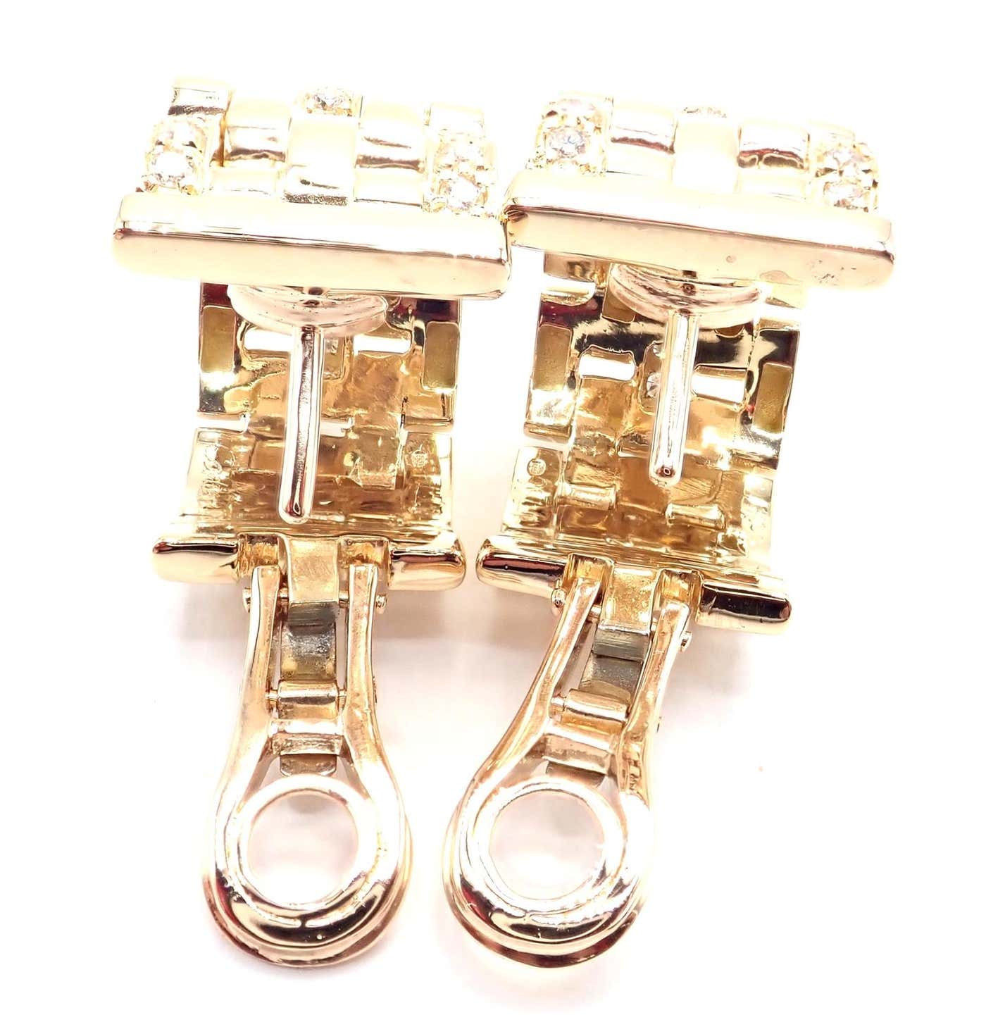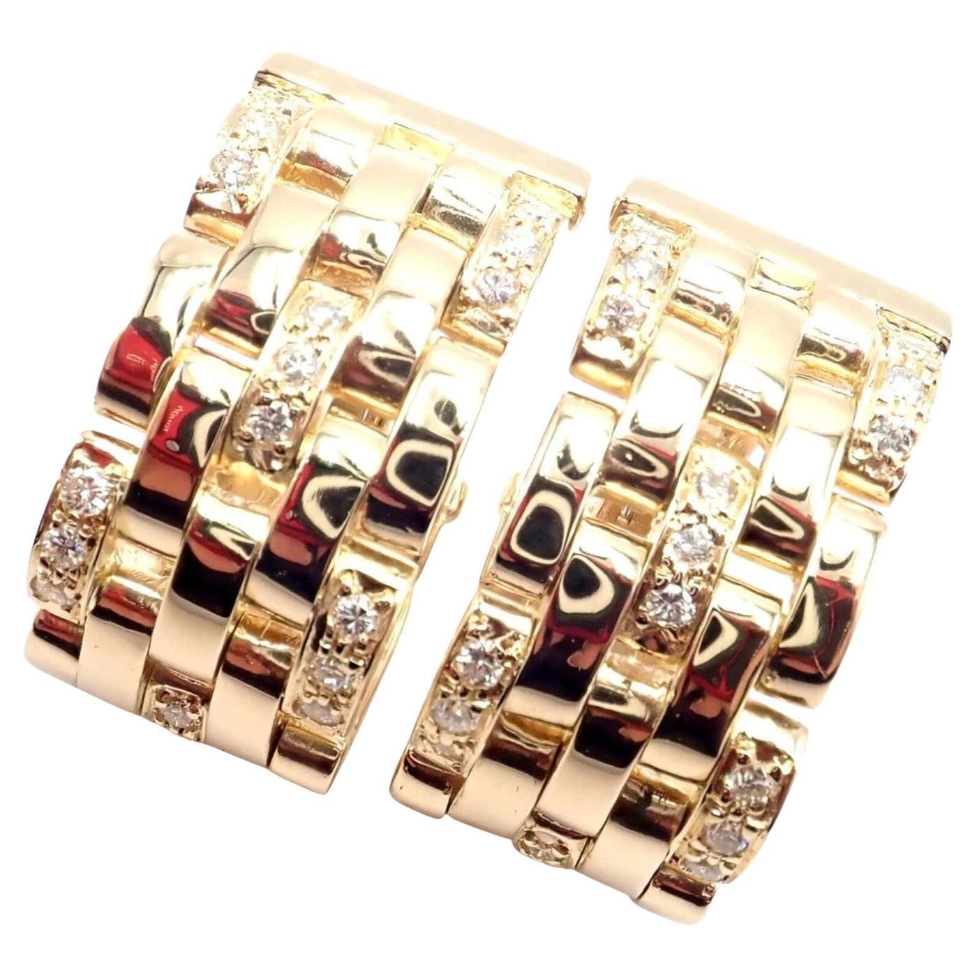 18k Yellow Gold & Diamond Five Row Link Cartier Maillon Panthere Earrings.