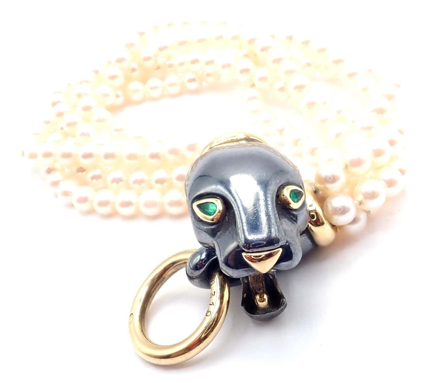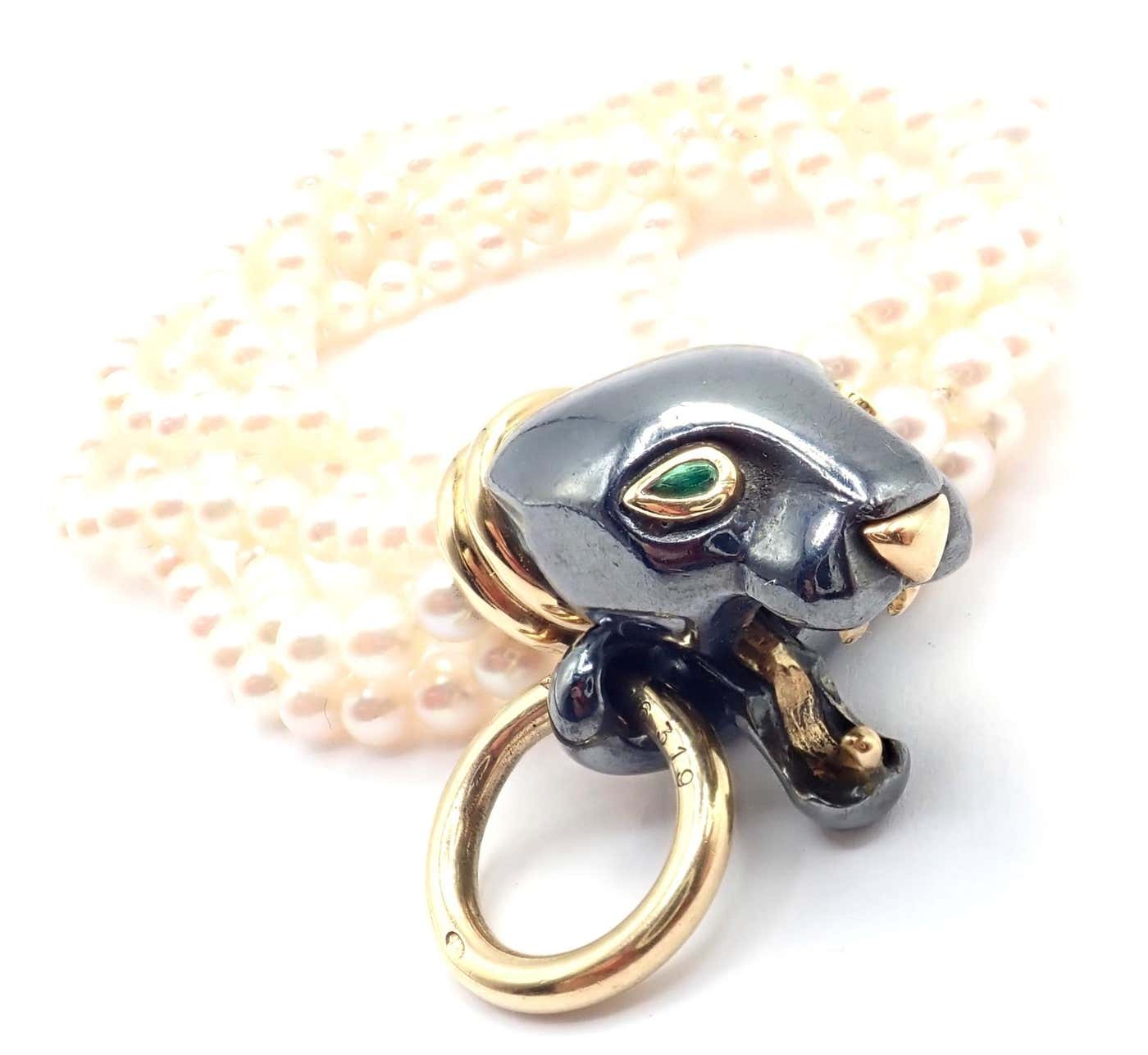 18k Yellow Gold & Silverium Pearl Emerald Panthere de Cartier Panther Bracelet.