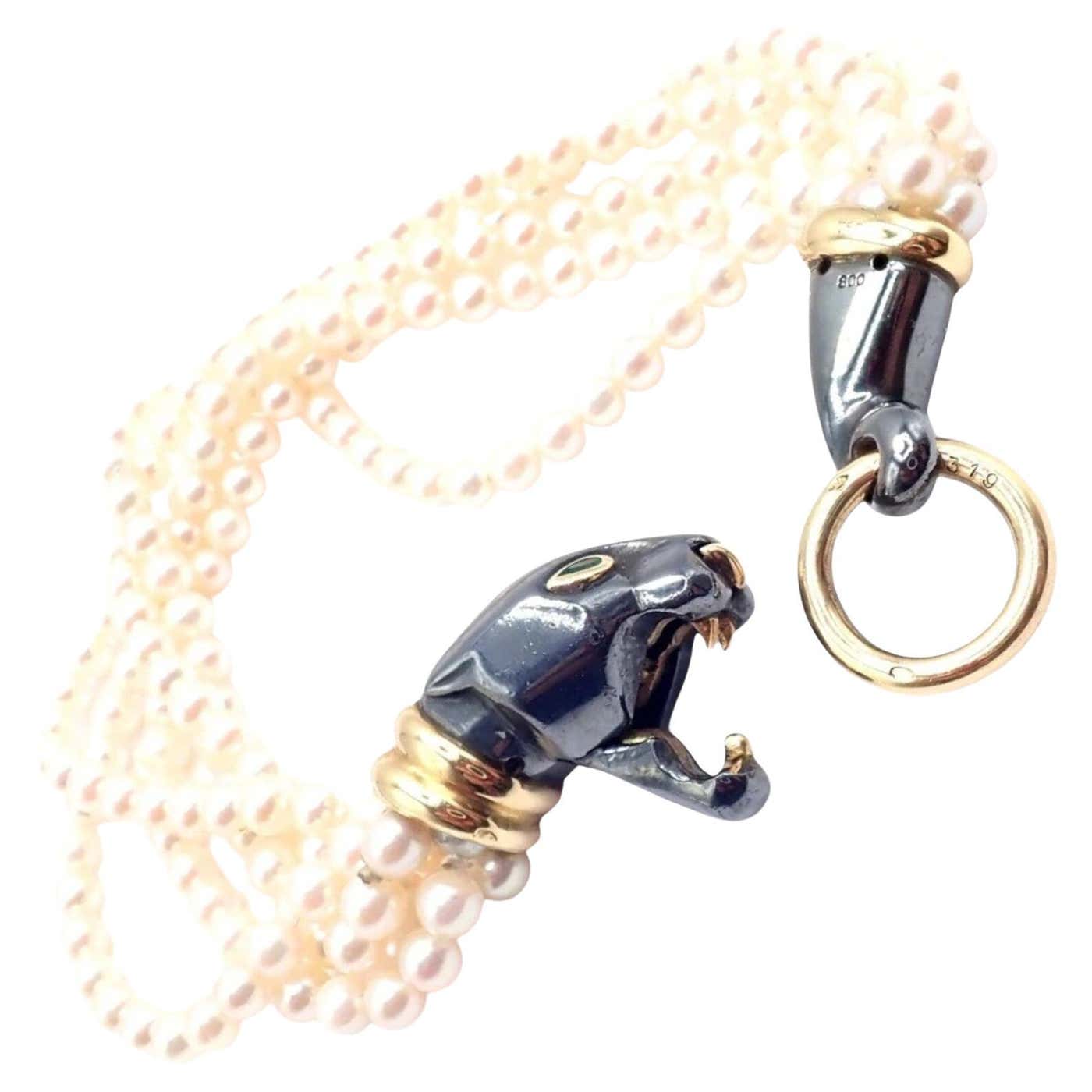 Cartier Panther Panthere Yellow Gold & Silverium Emerald Pearl Bracelet - '90s