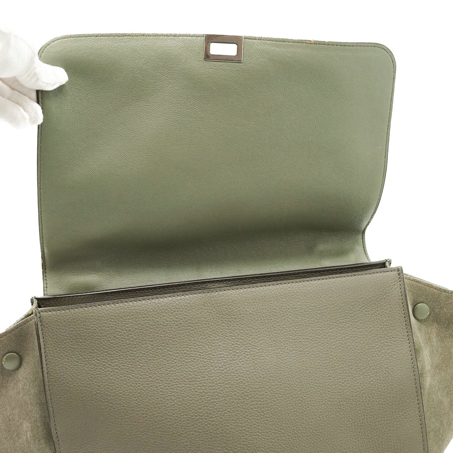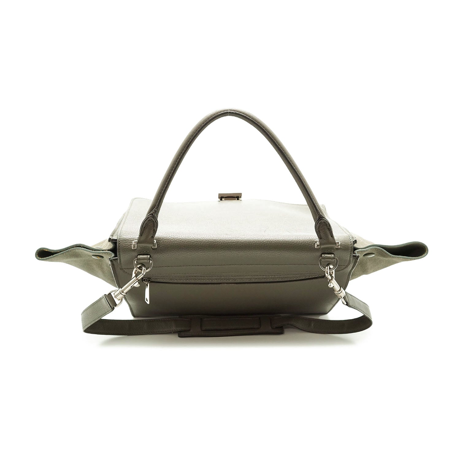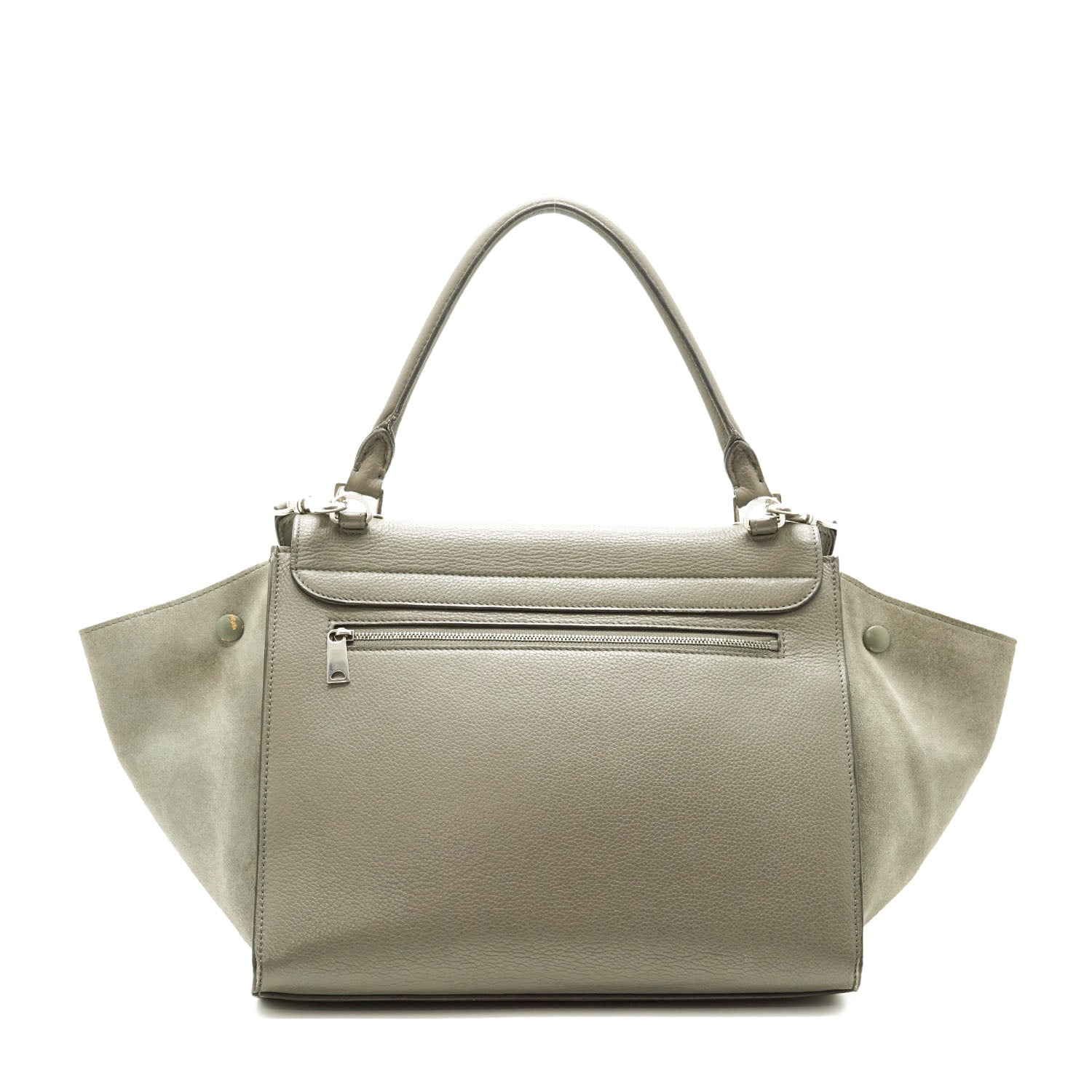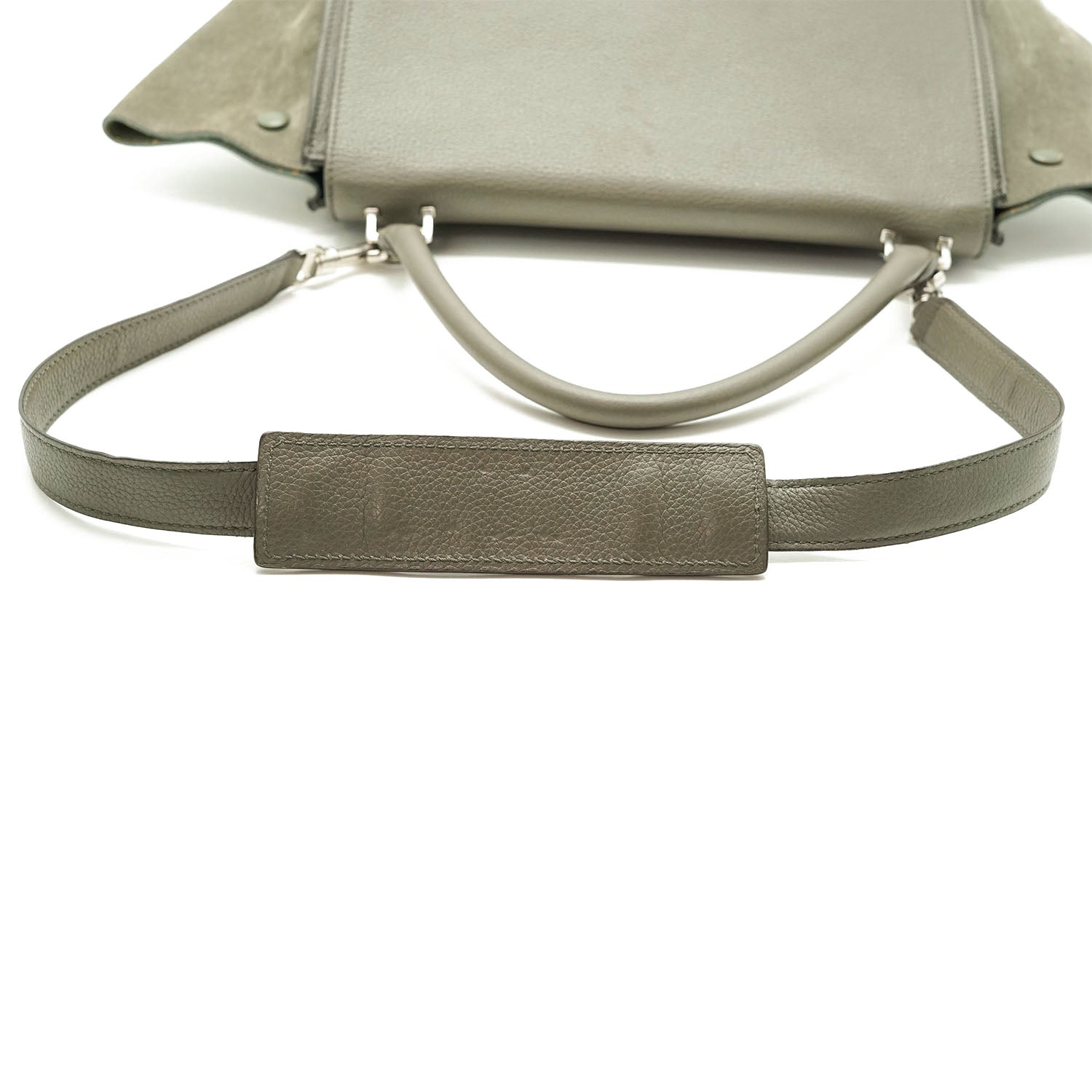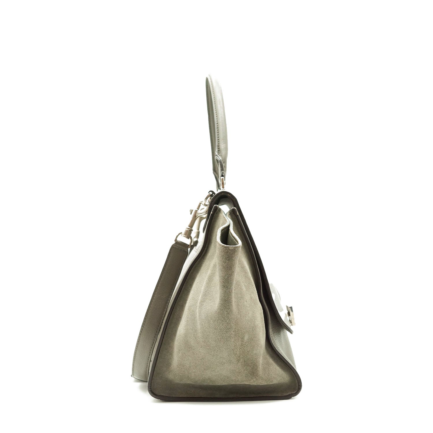 2way Trapeze Bag Dark grey Suede, LeatherDepth: 16.5cmHeight: 26.5cmWidth: 30cmWidth at Top: 51cmShoulder Drop: 37cmHand Drop: 17cmOutside Rank: BCInside Rank: BDiscoloration: Slight hardware tarnishScratch: Corner wear (rub/light cracks), rubbing along the upper trim, some scratches on the bottom and hardwarePeeling: Some leather cracking on the corners, slight peeling on the inside of the back pocket/insideSticky: Slight stickiness on the top handleInclude: Leather shoulder strap