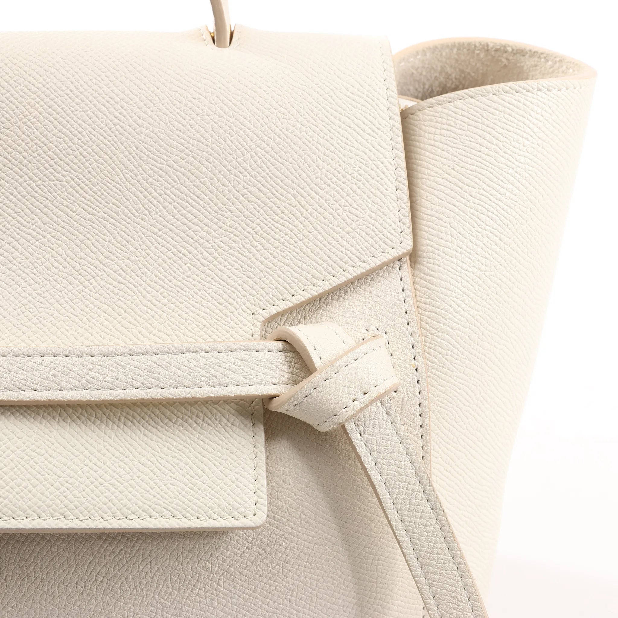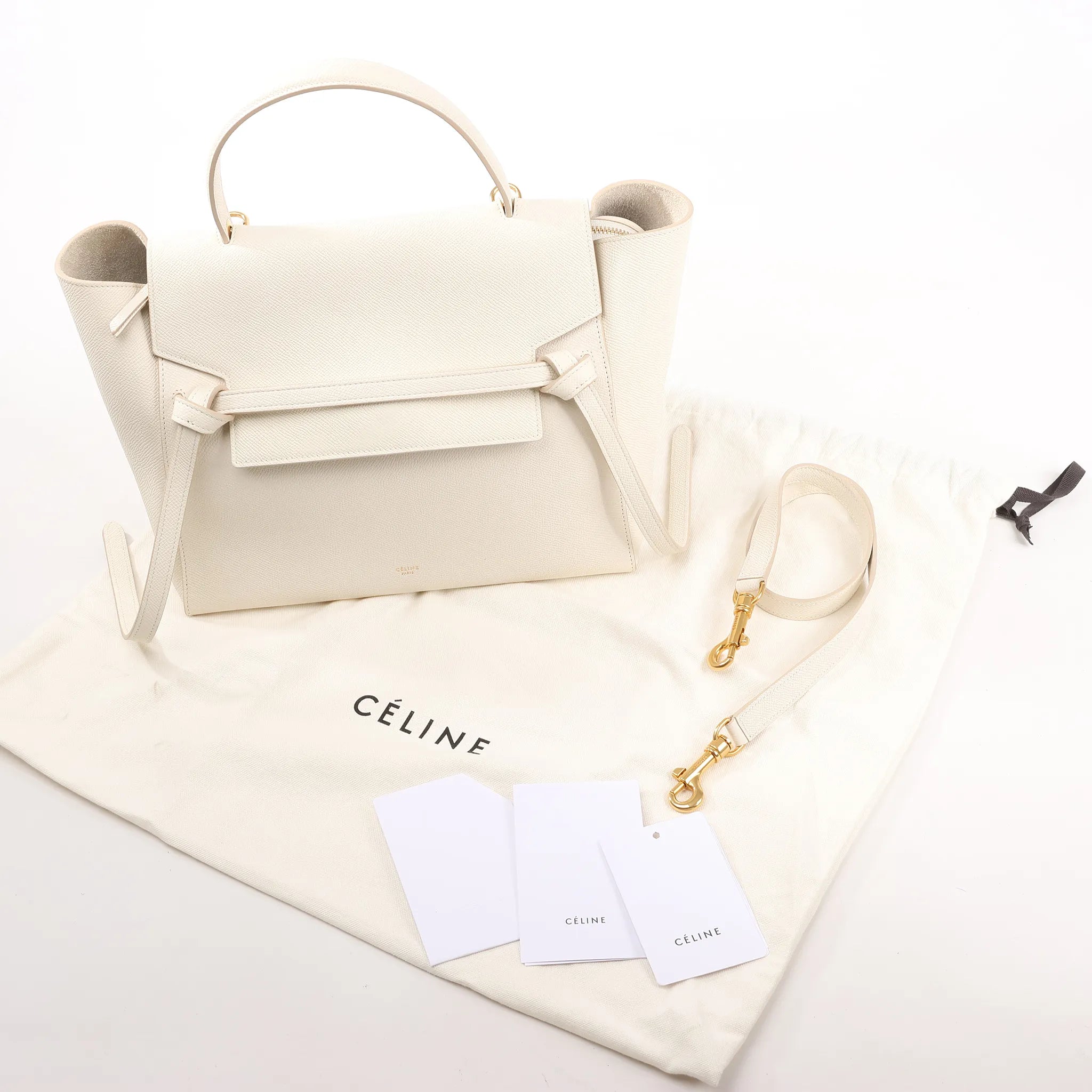 CELINE Belt Bag Grained Leather Mini 2Way Handbag in White