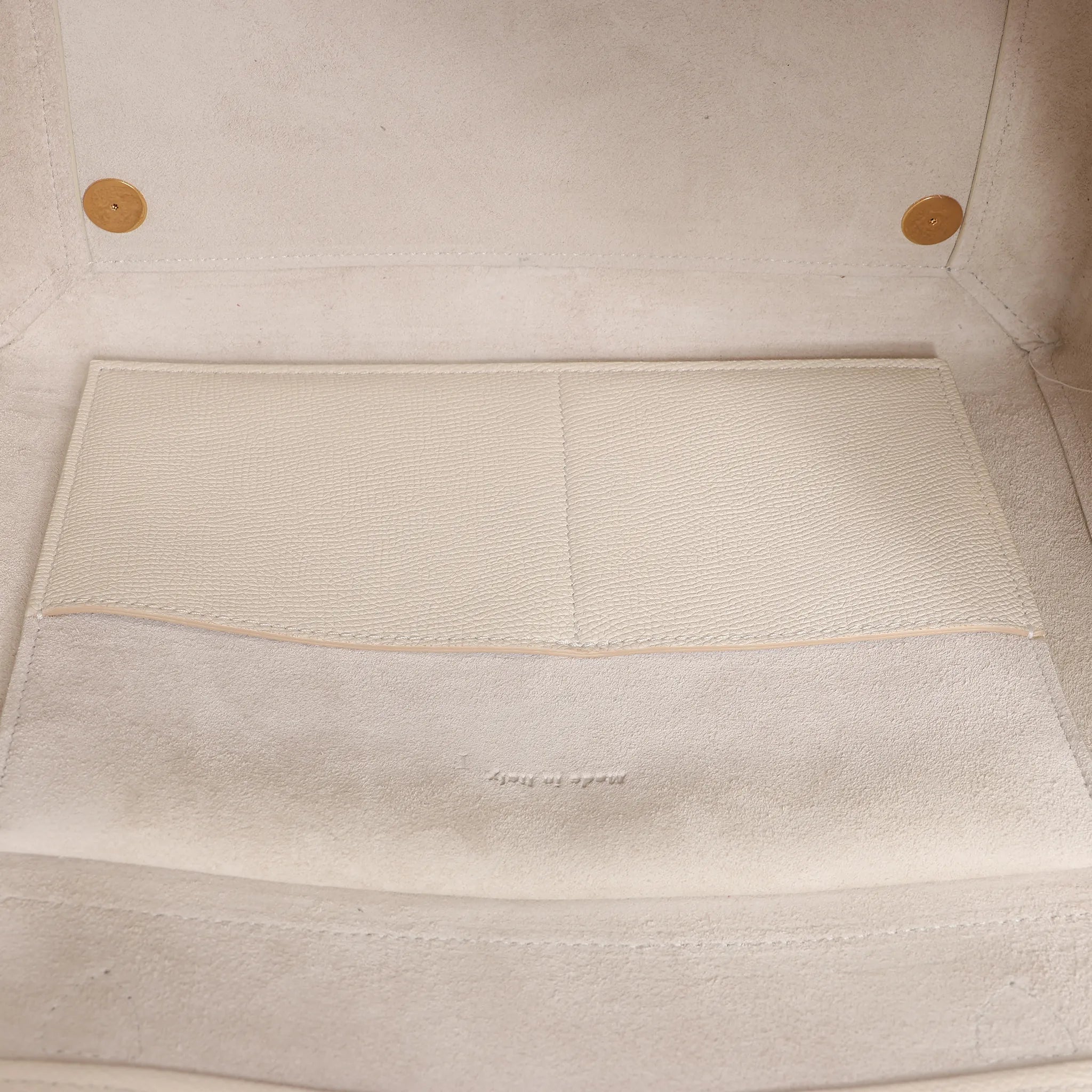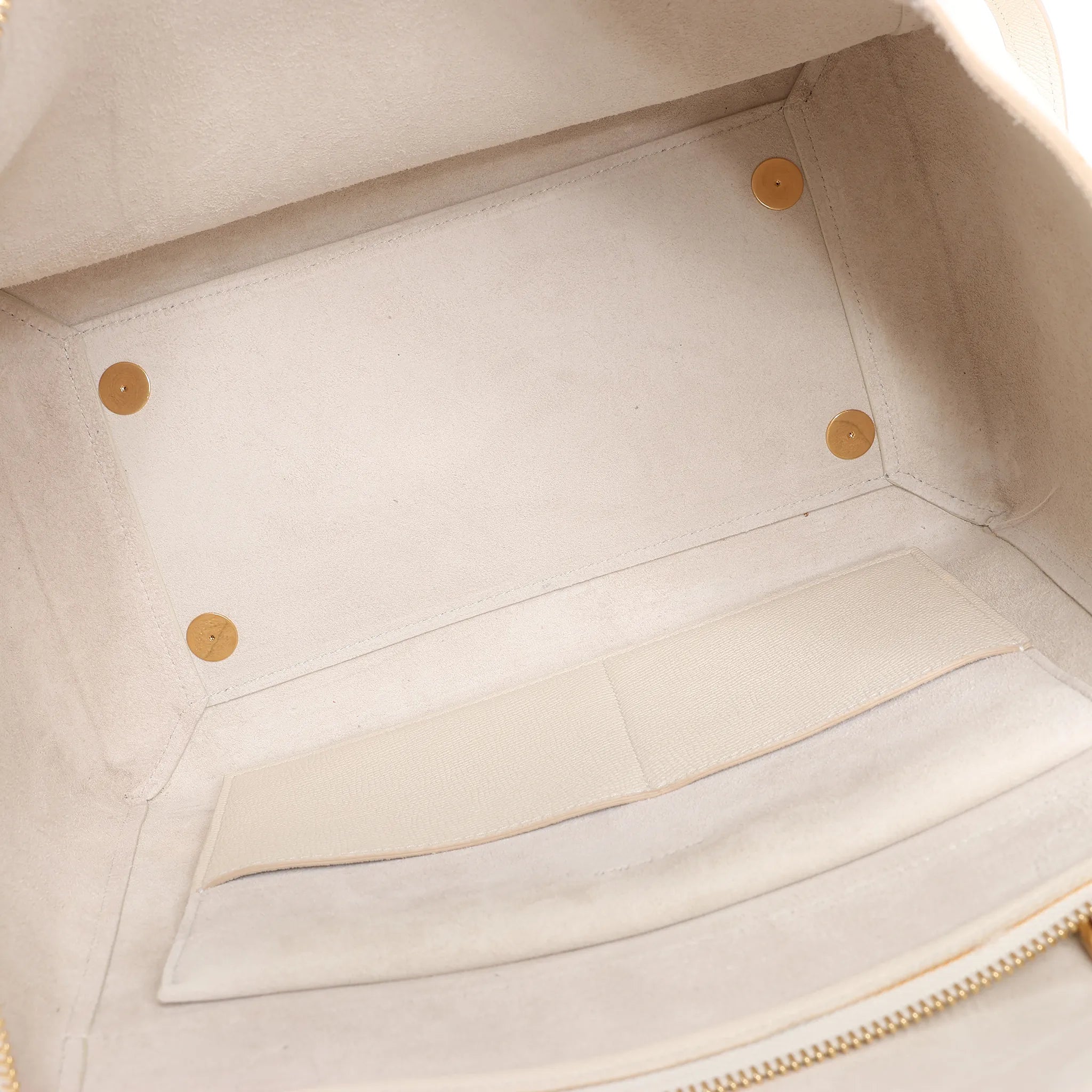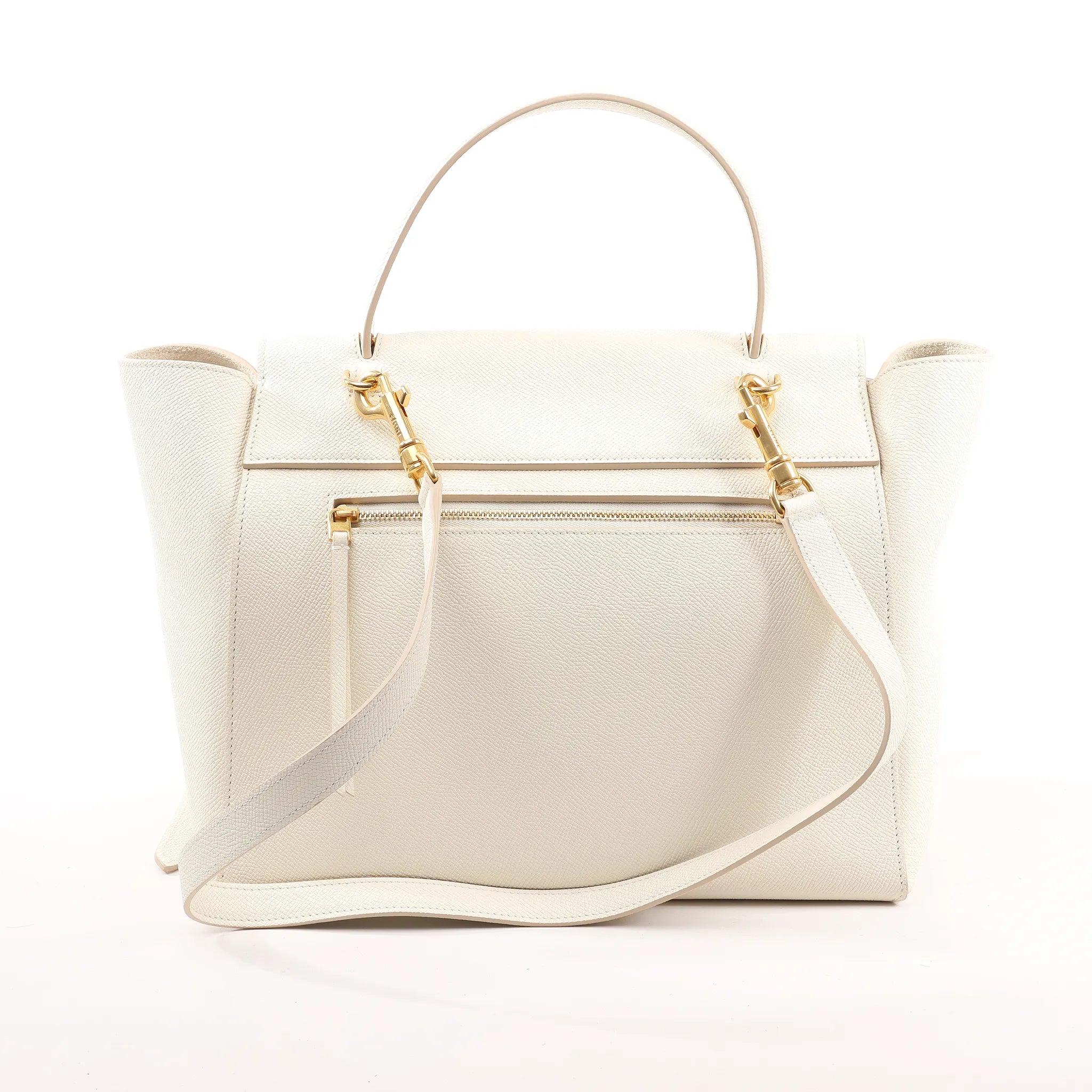 Brand: CELINEModel: BeltSize: MiniWidth: 27 cmHeight: 22 cm Exterior Condition: ExcellentInterior Condition: ExcellentCondition Details: Exterior leather is beautiful and in excellent condition.. The handle and shoulder strap is clean and firm in very good condition. The hardware remains bright and shiny, but has light surface scratches. The interior lining remains good condition. The width at the top is 40 cm.Colour: WhiteInterior Colour: WhiteHardware Colour: GoldMaterial: LeatherComes With: Shoulder strap, dustbag, brand paper