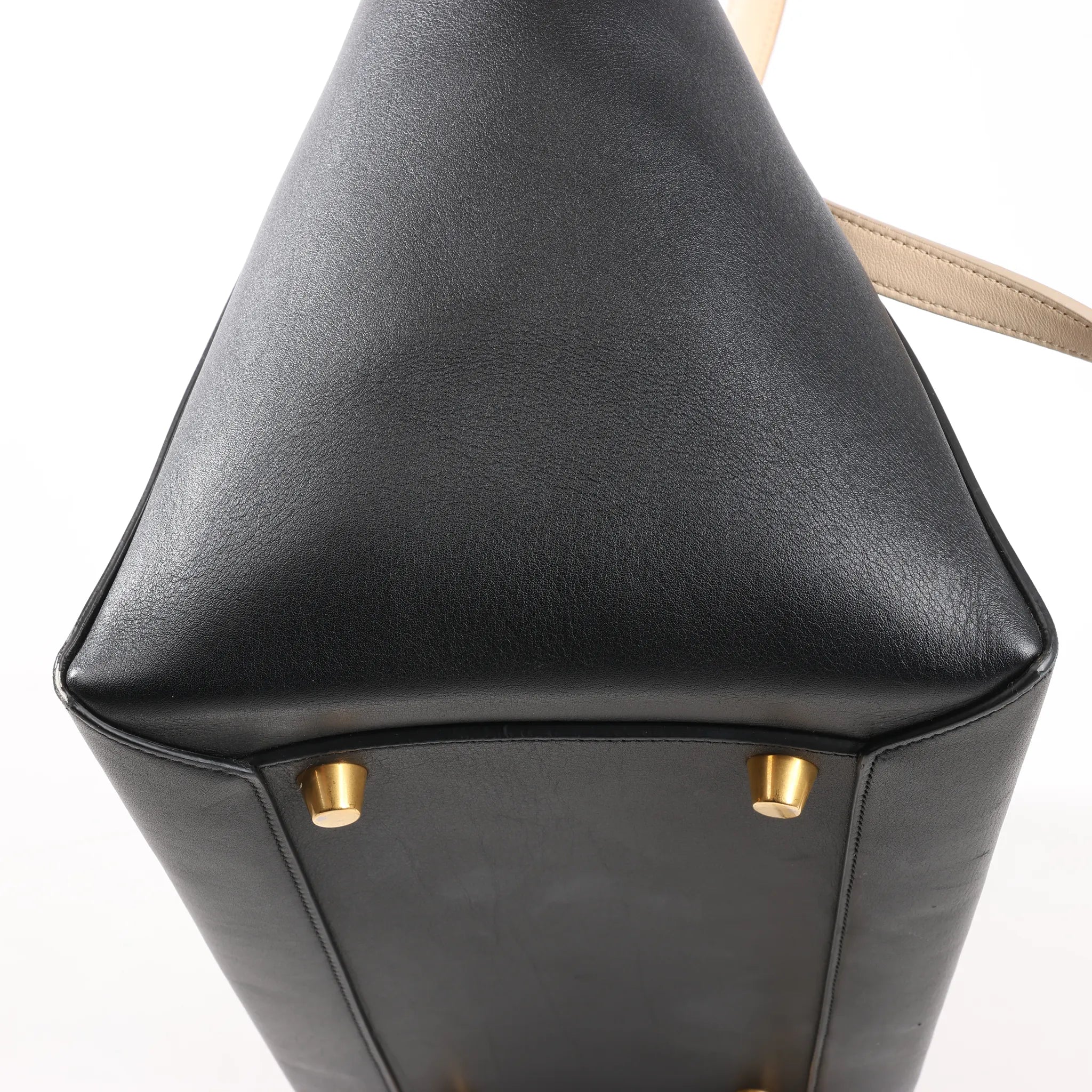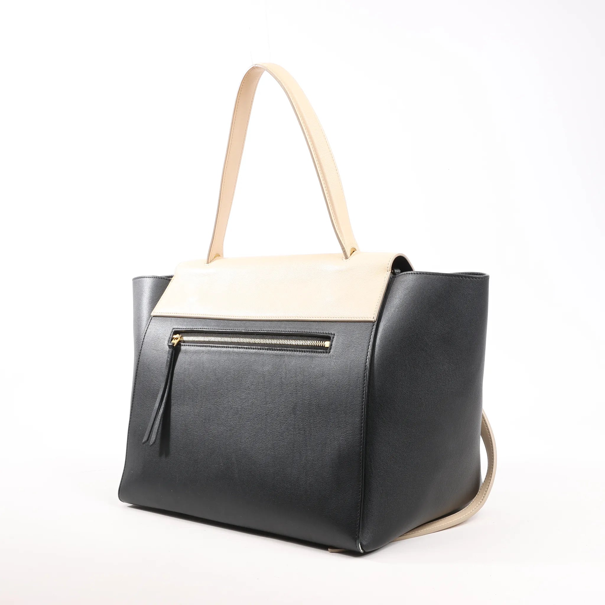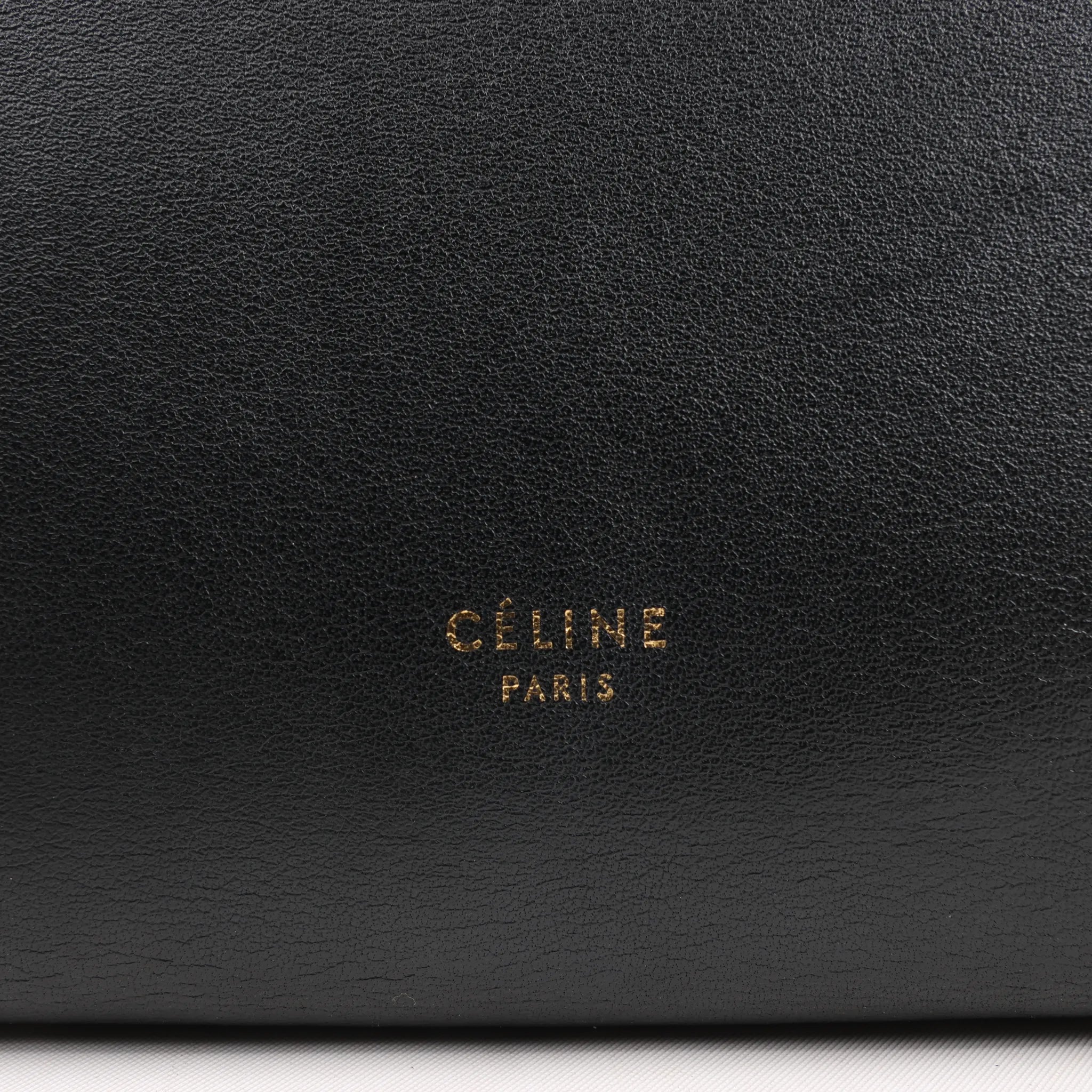 Brand: CELINEModel: BeltSize: MiniWidth: 30.5 cmHeight: 23.5 cmExterior Condition: ExcellentInterior Condition: ExcellentCondition Details: Exterior leather is beautiful in great condition with some small scratches. The handle is in very good condition. The hardware remains bright and shiny with some hairline scratches. The interior lining is in very good condition. The width at the top is 45 cm.Colour: Black, BeigeInterior Colour: BlackHardware Colour: GoldMaterial: LeatherComes With: -