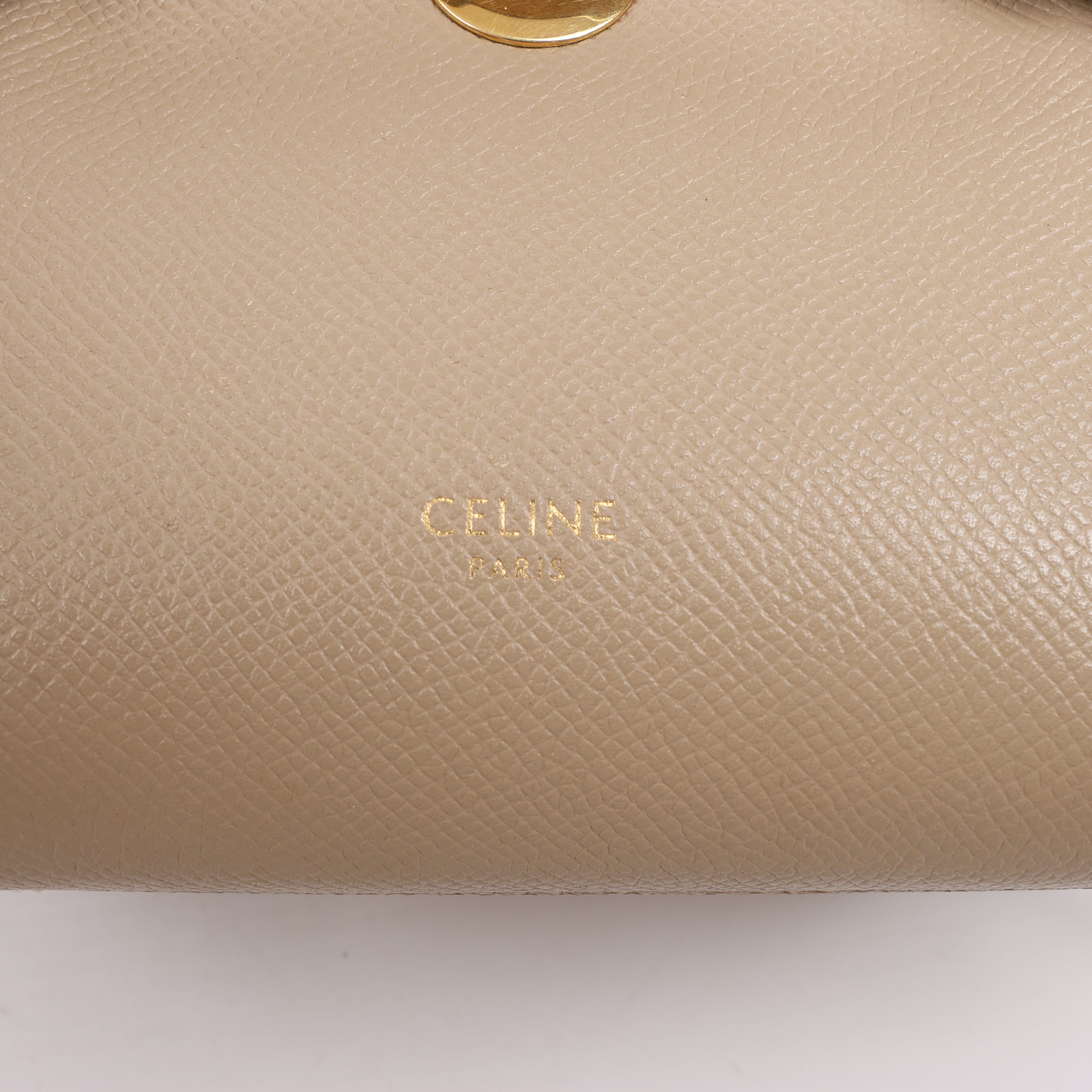 Brand: CELINEModel: BeltSize: PicoWidth: 15,5 cmHeight: 14 cmExterior Condition: ExcellentInterior Condition: Very goodCondition Details: Exterior leather is beautiful in excellent condition except some minor signs of use on the bottom corners. The handle and shoulder strap is in very good condition. The hardware remains bright and shiny with some hairline scratches. The interior lining is in good condition, but has usage rubbings and stains. The width at the top is 21 cm.Colour: BeigeInterior Colour: BeigeHardware Colour: GoldMaterial: LeatherComes With: Shoulder strap