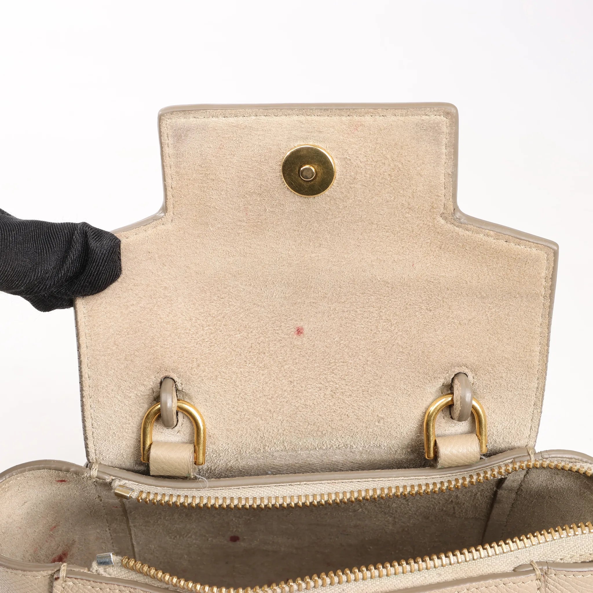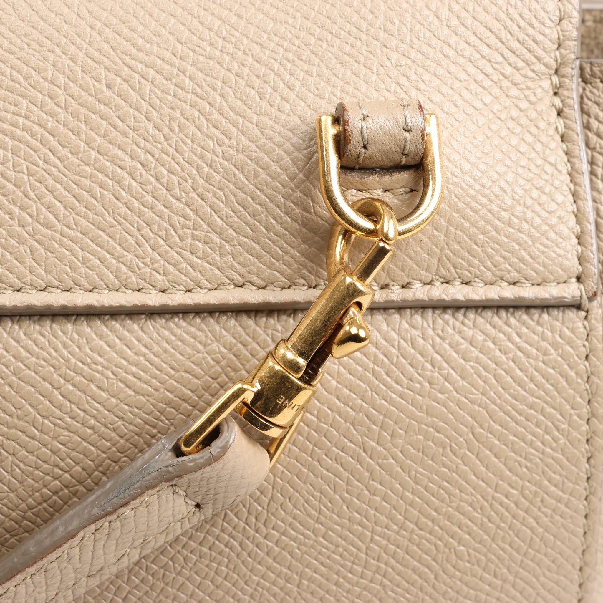 Brand: CELINEModel: BeltSize: PicoWidth: 15 cmHeight: 13 cmExterior Condition: ExcellentInterior Condition: Very goodCondition Details: Exterior leather is beautiful in great condition except some minor signs of use on the bottom corners. Front logo has faded. The handle and shoulder strap is in very good condition. The hardware remains bright and shiny with some hairline scratches. The interior lining is in good condition, but has red stains. The width at the top is 20 cm.Colour: BeigeInterior Colour: BeigeHardware Colour: GoldMaterial: LeatherComes With: Shoulder strap
