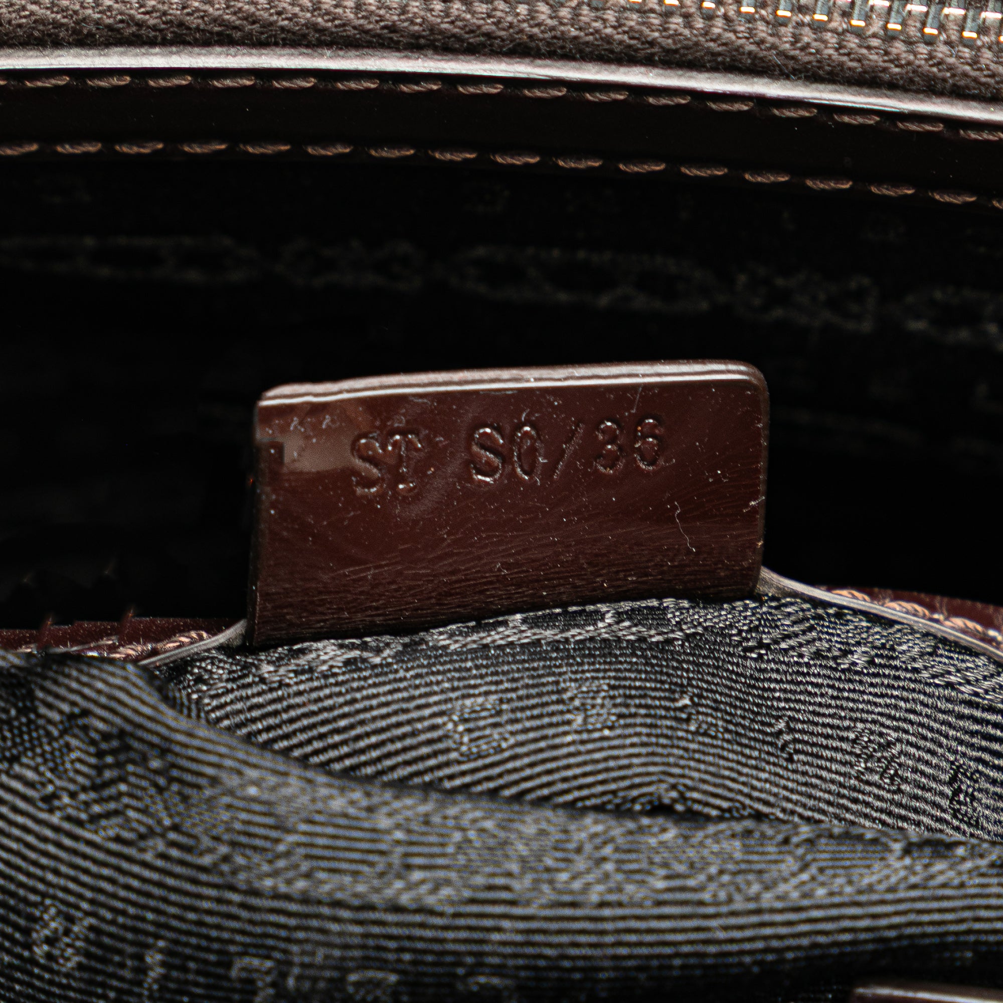 The Boogie features a canvas body with leather trim, rolled leather handles, exterior slip pockets, a top zip closure, and an interior zip compartment. Retail Price: 1000.00