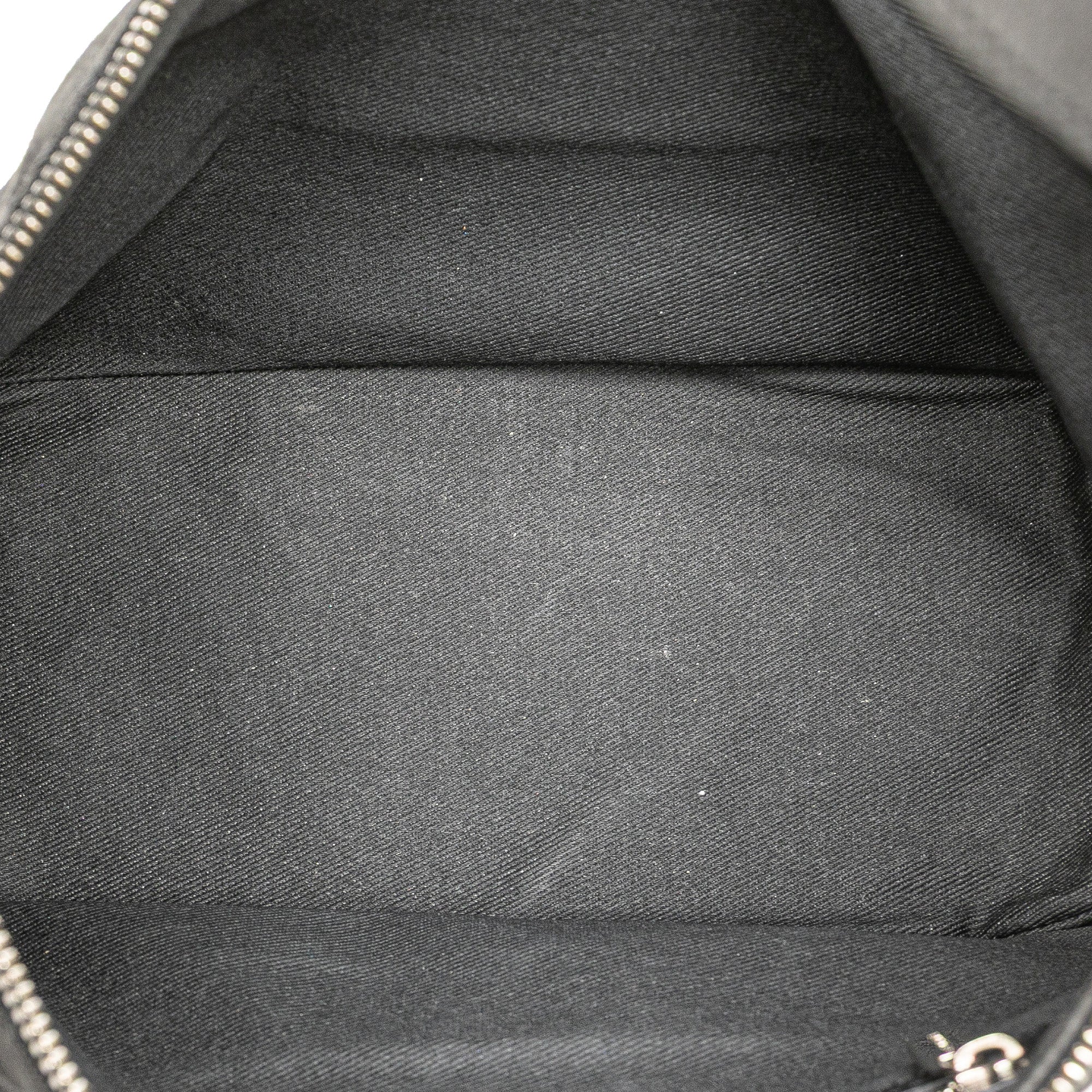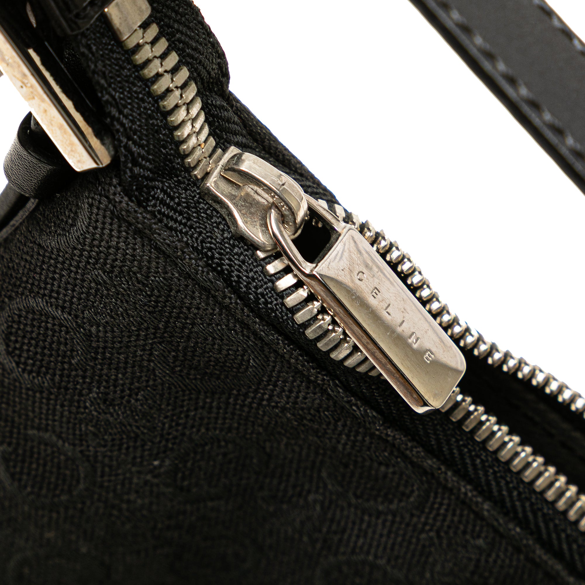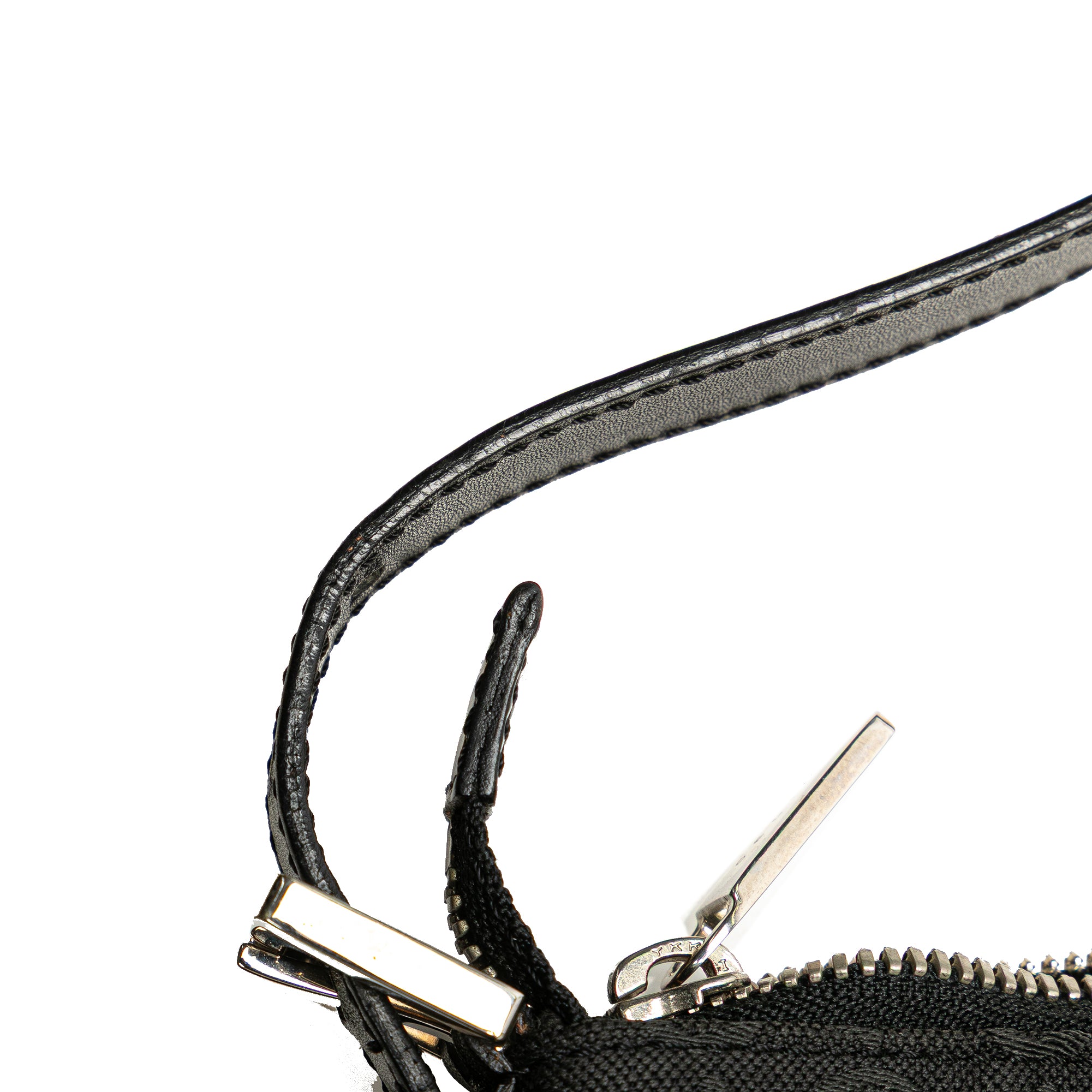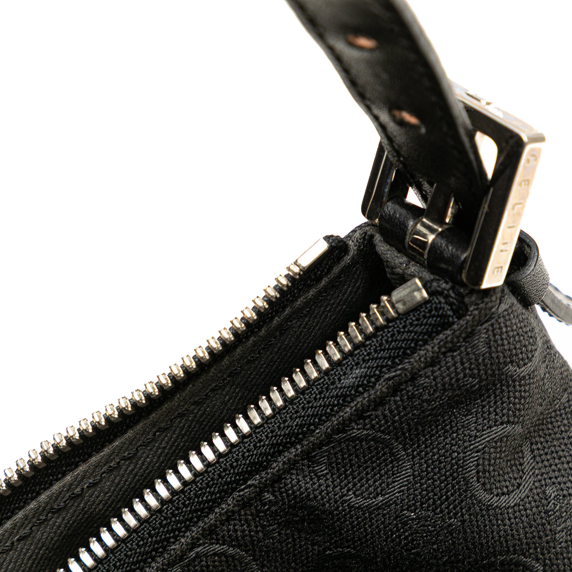 This shoulder bag features a canvas body, an adjustable flat leather strap, a top zip closure, and an interior slip pocket. Retail Price: 475.00
