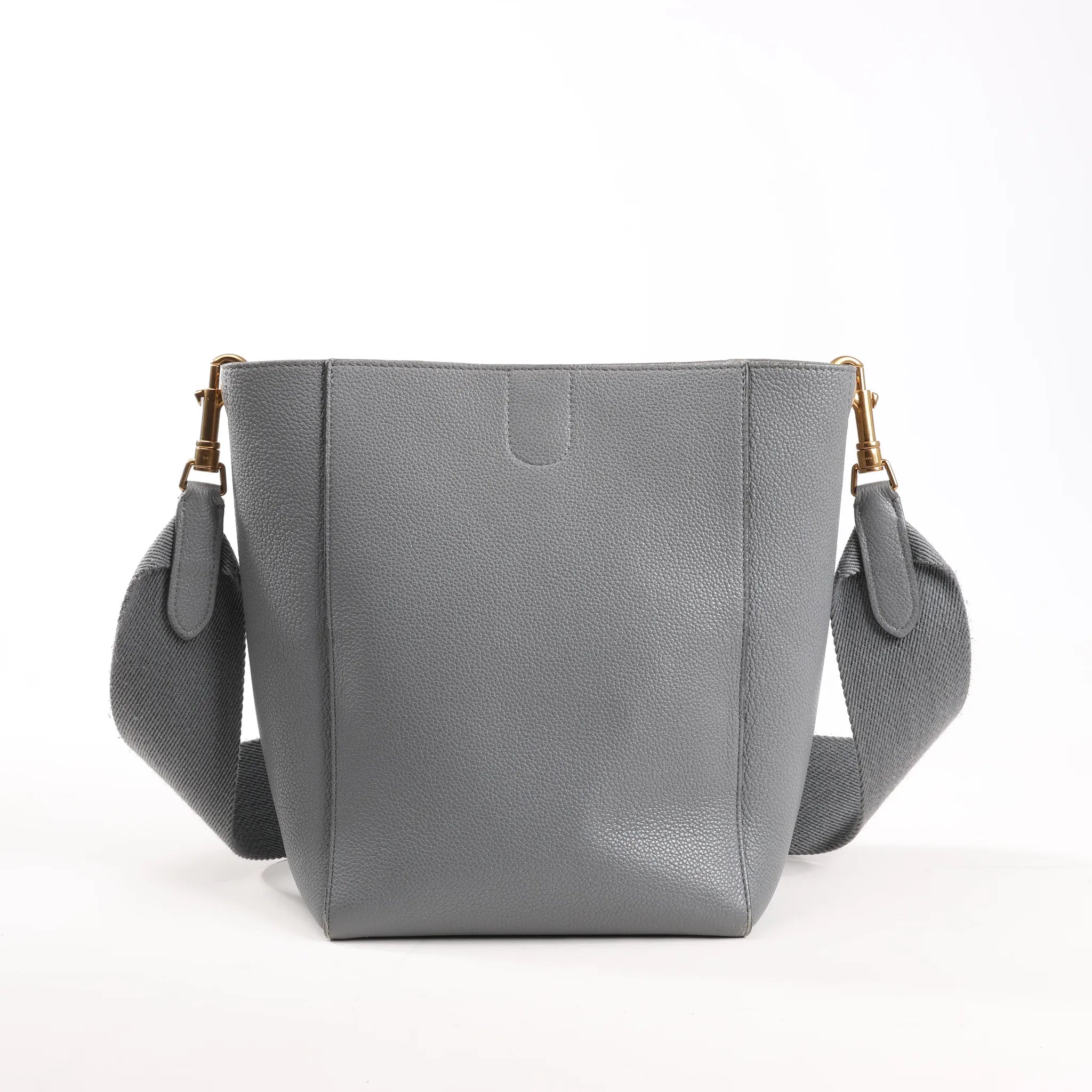 Brand: CELINEModel: Seau SangleSize: MiniWidth: 17.5 cmHeight: 25 cmExterior Condition: ExcellentInterior Condition: ExcellentCondition Details: The exterior leather is in excellent condition with rubbings at the bottom edges. The hardware is bright and shiny with some scratches. The shoulder straps remain clean and in good condition. The interior in good condition with usage rubbings.Colour: Gray Interior Colour: GrayHardware Colour: GoldMaterial: LeatherComes With: Shoulder strap