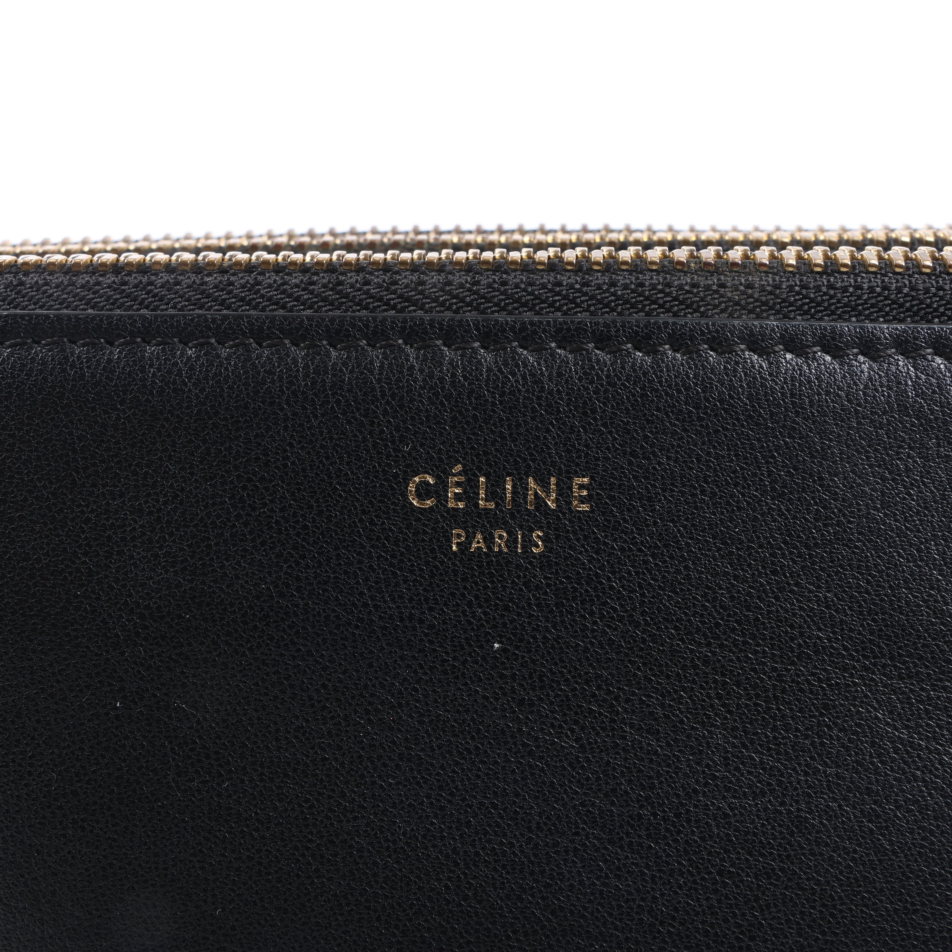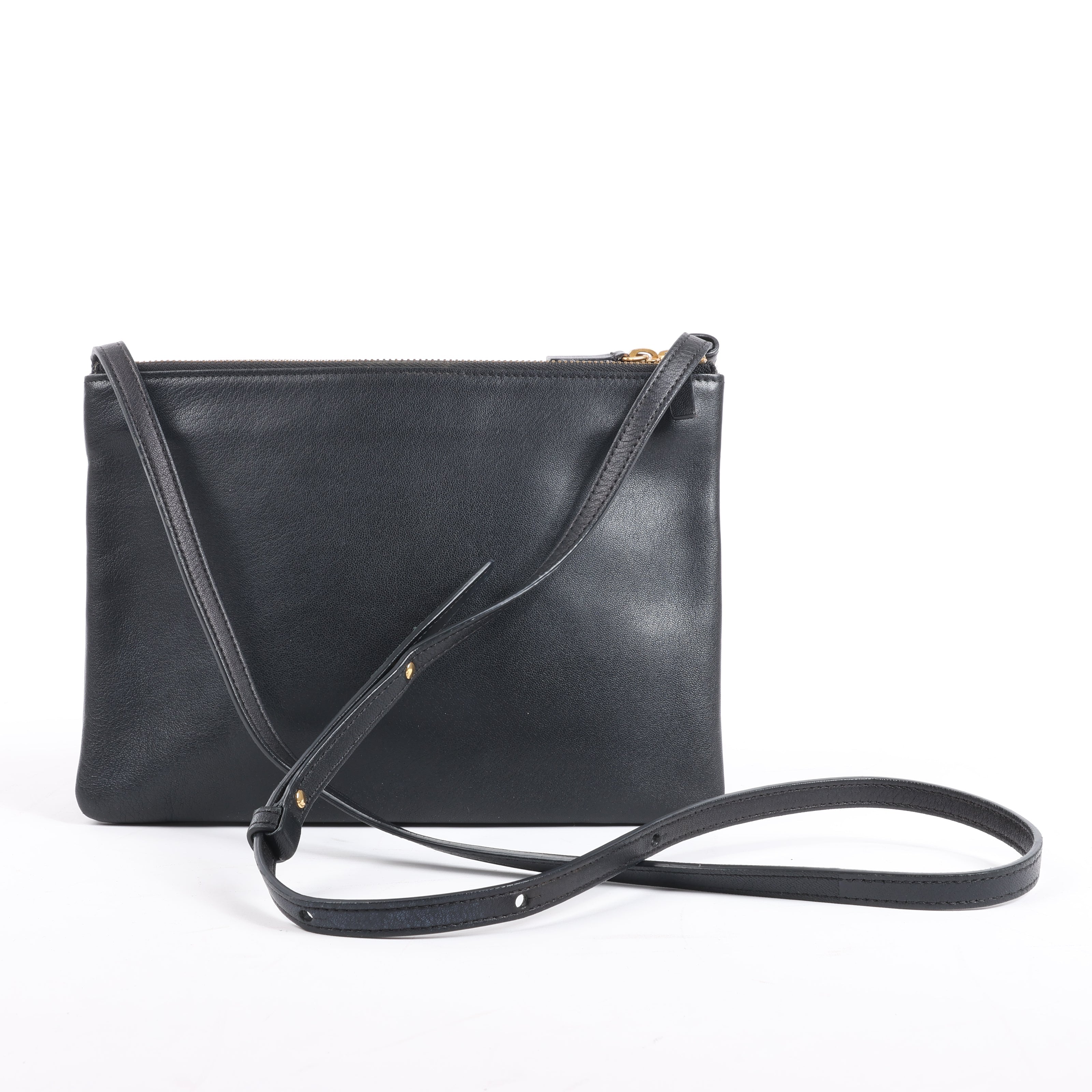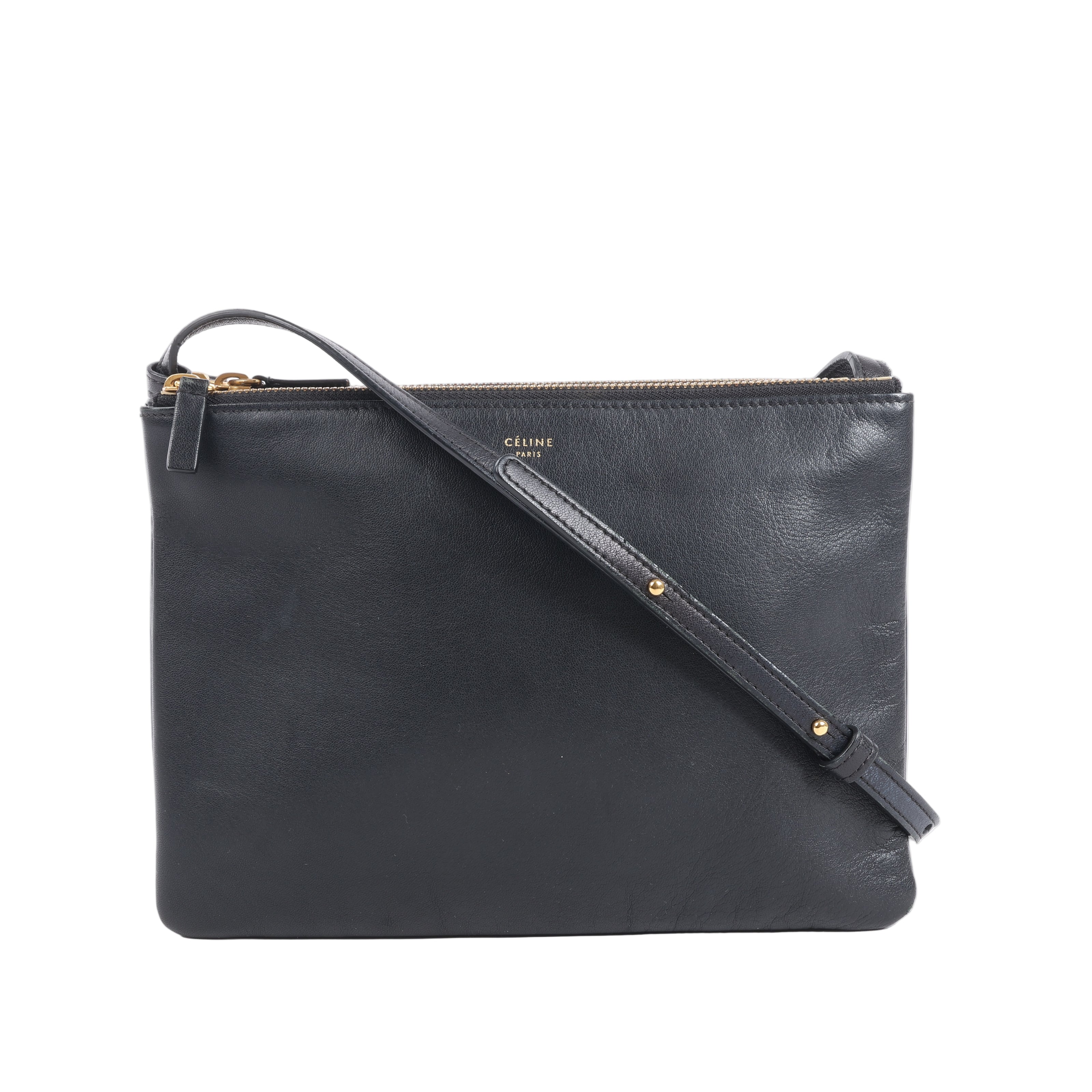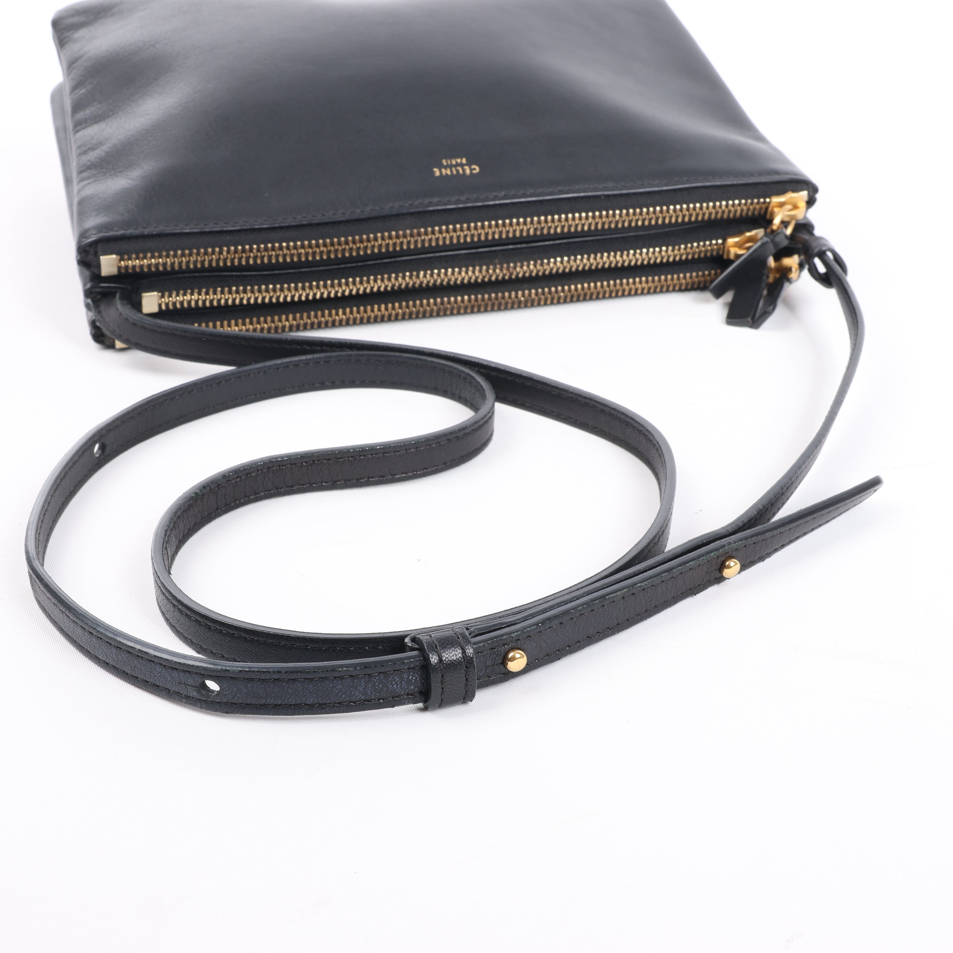 Elevate your everyday style with the Celine Trio Large Crossbody Bag in Black. Crafted from smooth calfskin leather, this minimalist classic features three zipped compartments and gold-tone hardware—perfect for organized, hands-free elegance.