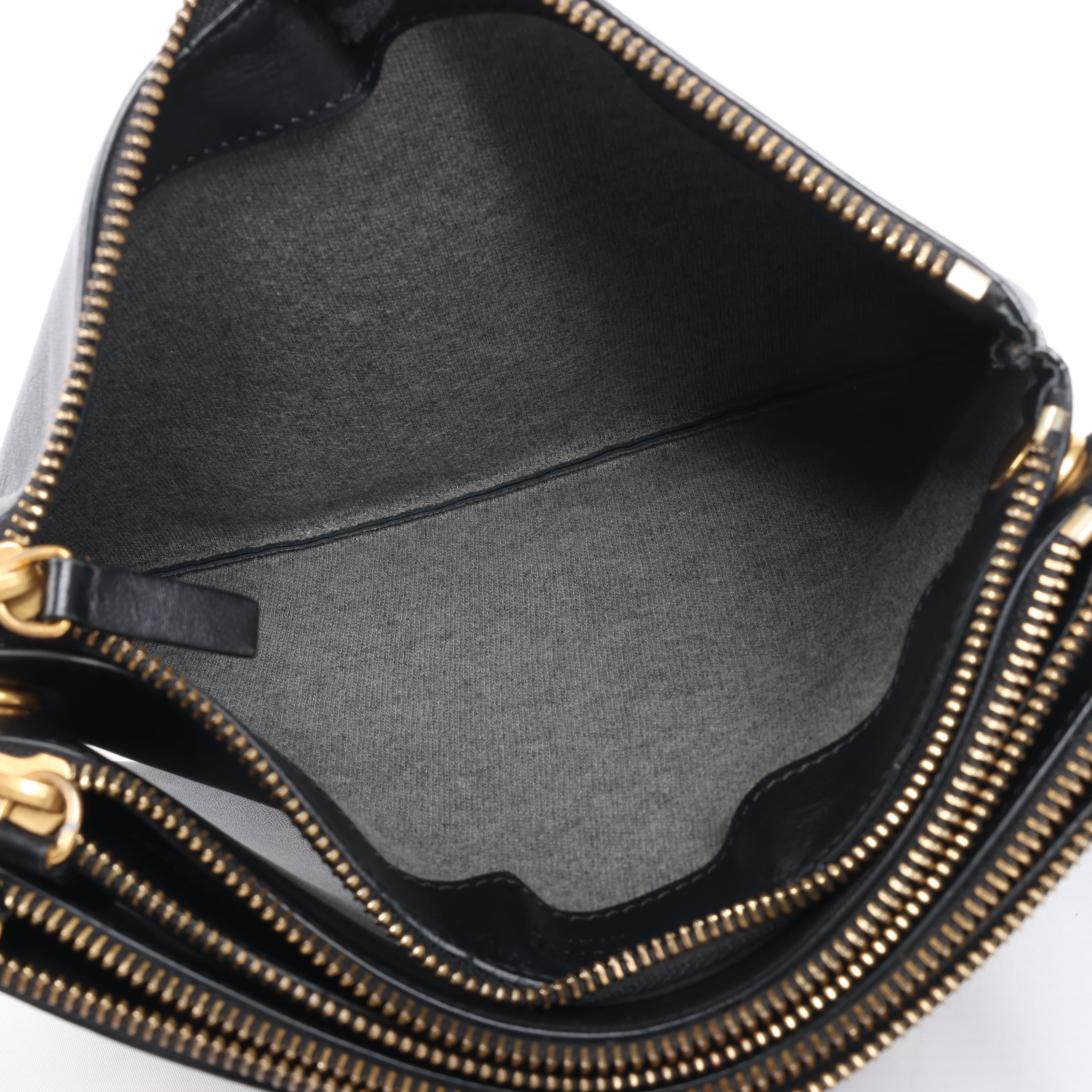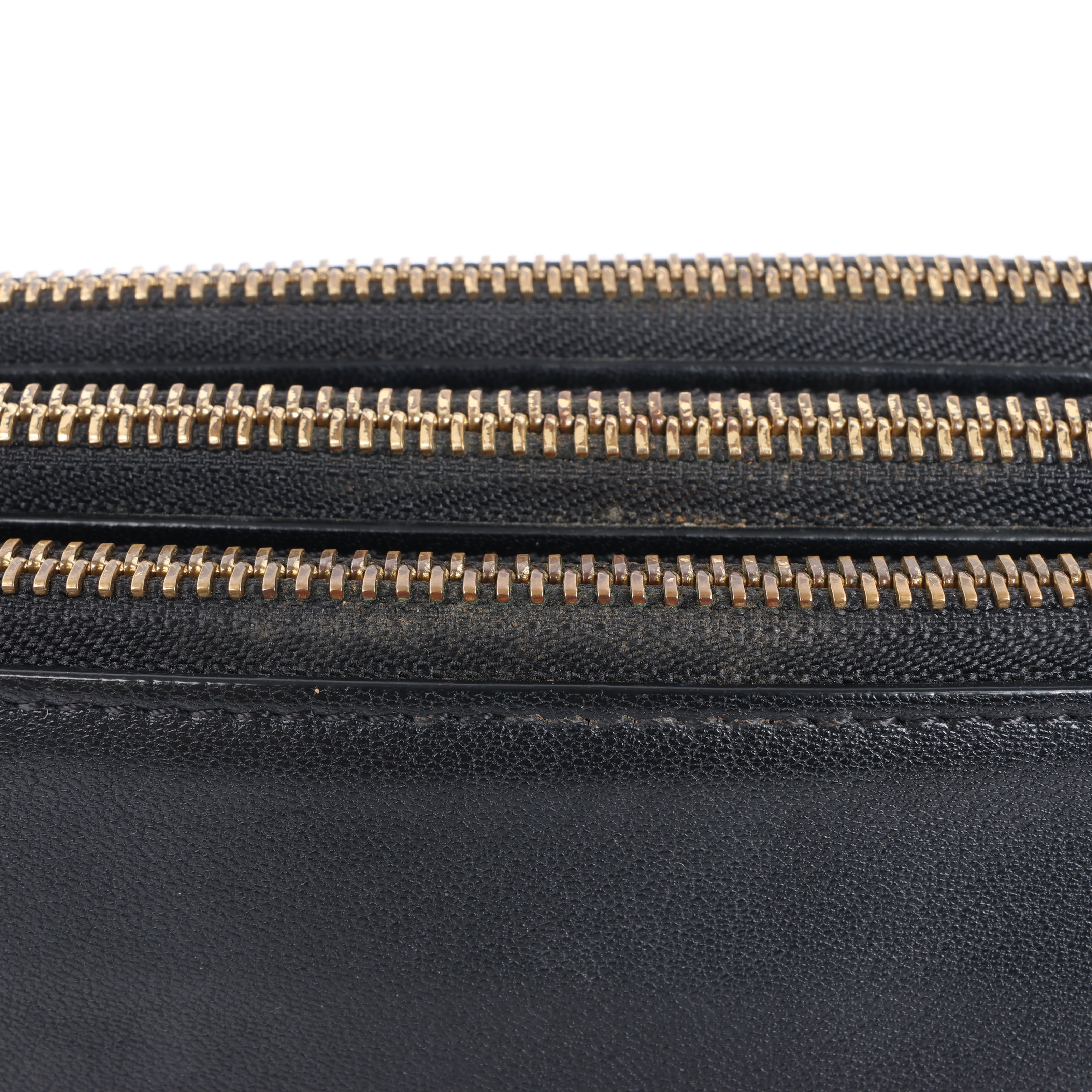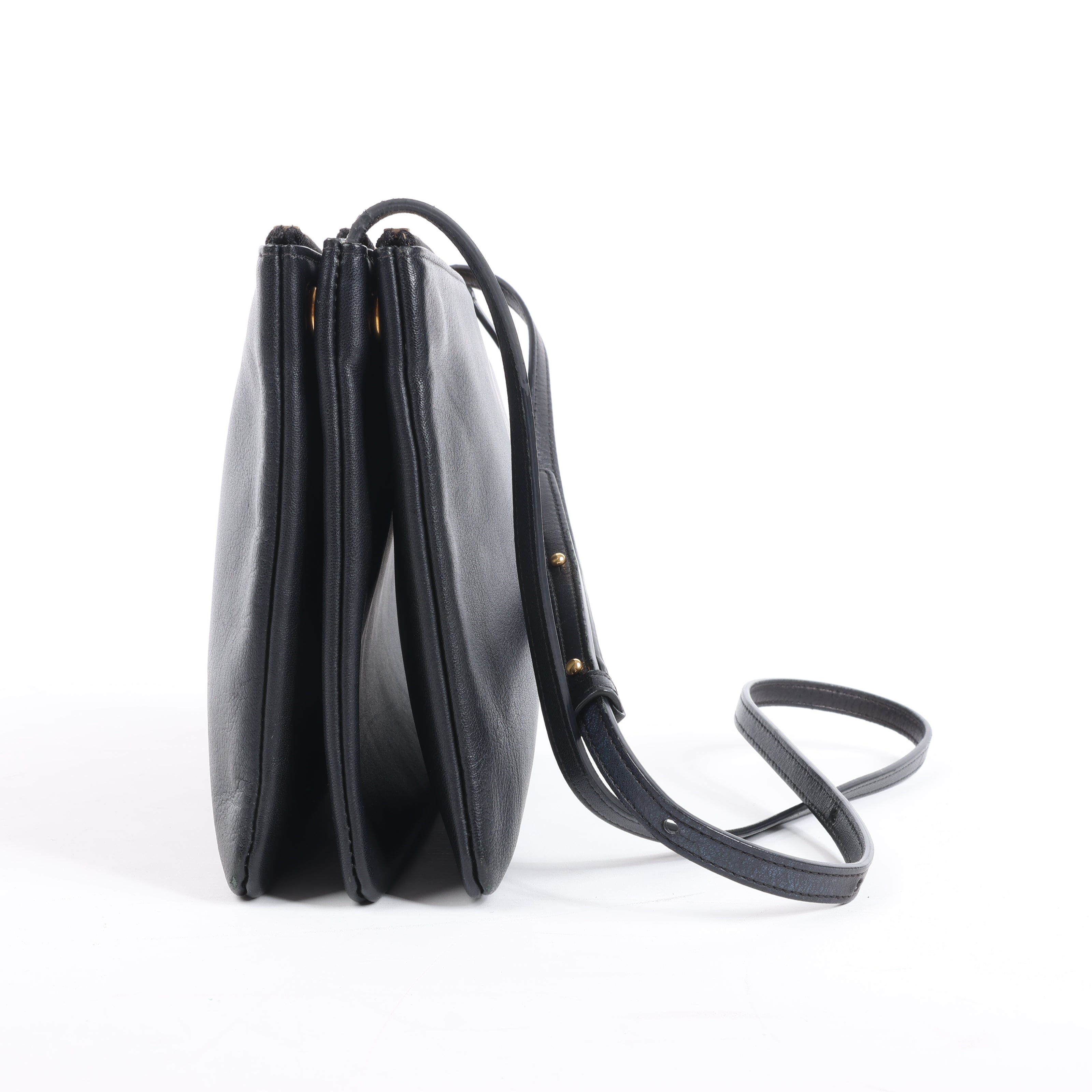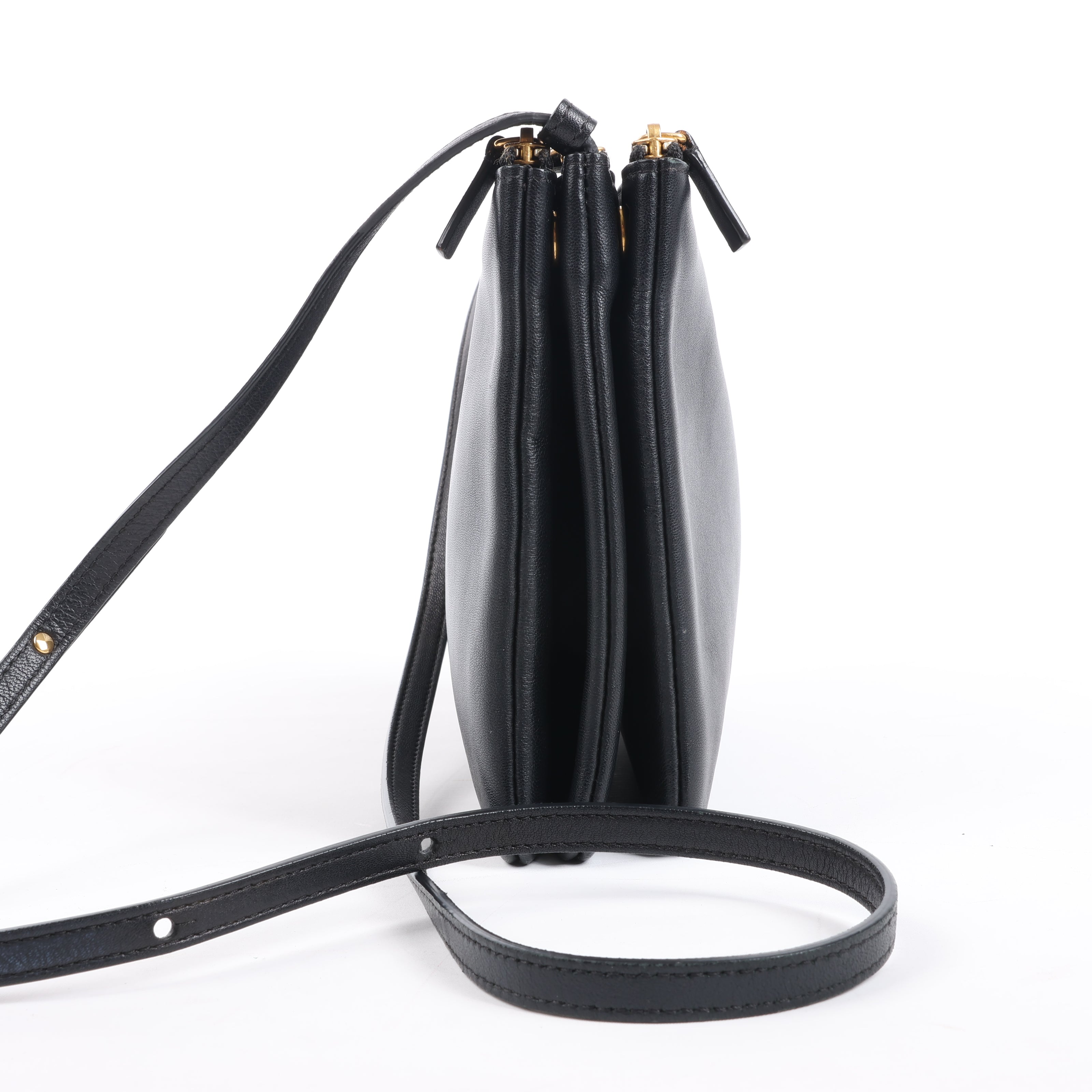 Elevate your everyday style with the Celine Trio Large Crossbody Bag in Black. Crafted from smooth calfskin leather, this minimalist classic features three zipped compartments and gold-tone hardware—perfect for organized, hands-free elegance.