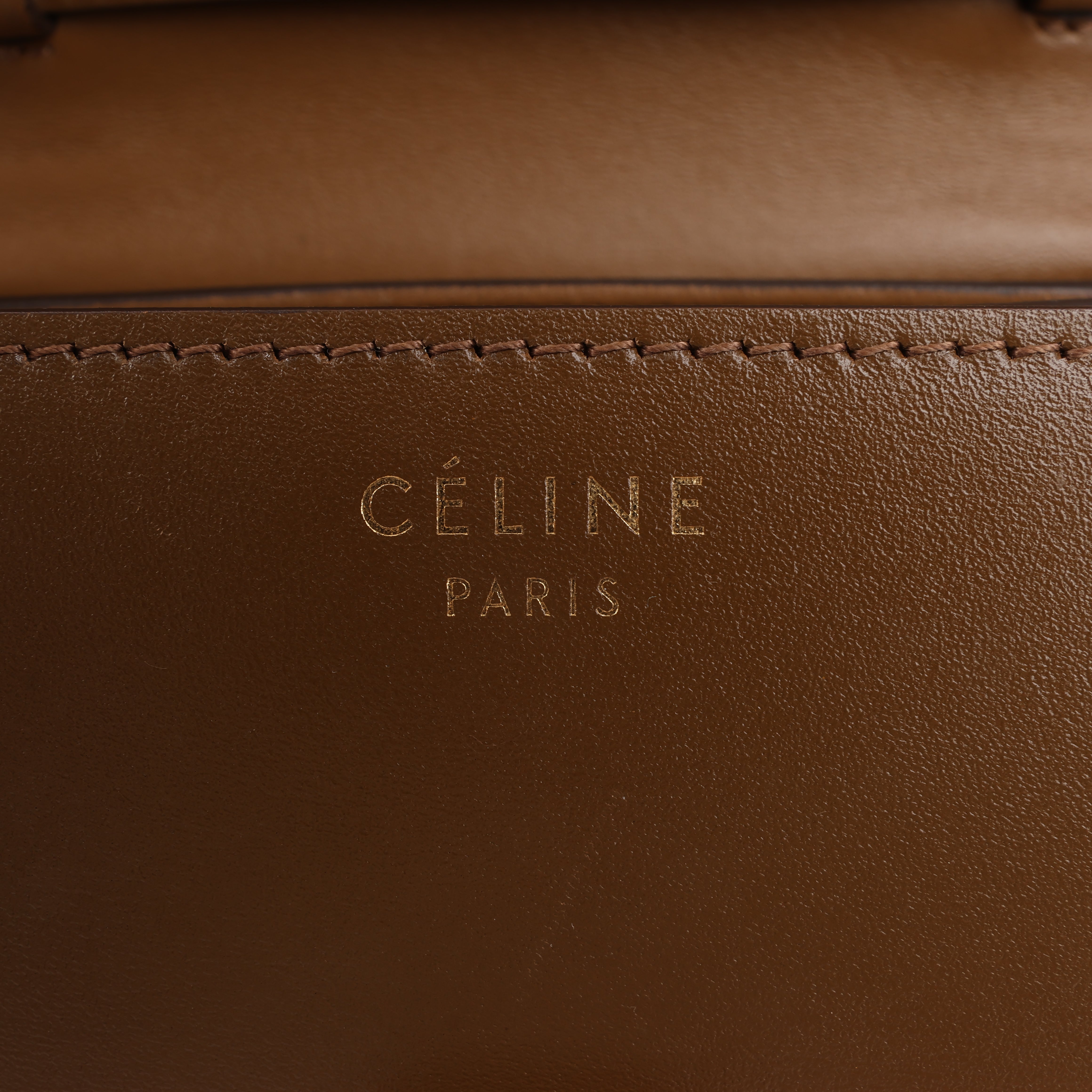 Brand: CELINEModel: Classic BoxSize: SmallWidth: 16 cmHeight: 13 cm Exterior Condition: ExcellentInterior Condition: ExcellentCondition Details: The exterior leather is clean and beautiful in very good condition, but has scratches. The strap is in excellent condition with creases. The hardware has surface scratches but remains bright. The interior leather is clean and in very good condition except some scratches.Colour: BrownInterior Colour: BrownHardware Colour: GoldMaterial: LeatherComes With: Entrupy authentication certificate