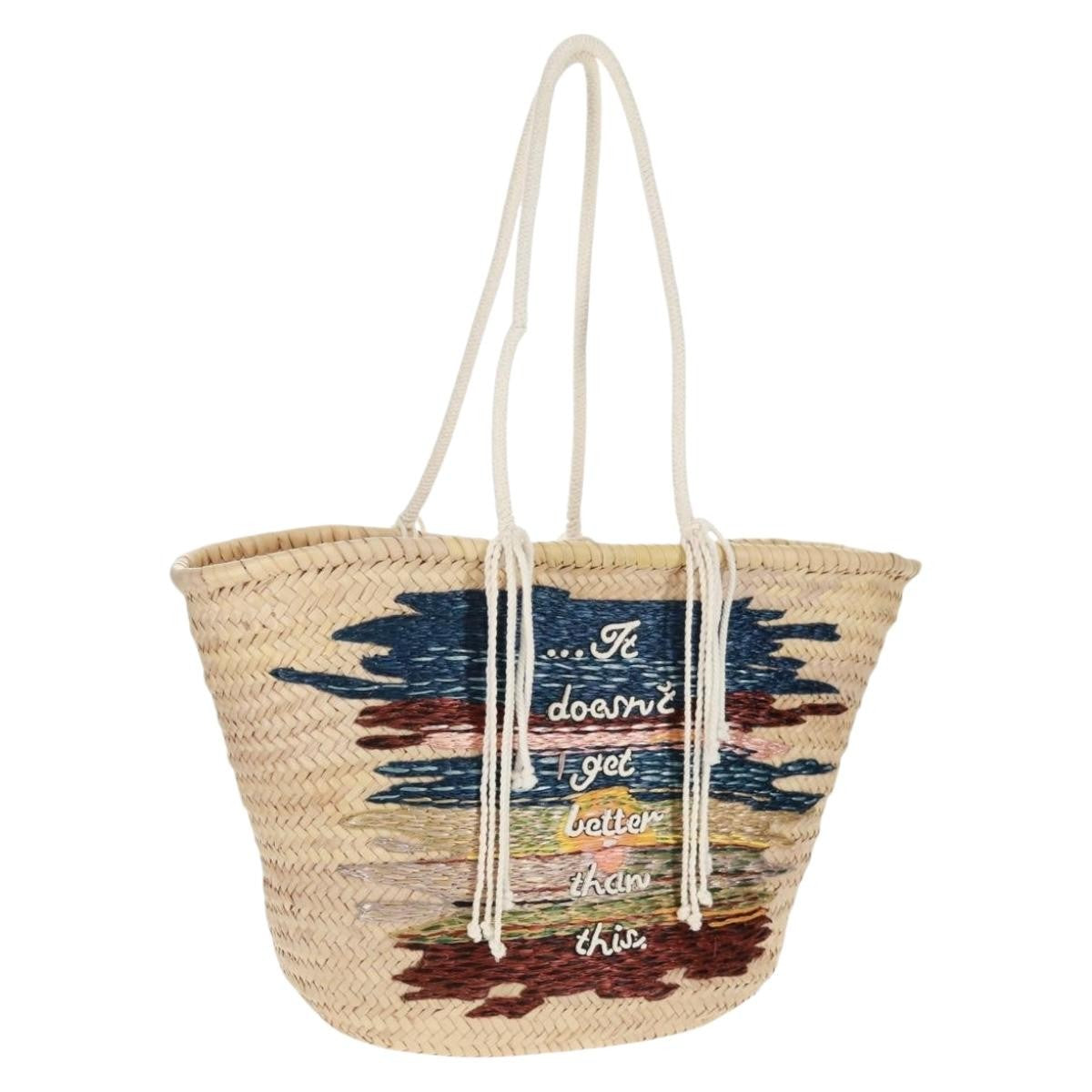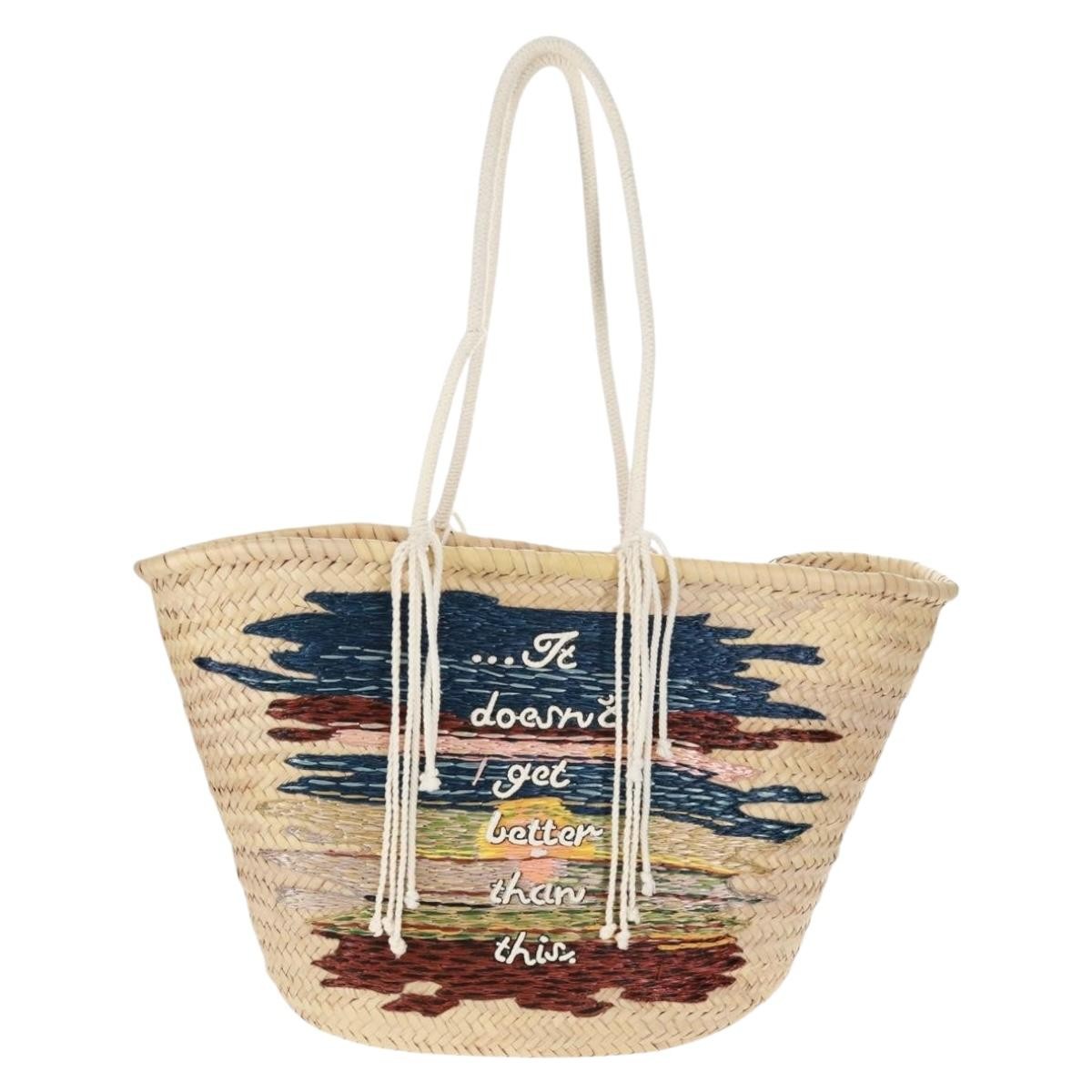 Celine Classic Panier Basket Tote Embroidered Raffia