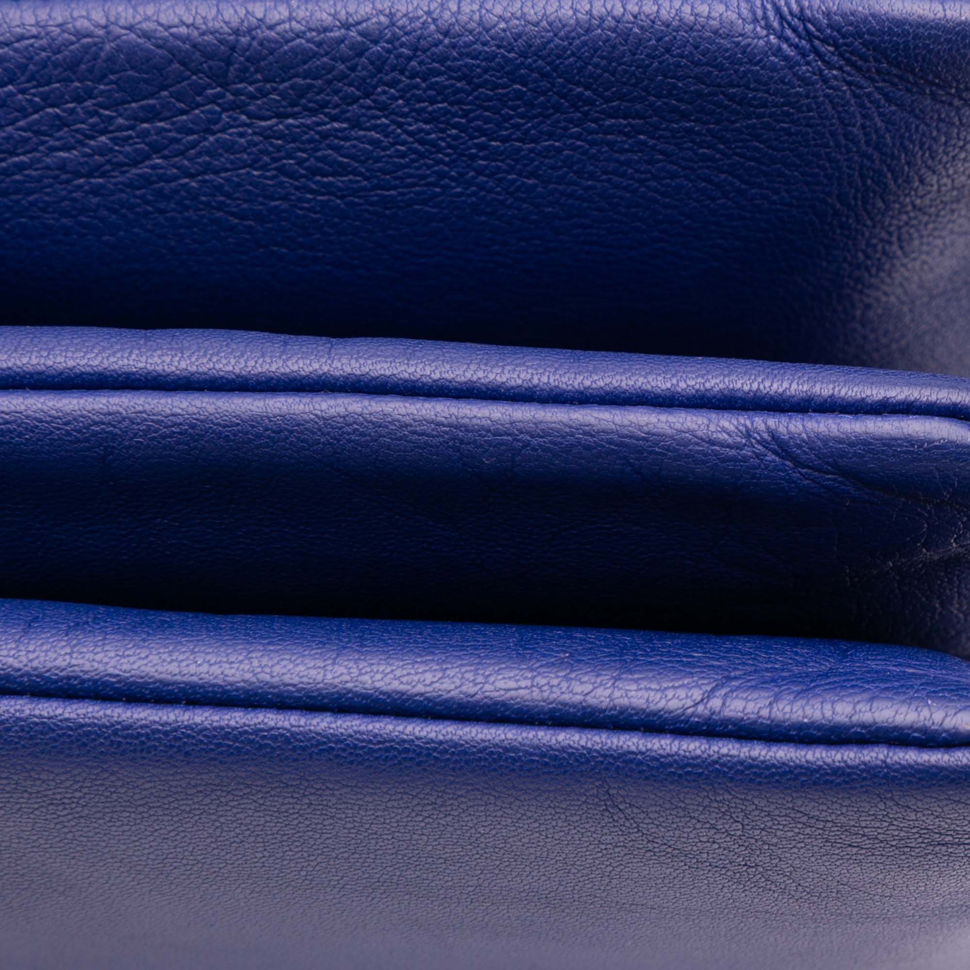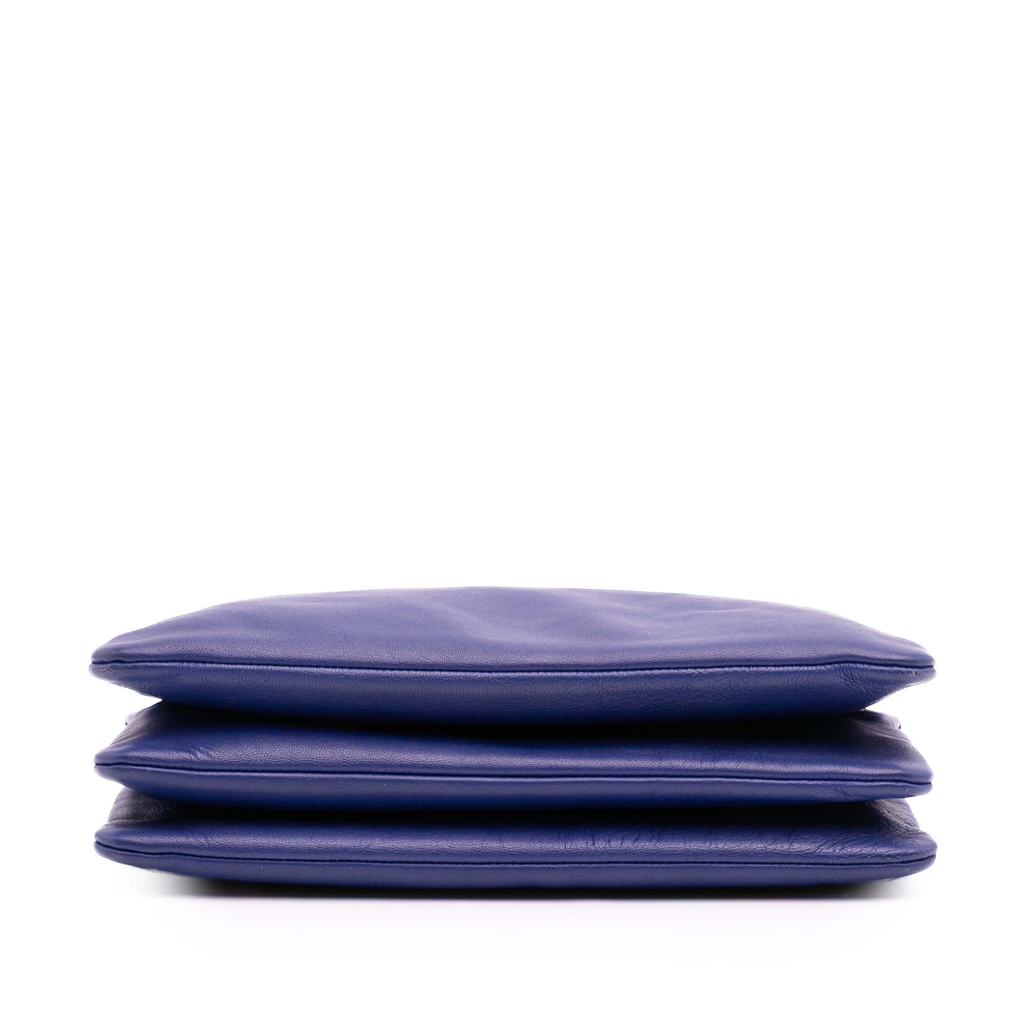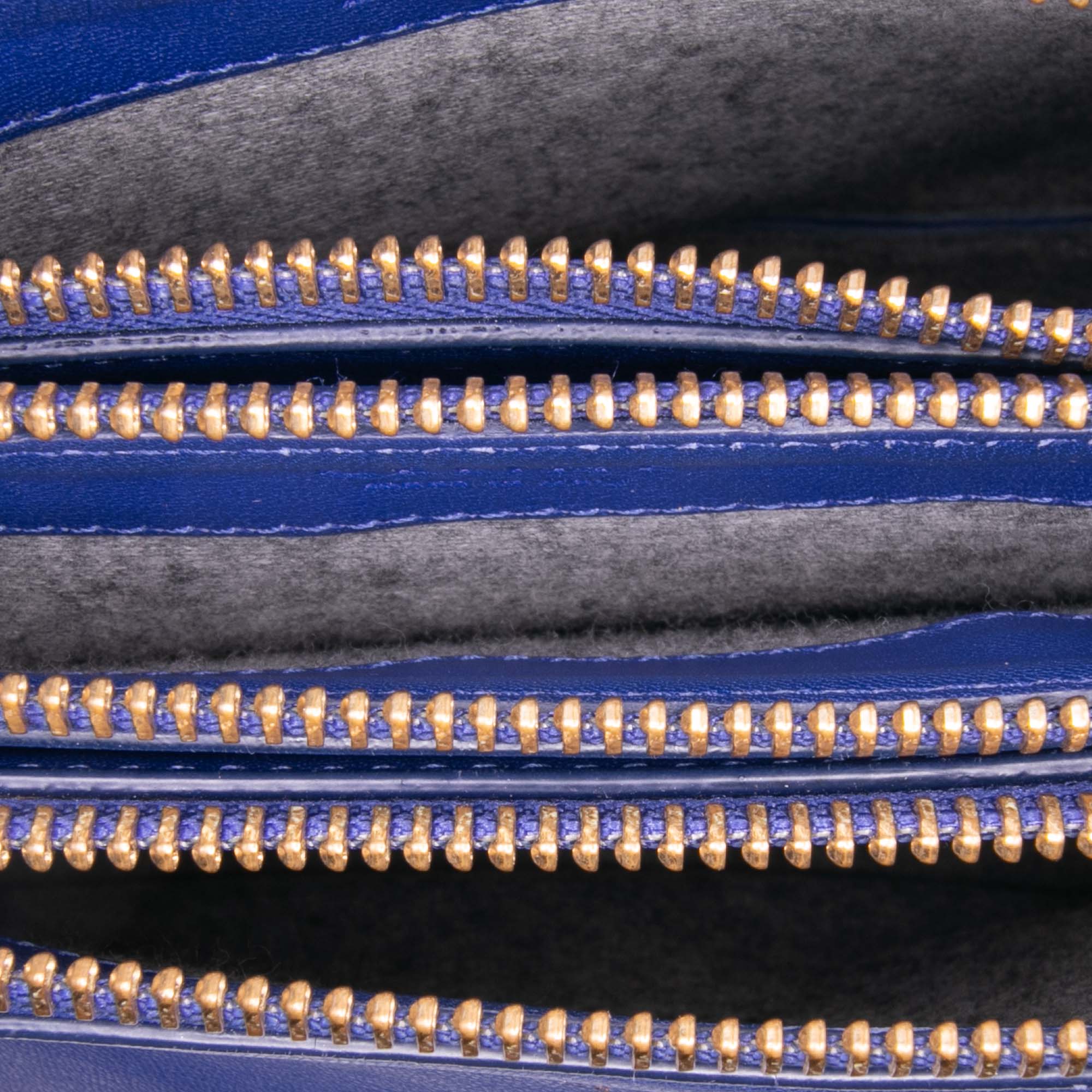The Trio crossbody bag features a lambskin leather body, a flat leather strap, and three compartments with top zip closures. Retail Price: 1245.00