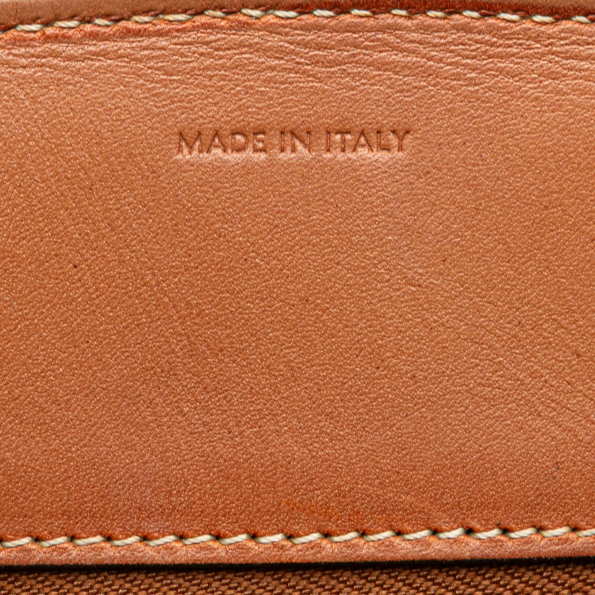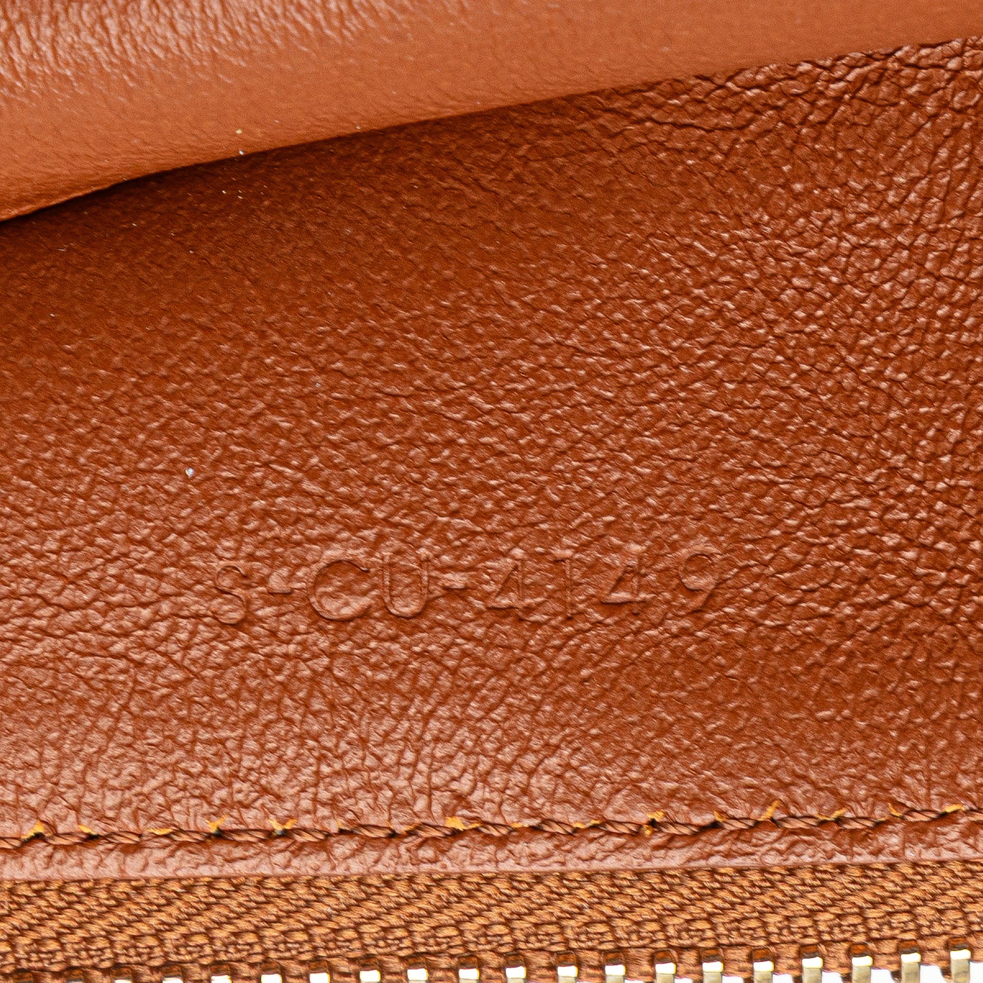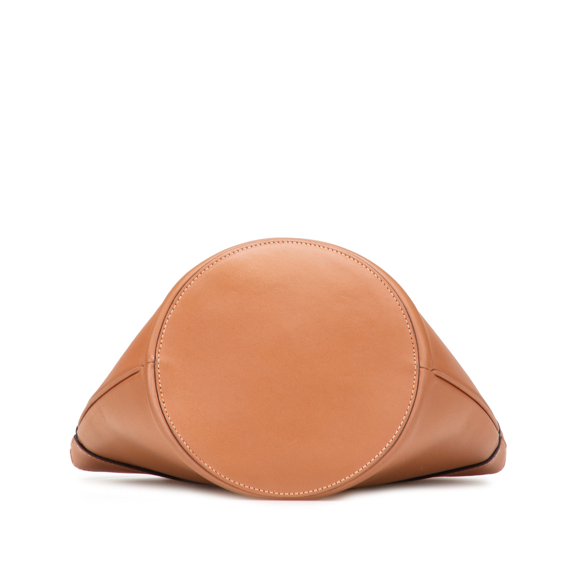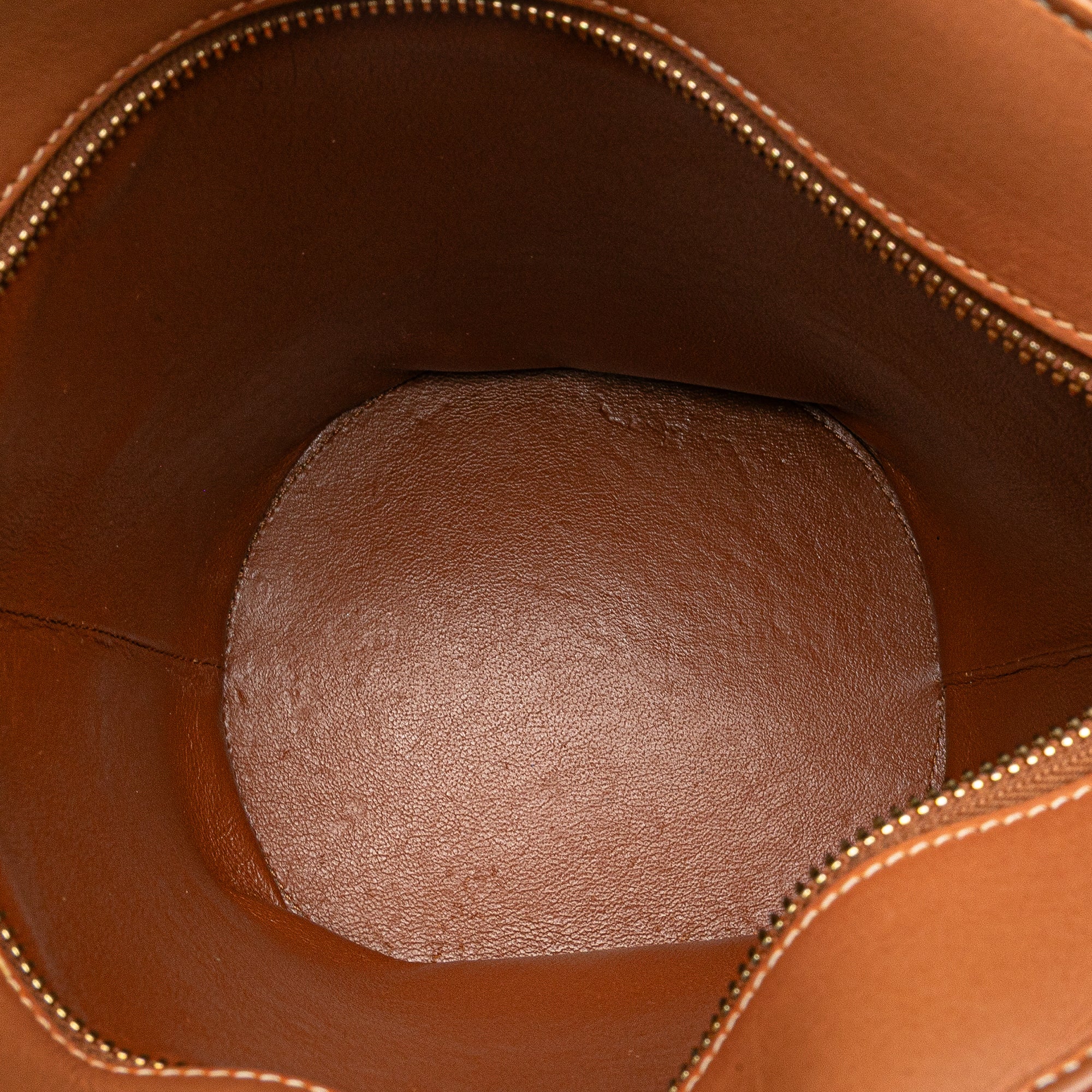 The Crecy Bucket Bag features a leather body, an adjustable flat leather strap, and a top zip closure. Retail Price: 1850.00