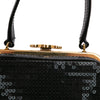 This clutch bag features a leather body with sequin details, a flat leather handle, and a top clasp closure, Retail Price: 2800.00