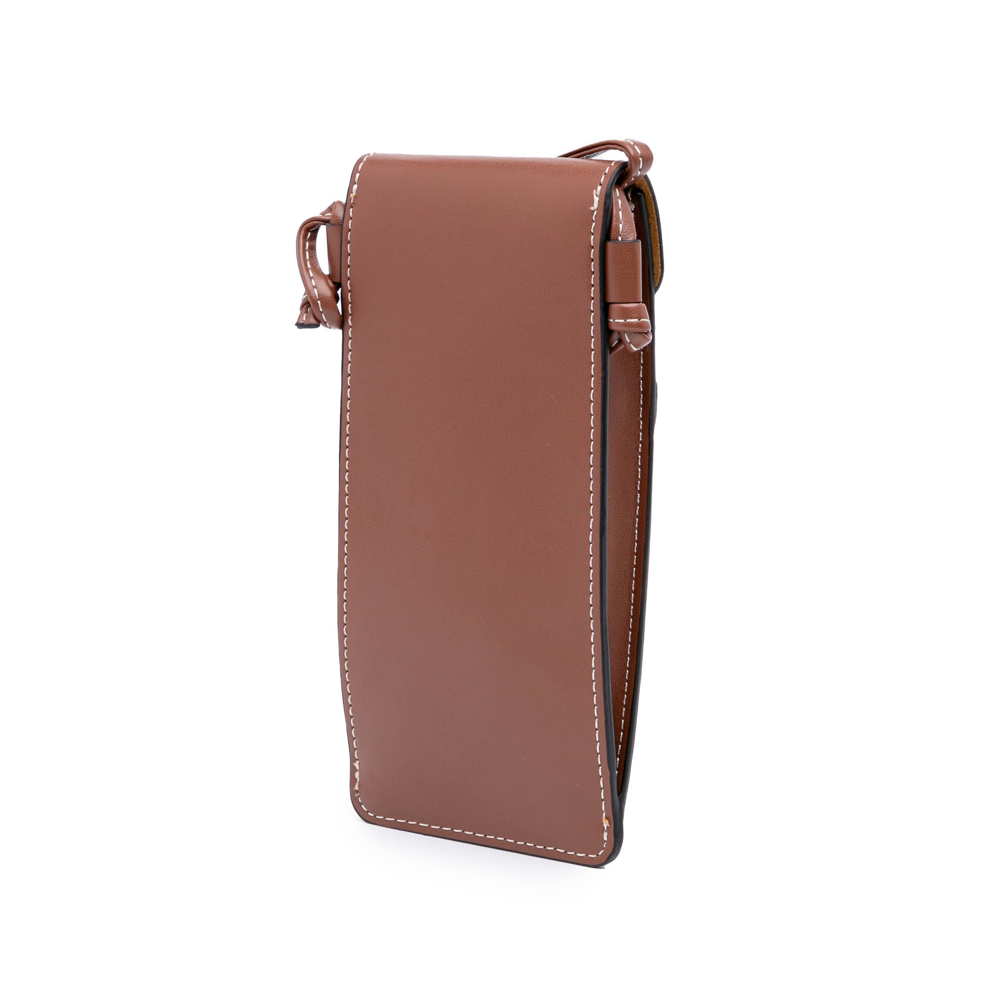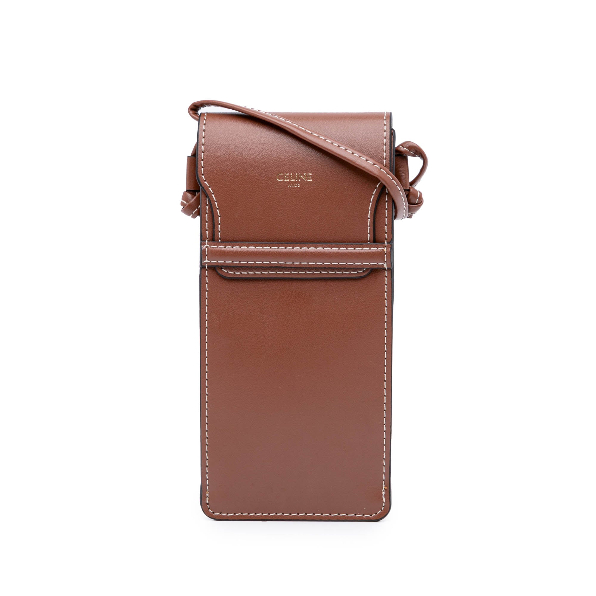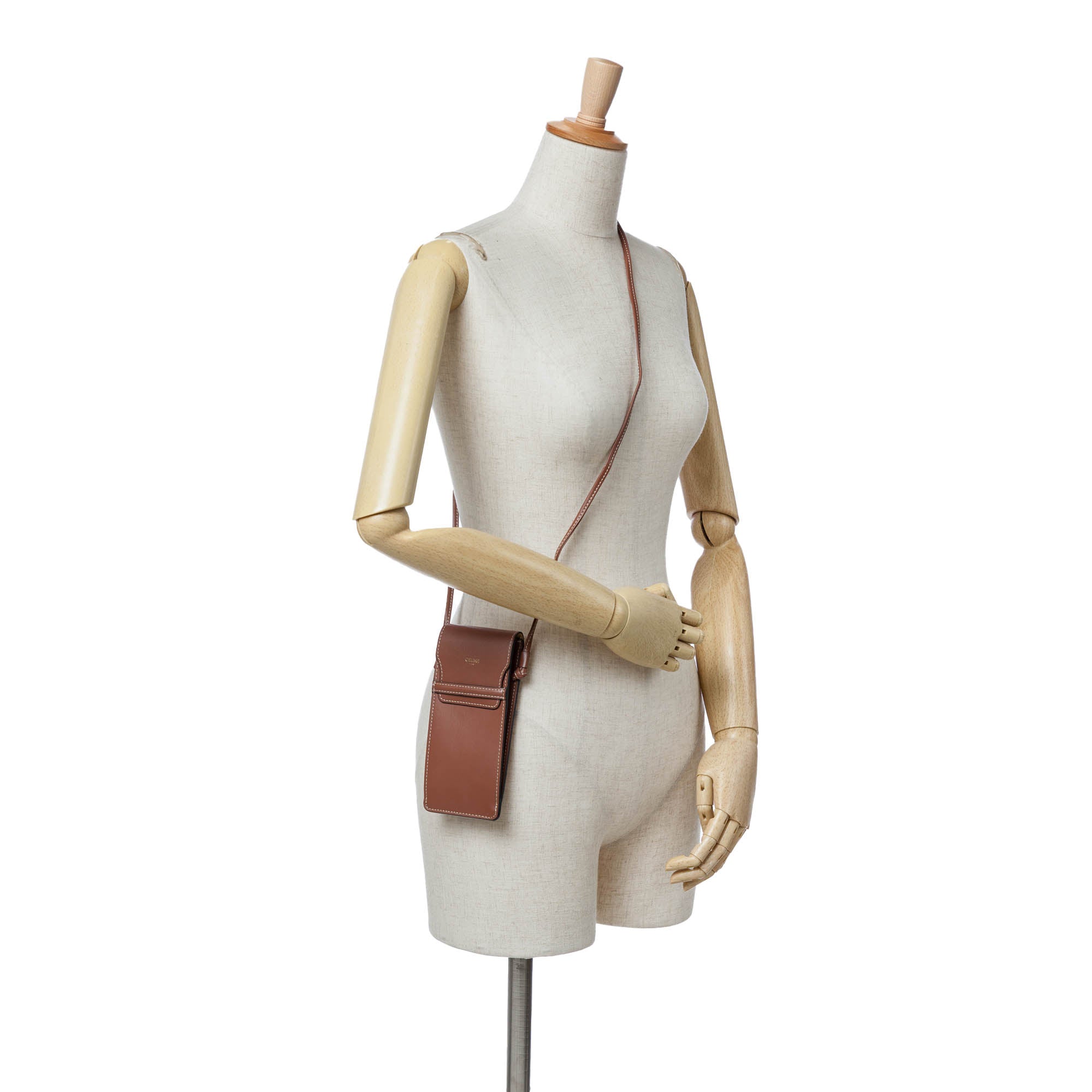 This crossbody bag features a leather body, flat leather strap, and a front slip through strap closure. Retail Price: 435.00