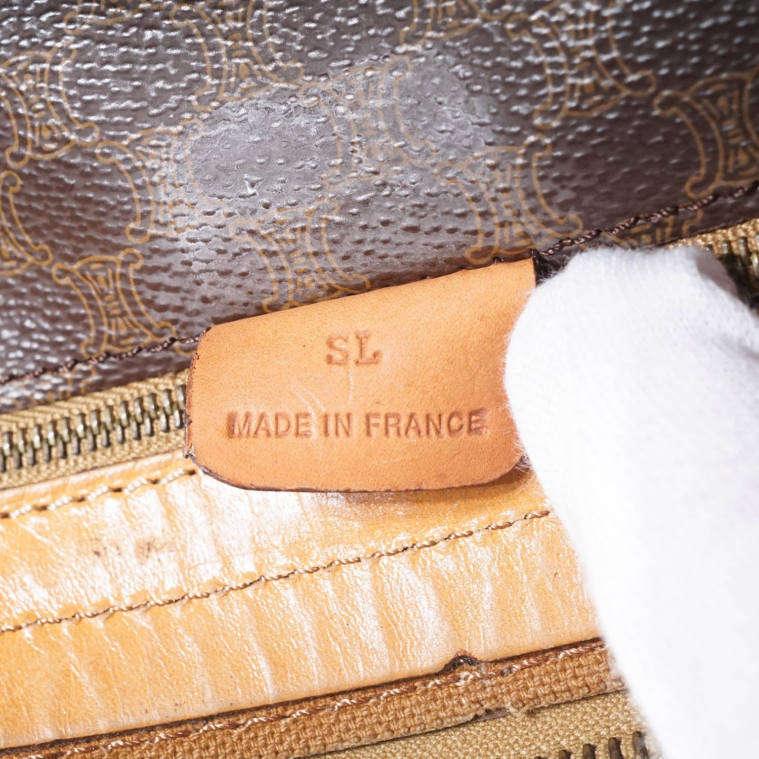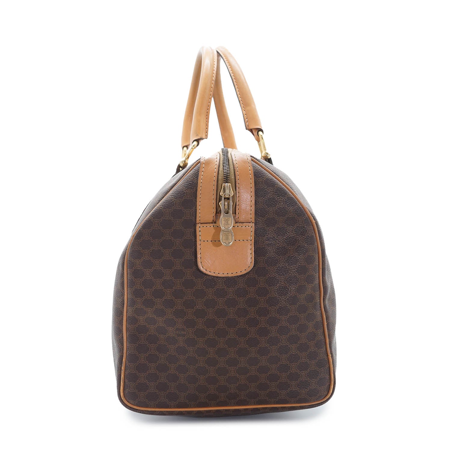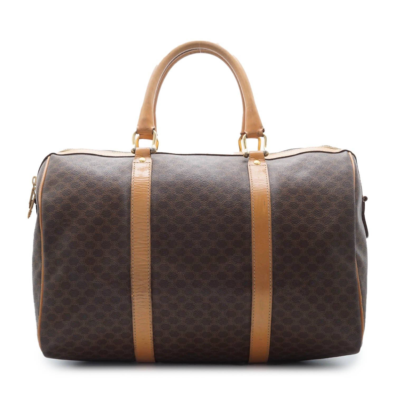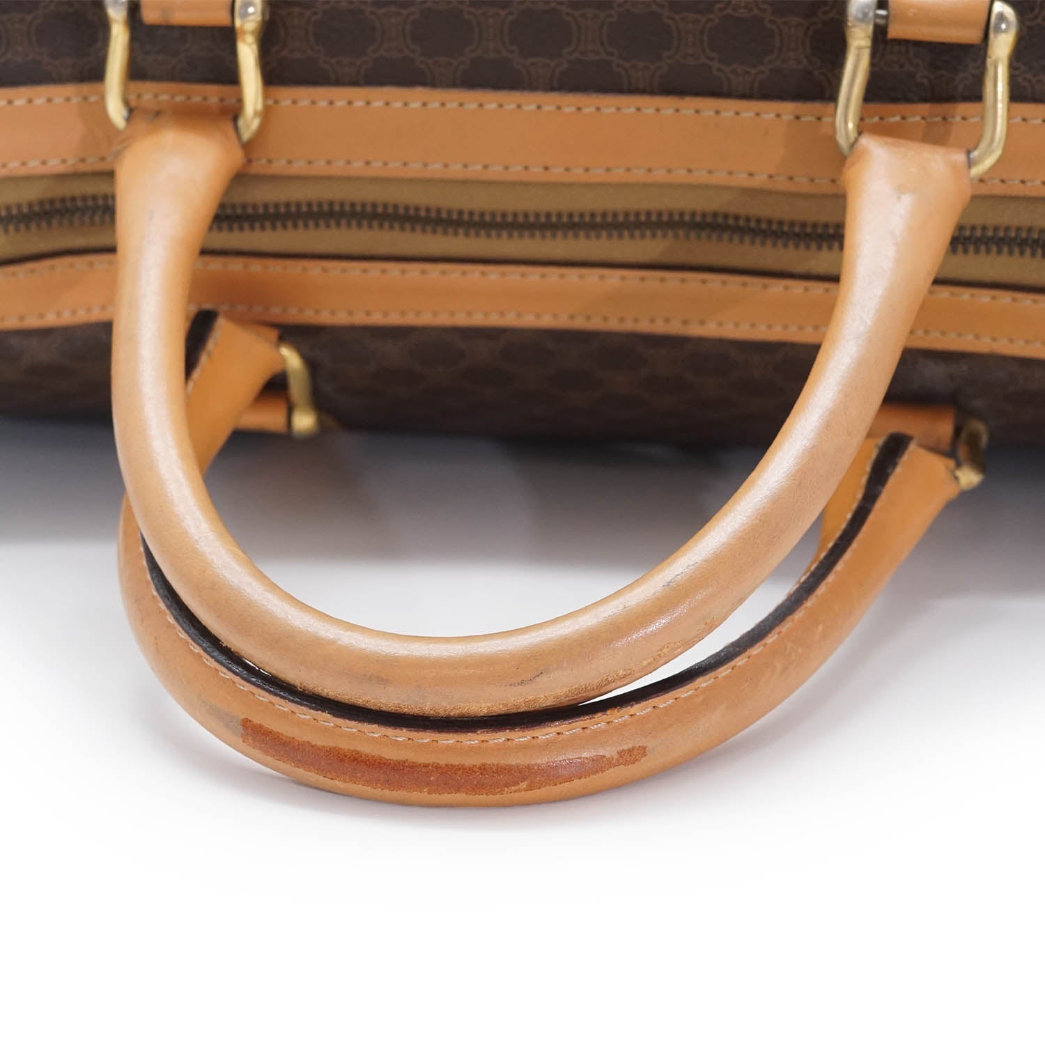 Macadam Boston Bag Brown Canvas, LeatherDepth: 21cmHeight: 25cmWidth: 40cmHand Drop: 18cmStain: Some black stains/discoloration marks on the leather parts, minor pen marks on the inside pocketDiscoloration: Hardware tarnish, visible leather discoloration on the leather parts (top handles, near the zipper, piping)Scratch: Some corner rub, some scratches on the leather partsPeeling: Some creasing and minor cracking on the side leather tabsSerial code: SL
